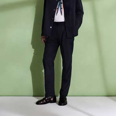 ウールブレンドストレッチテーパードスラックス