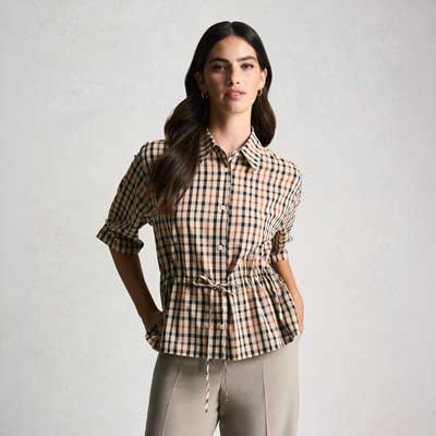 コットンリネン・リゾートチェックシャツ