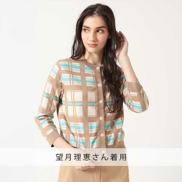 18G シルケットコットン チェックジャカードカーディガン