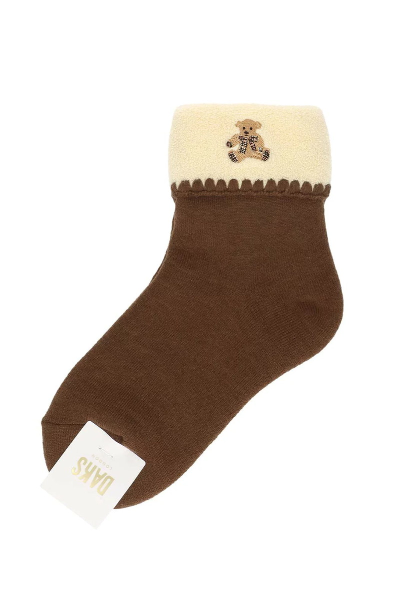 総パイル 折り返し ルームソックス(ベア刺繍・あったか素材)