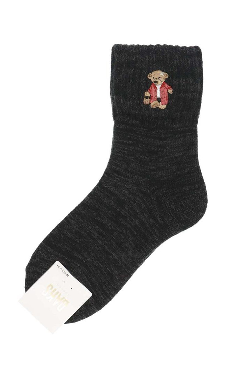 内起毛 総パイル ルームソックス(杢調ベア刺繍・履き口ゆったり)