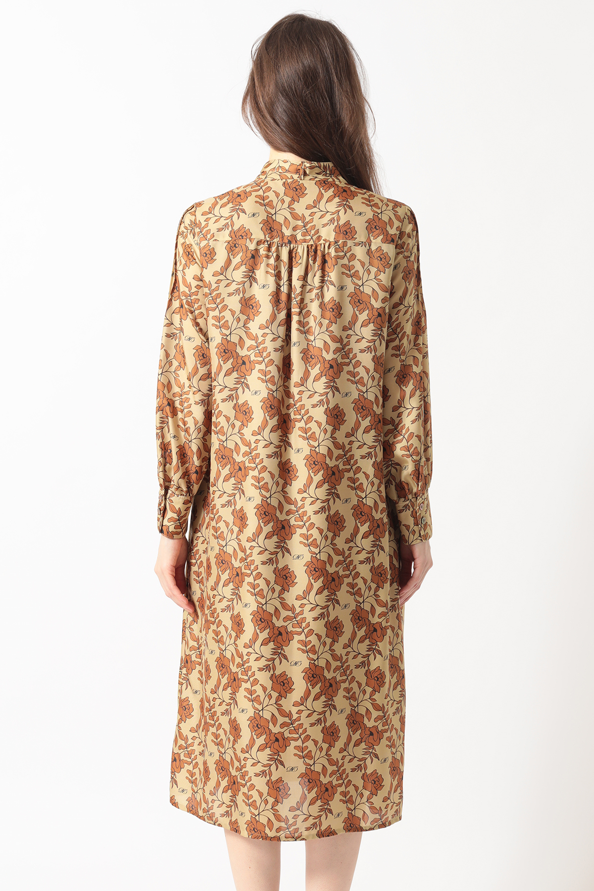 華やかな花柄プリントが目を引く、フェミニンなワンピースです。襟元には取り外し可能なリボンが付いており、襟後ろの共布ループに通して上品に、またはウエストに結んで可愛らしくと、2WAYの着こなしが楽しめます。一枚で華やかな印象を与え、特別な日のお出かけにもぴったりのDAKSらしいアイテムです。