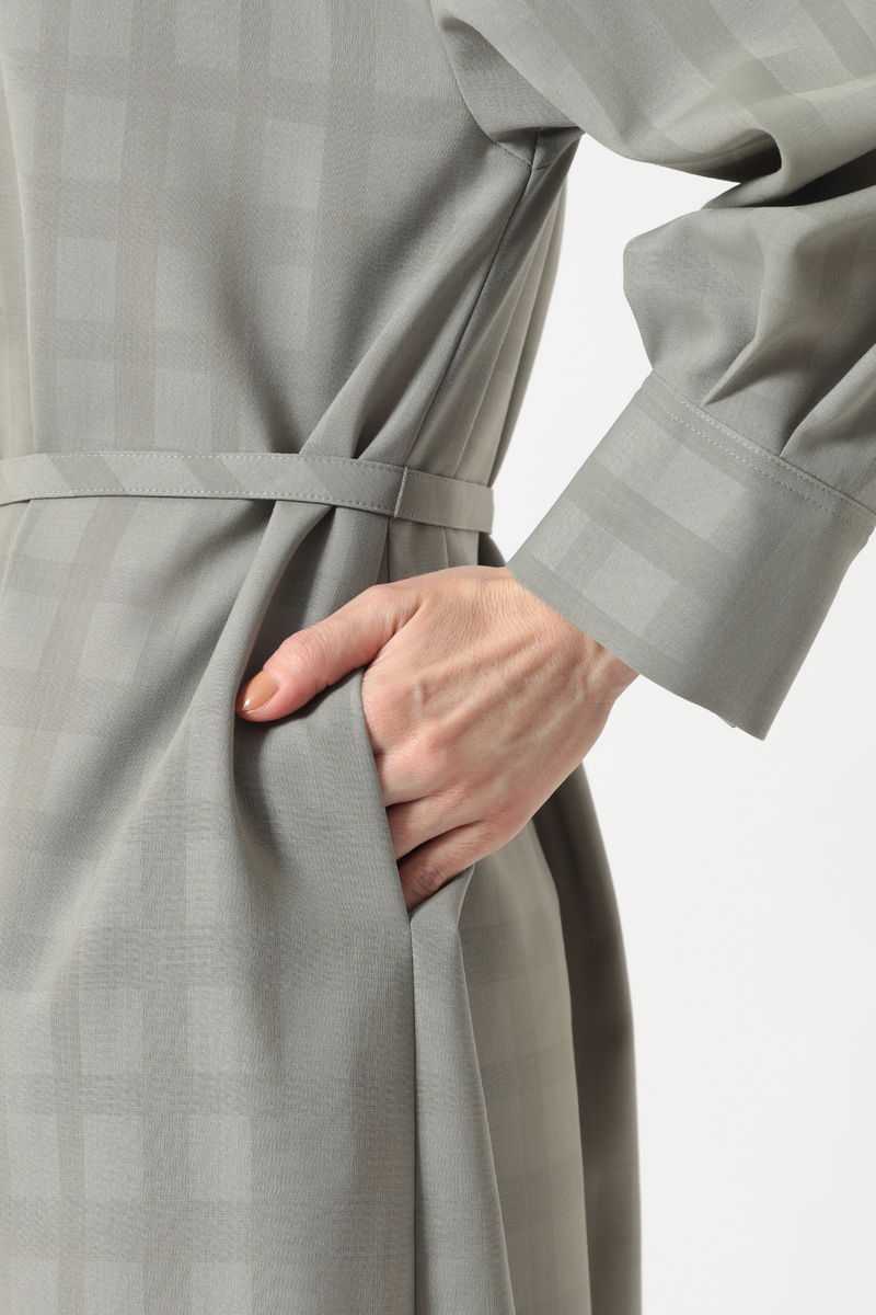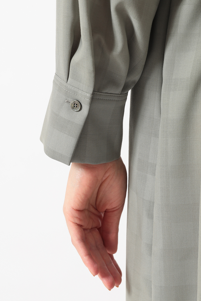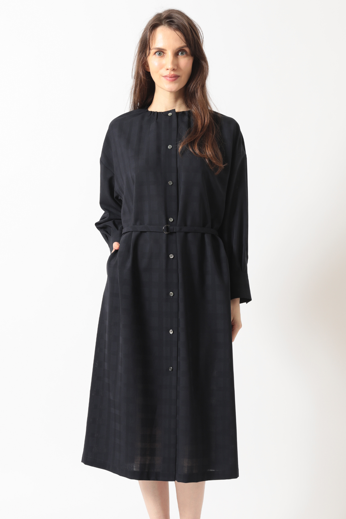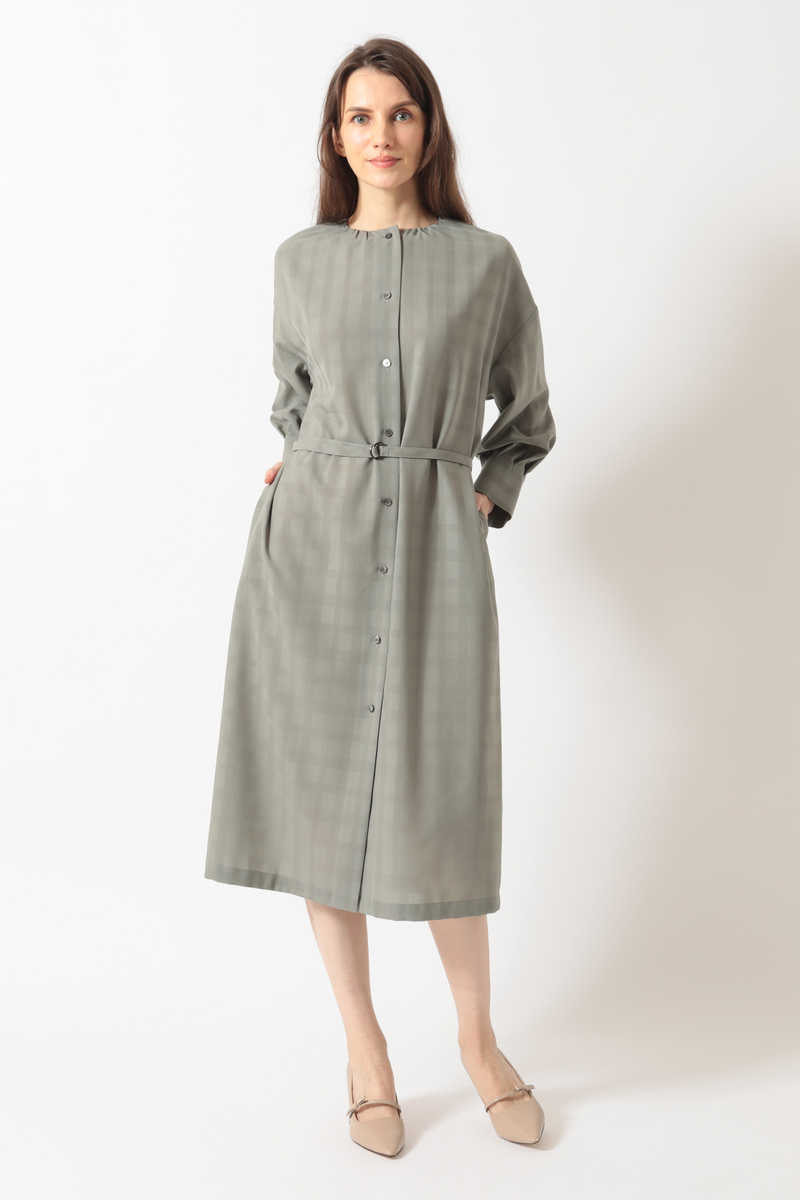 ウールとポリエステルのビッグシャドーチェックが特徴の、シックなワンピースです。襟元のタックギャザーが優雅な動きを演出し、ゆったりとしたシルエットはまるで軽いコートのように羽織ることもできます。一枚でワンピースとして、またはライトアウターとして、様々な着こなしが楽しめる2WAY仕様。上品さとリラックス感を兼ね備え、幅広いシーンで活躍するDAKSの新作です。