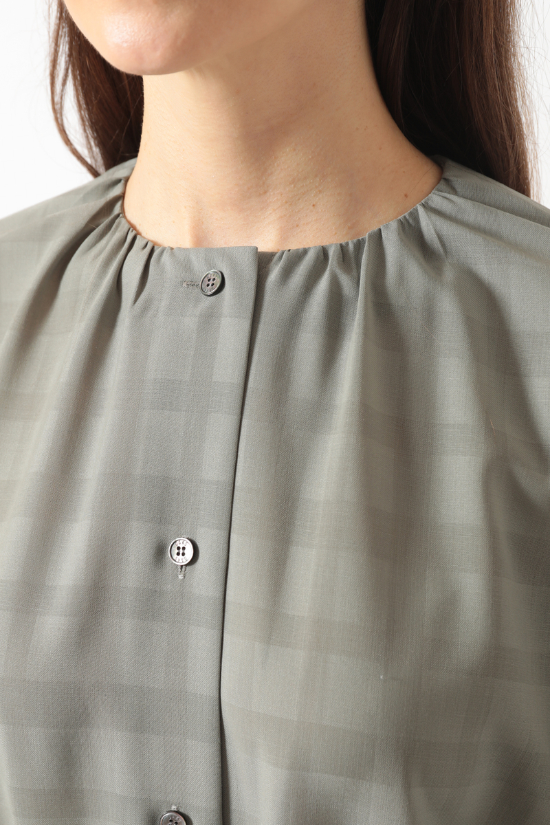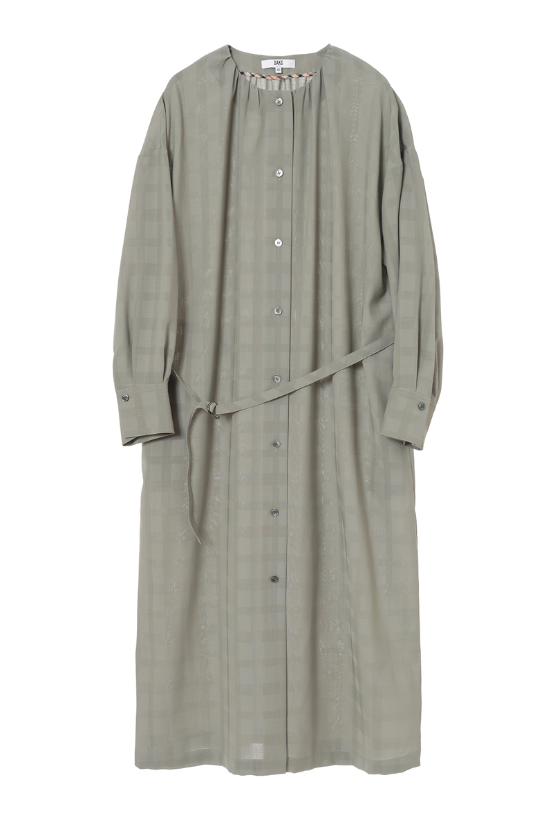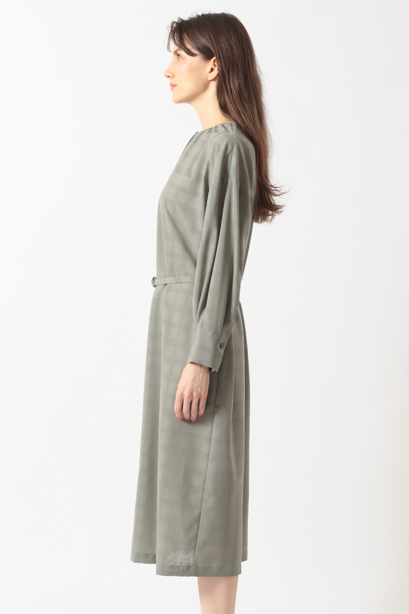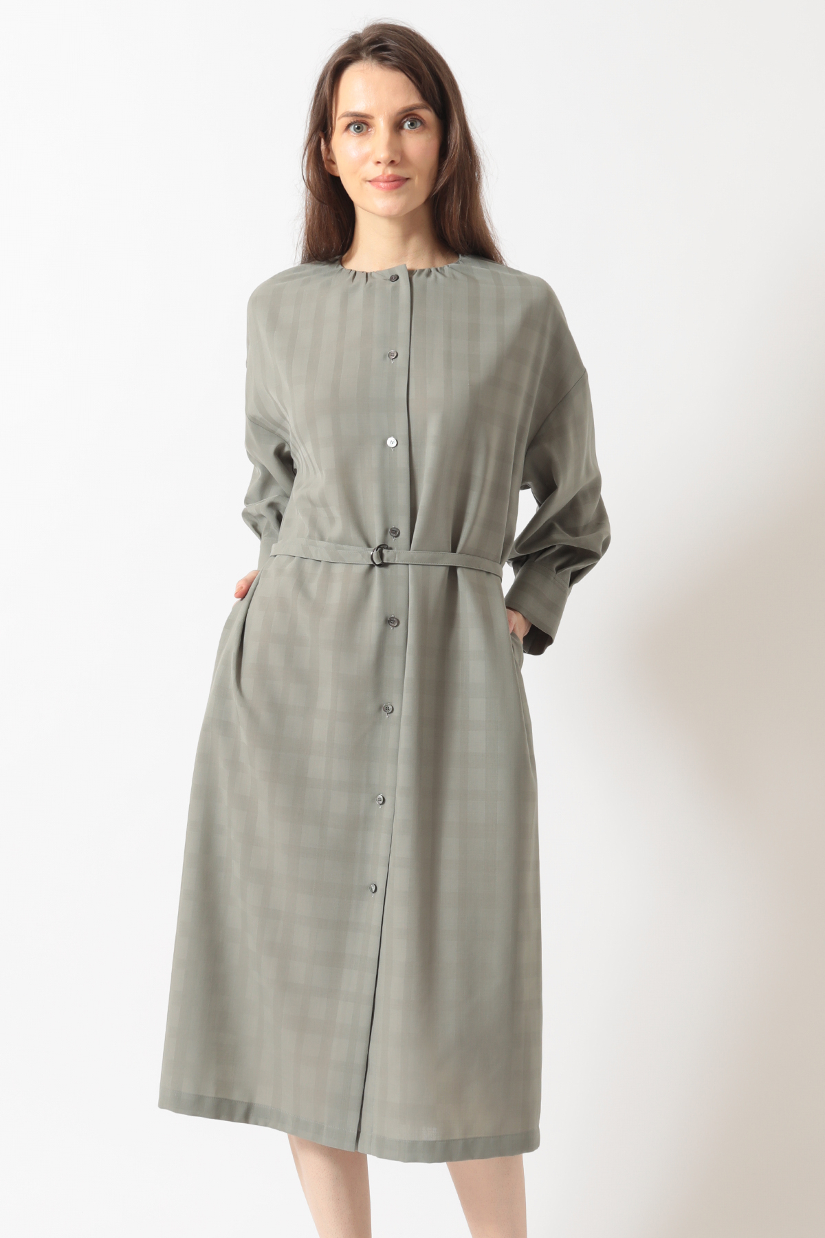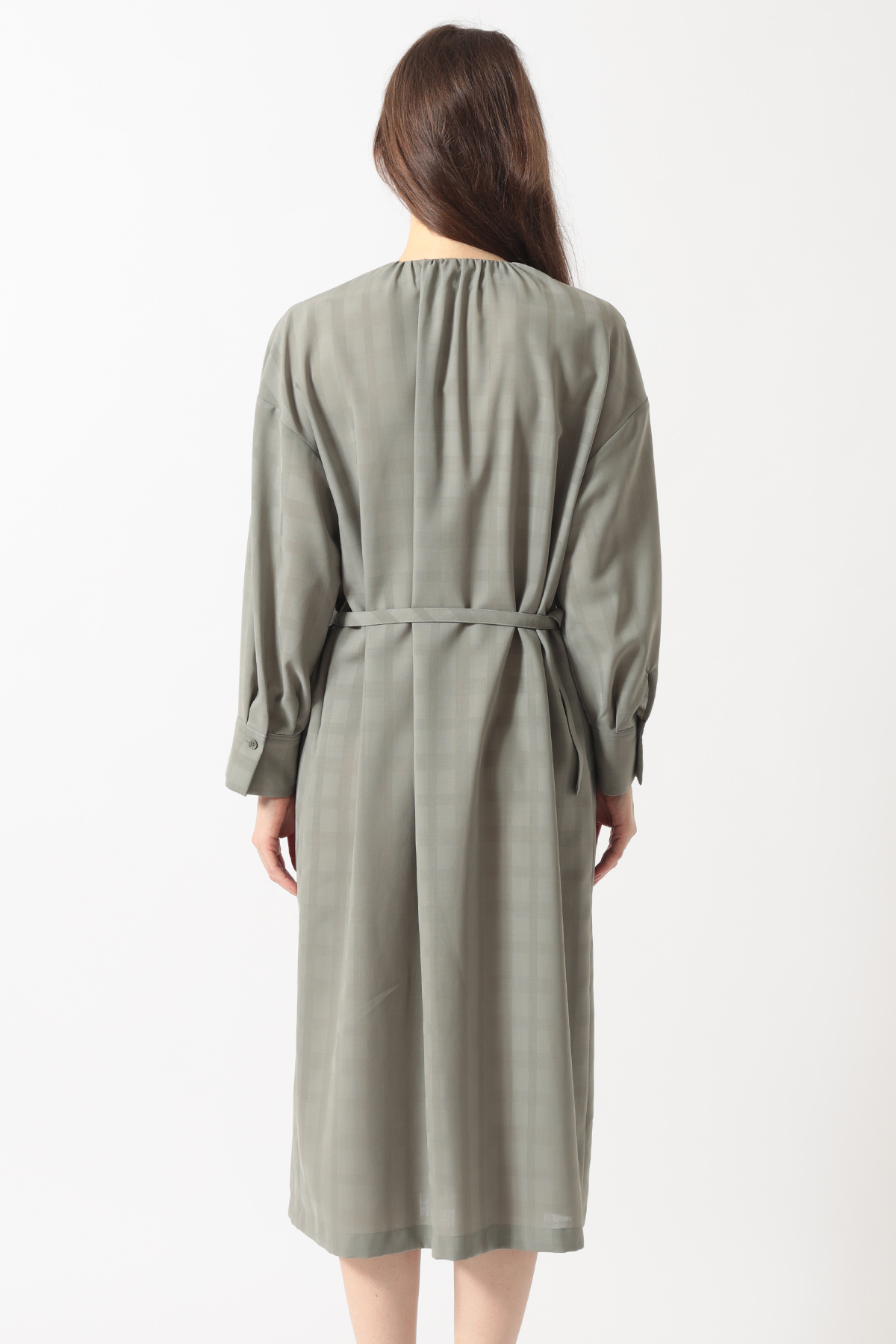 ウールとポリエステルのビッグシャドーチェックが特徴の、シックなワンピースです。襟元のタックギャザーが優雅な動きを演出し、ゆったりとしたシルエットはまるで軽いコートのように羽織ることもできます。一枚でワンピースとして、またはライトアウターとして、様々な着こなしが楽しめる2WAY仕様。上品さとリラックス感を兼ね備え、幅広いシーンで活躍するDAKSの新作です。
