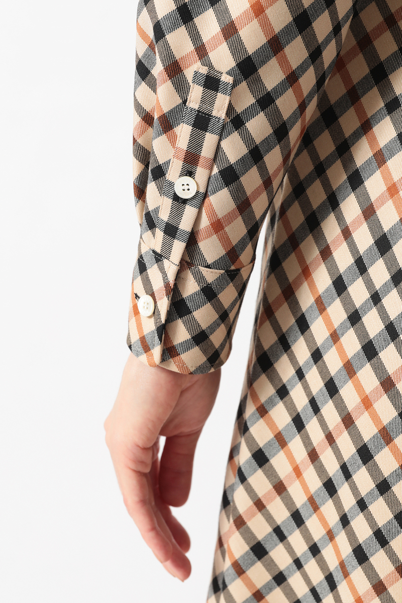ソフトでなめらかなハウスチェックをバイアス(斜め)に配置し、素材の美しい落ち感を最大限に活かしたシャツです。身体に優しく馴染むラインを表現し、バイアス使いによってナチュラルなストレッチ感も兼ね備えています。DAKSならではの上品さと快適な着心地で、ビジネスからカジュアルまで幅広いシーンで活躍する一枚です。