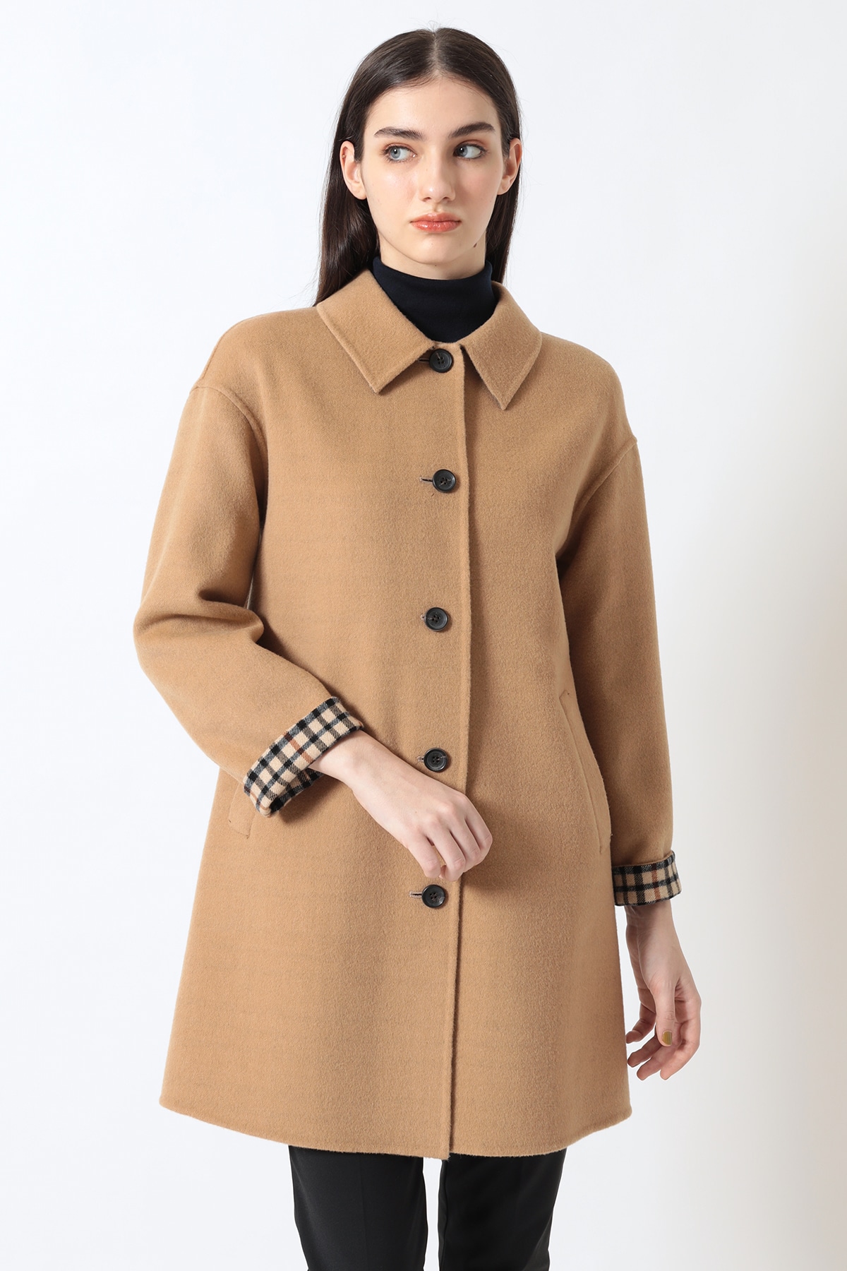 上質ウールに包まれる。折り返して覗くハウスチェックで品格を添える一着