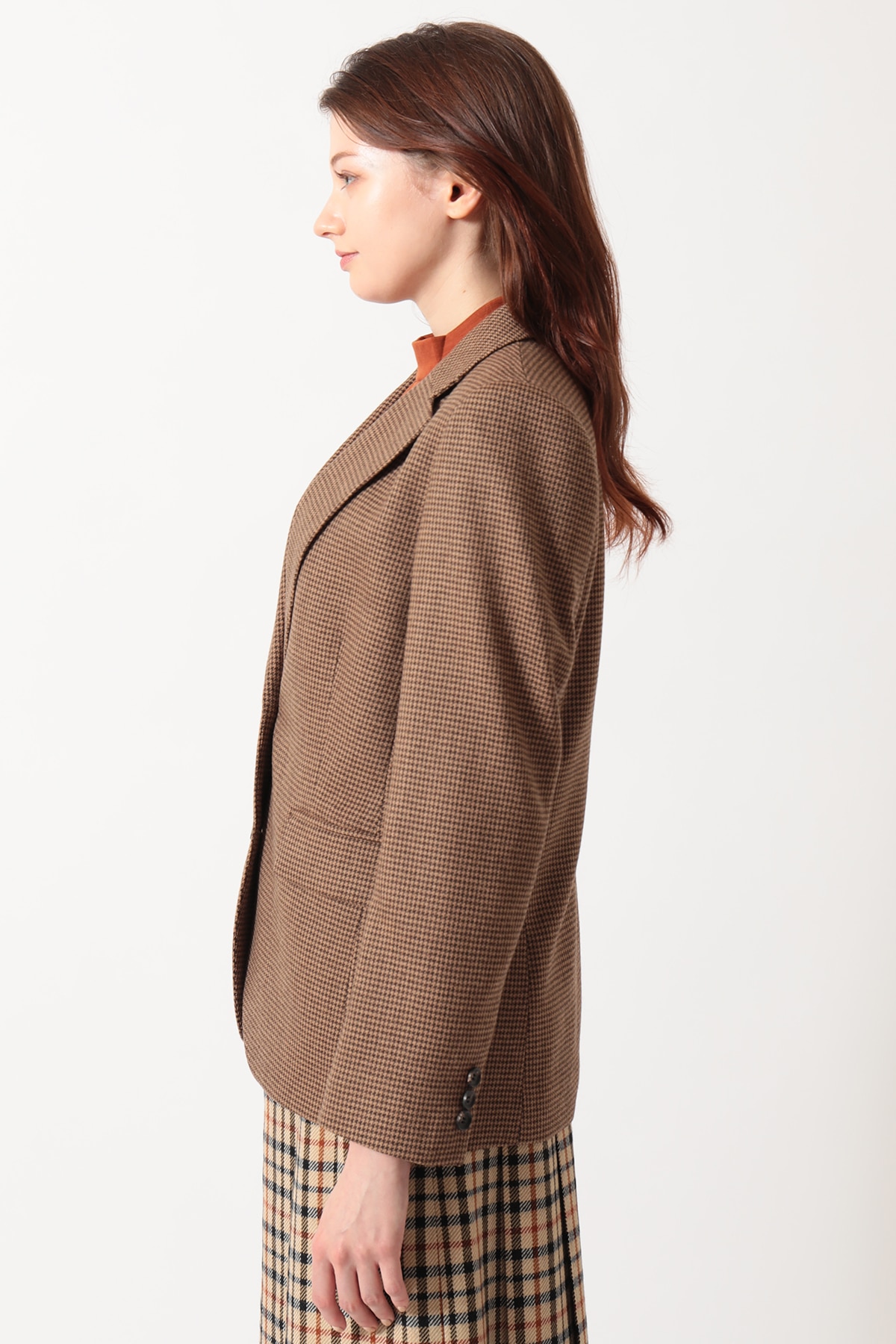 上質なウールを使用した、柔らかで繊細なガンクラブ柄ソフトツイードです。ガンクラブ柄は、微細な格子模様が特徴で、シックで落ち着いた印象を与えます。ソフトツイードならではの手触りの良さと柔軟性により、非常に快適な着心地を実現しています。