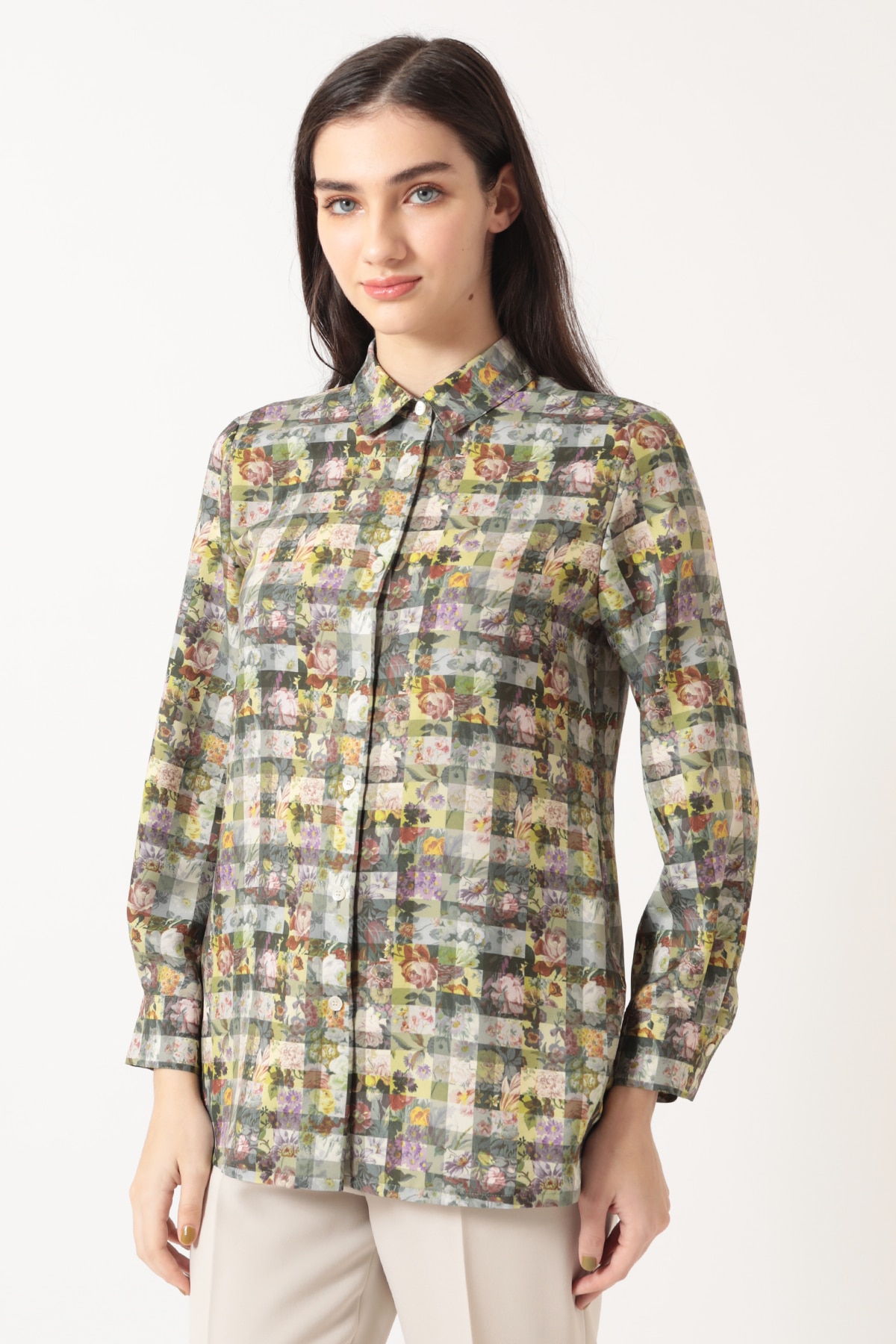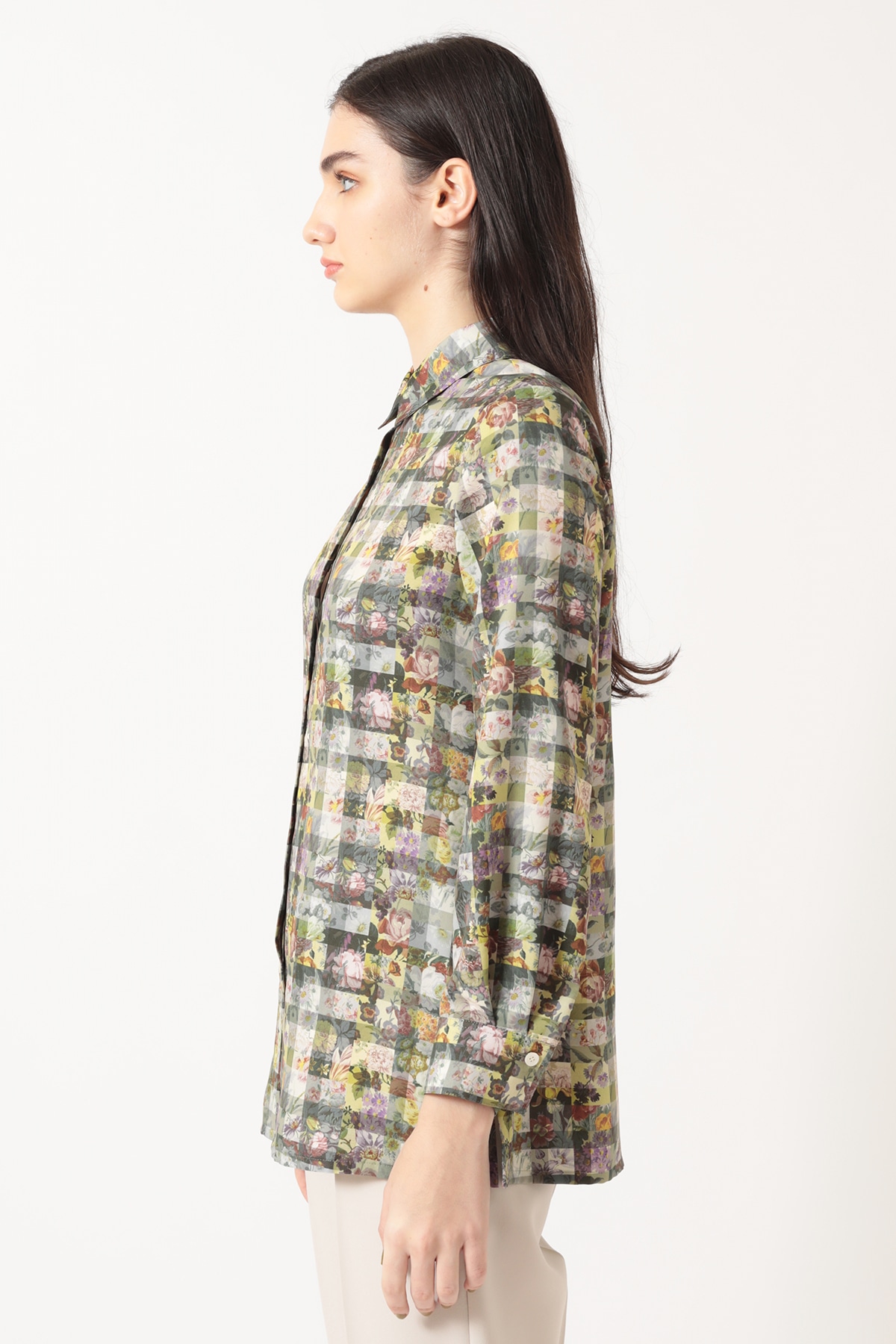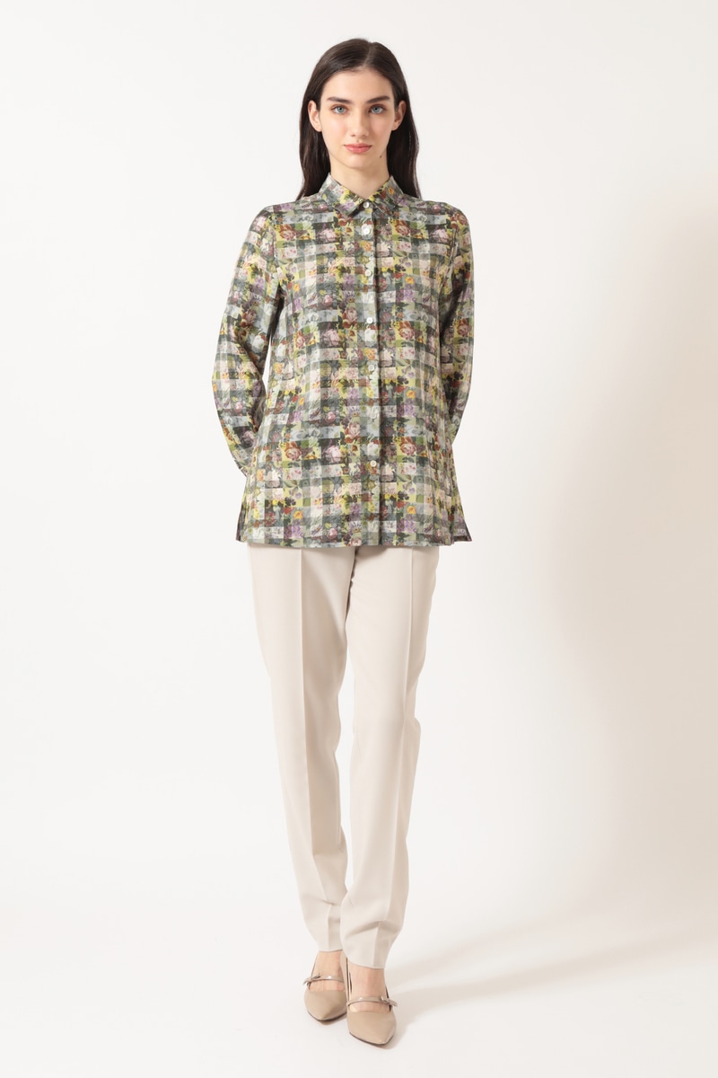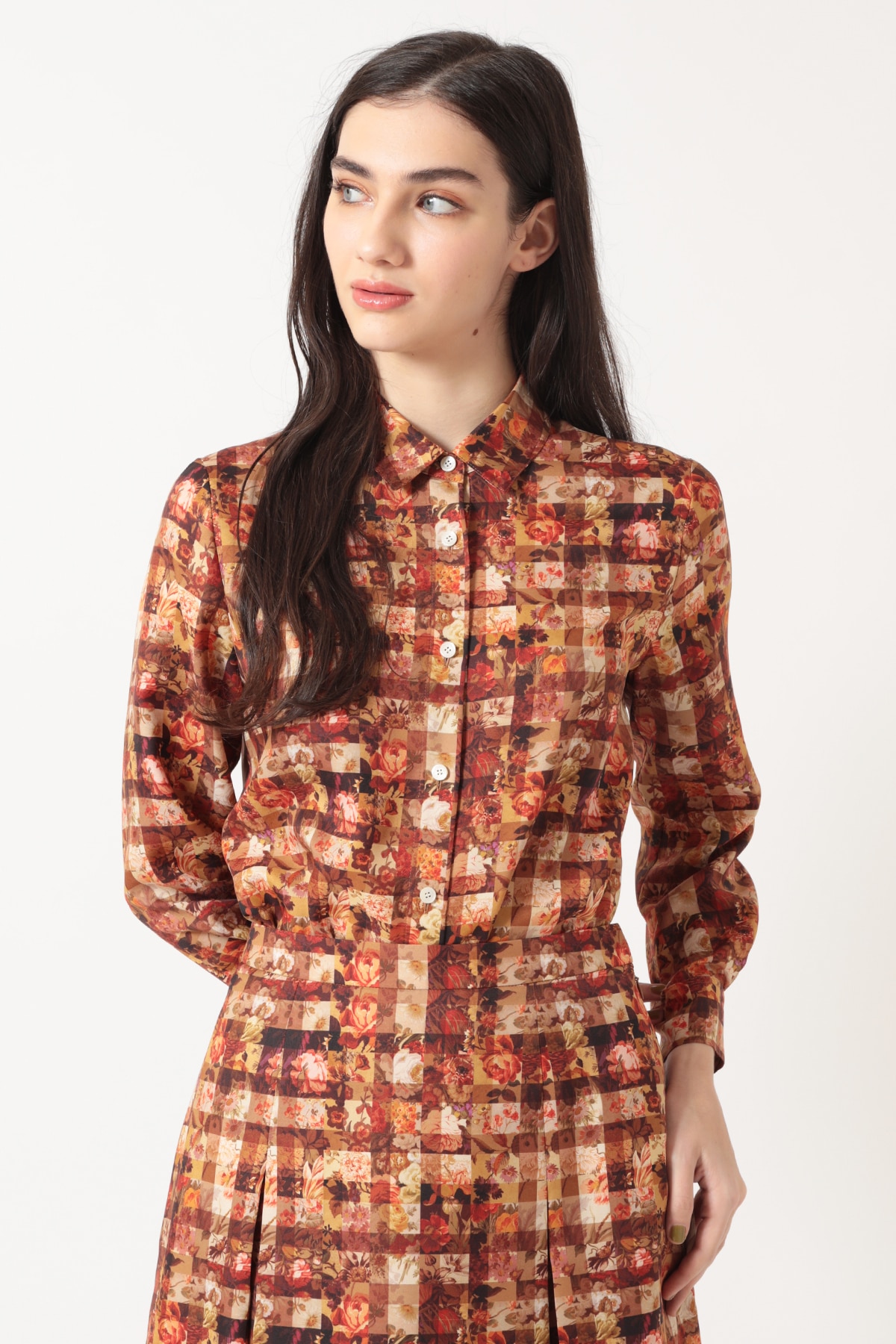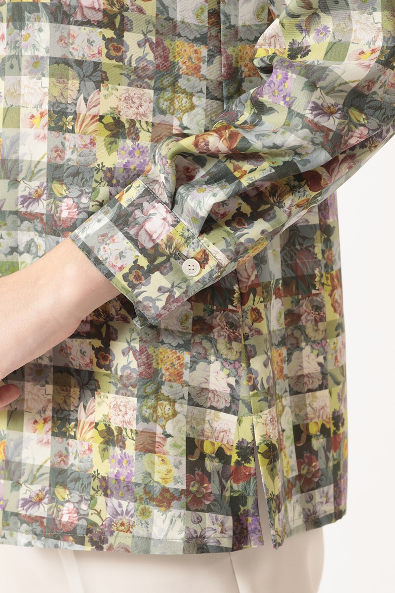 華やかなリバティプリントを活かしたシンプルなブラウスです。インナーとしても着やすい程よい分量感で、すっきりと美しいシルエットで着こなせます。一枚で着ても、ジャケットやカーディガンのインナーとしても、コーディネートに上品な華やかさを添えるDAKSらしいアイテムです。