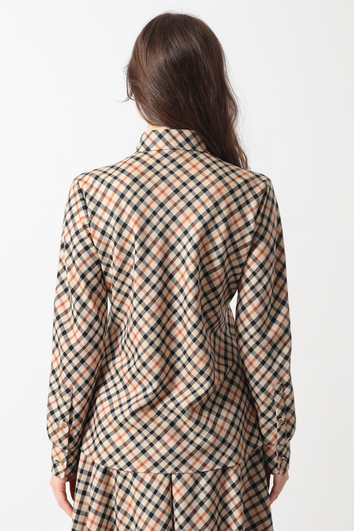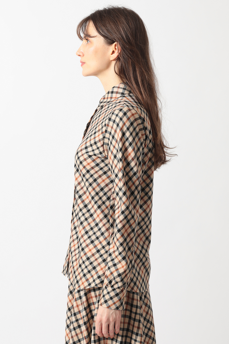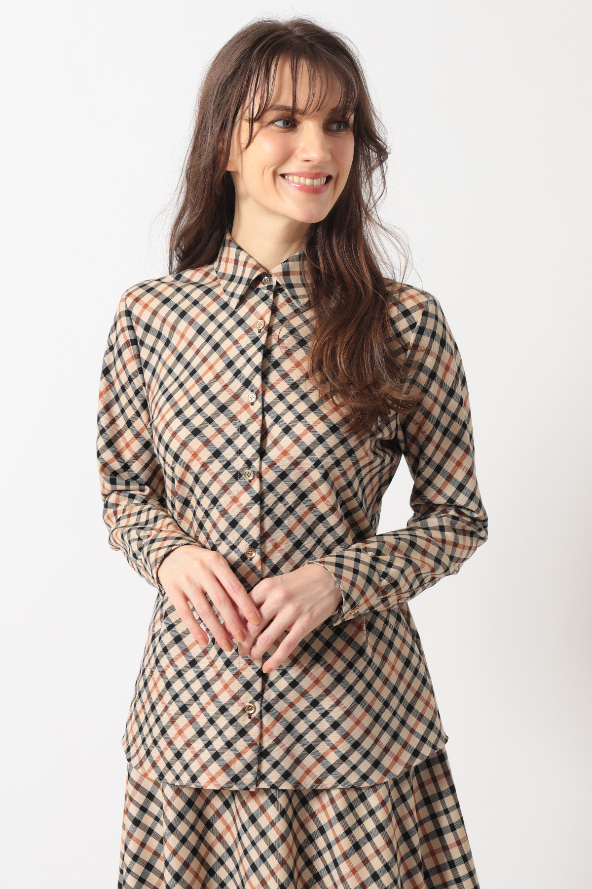 ソフトでなめらかなハウスチェックをバイアス(斜め)に配置し、素材の美しい落ち感を最大限に活かしたシャツです。身体に優しく馴染むラインを表現し、バイアス使いによってナチュラルなストレッチ感も兼ね備えています。DAKSならではの上品さと快適な着心地で、ビジネスからカジュアルまで幅広いシーンで活躍する一枚です。