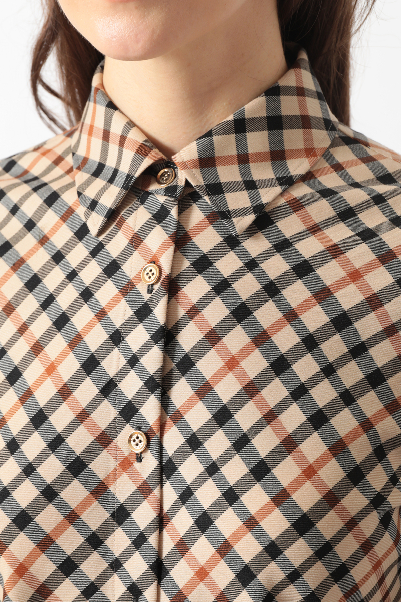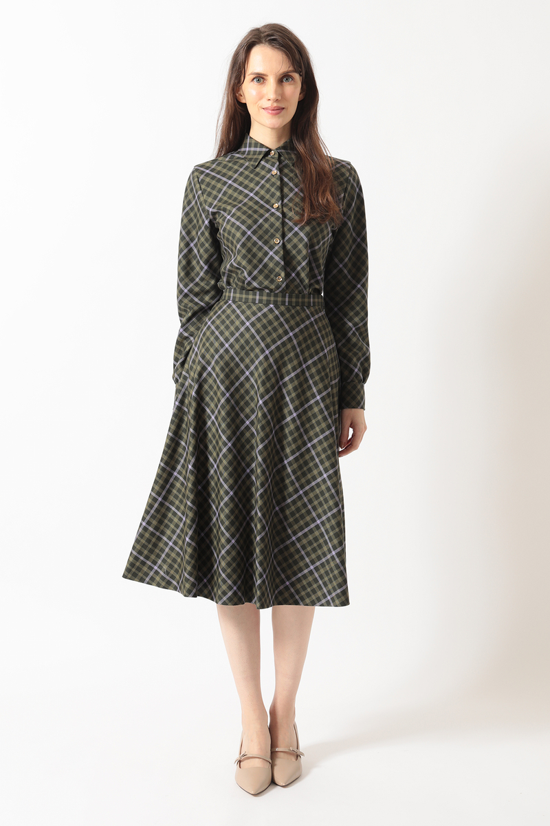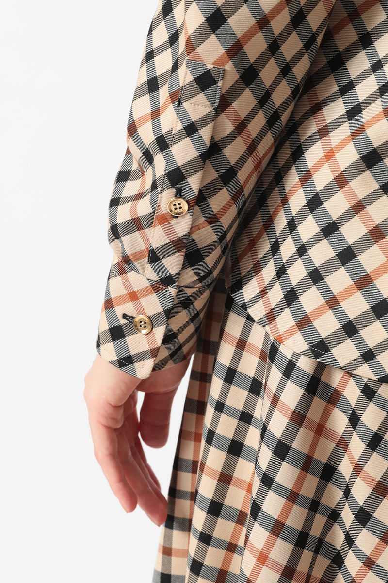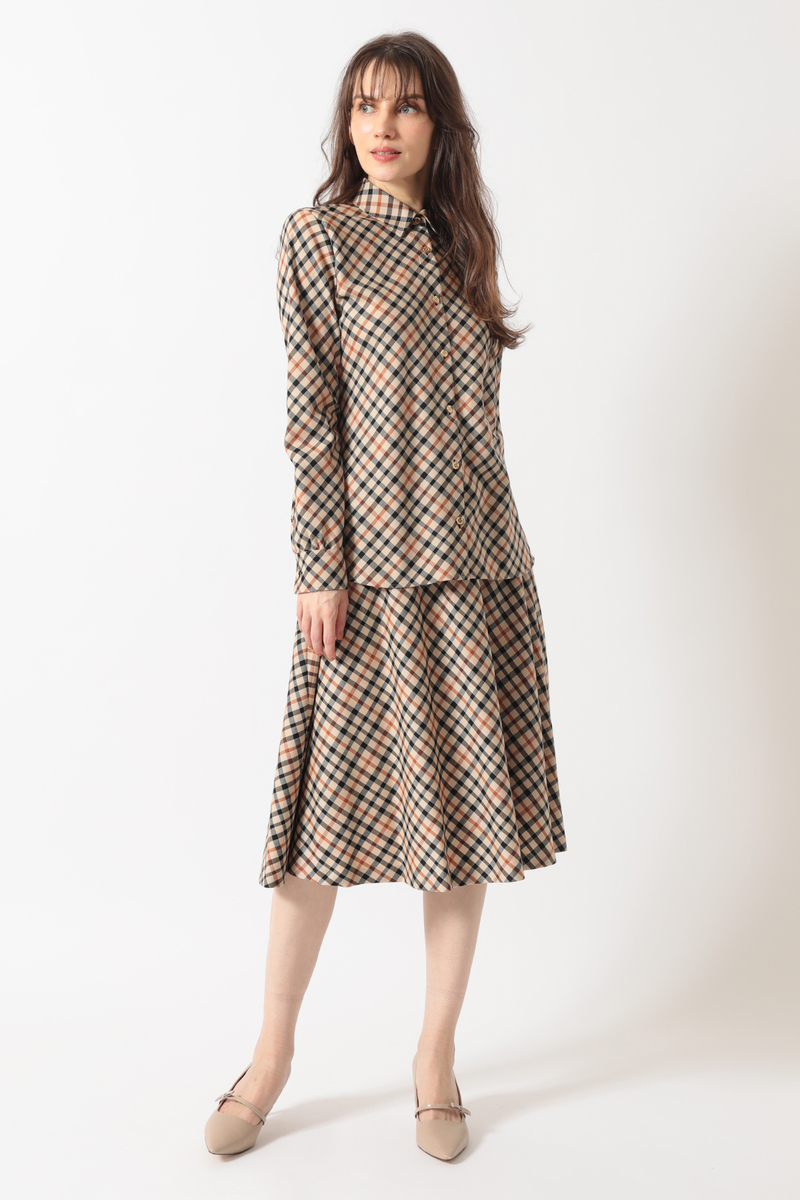 ソフトでなめらかなハウスチェックをバイアス(斜め)に配置し、素材の美しい落ち感を最大限に活かしたシャツです。身体に優しく馴染むラインを表現し、バイアス使いによってナチュラルなストレッチ感も兼ね備えています。DAKSならではの上品さと快適な着心地で、ビジネスからカジュアルまで幅広いシーンで活躍する一枚です。