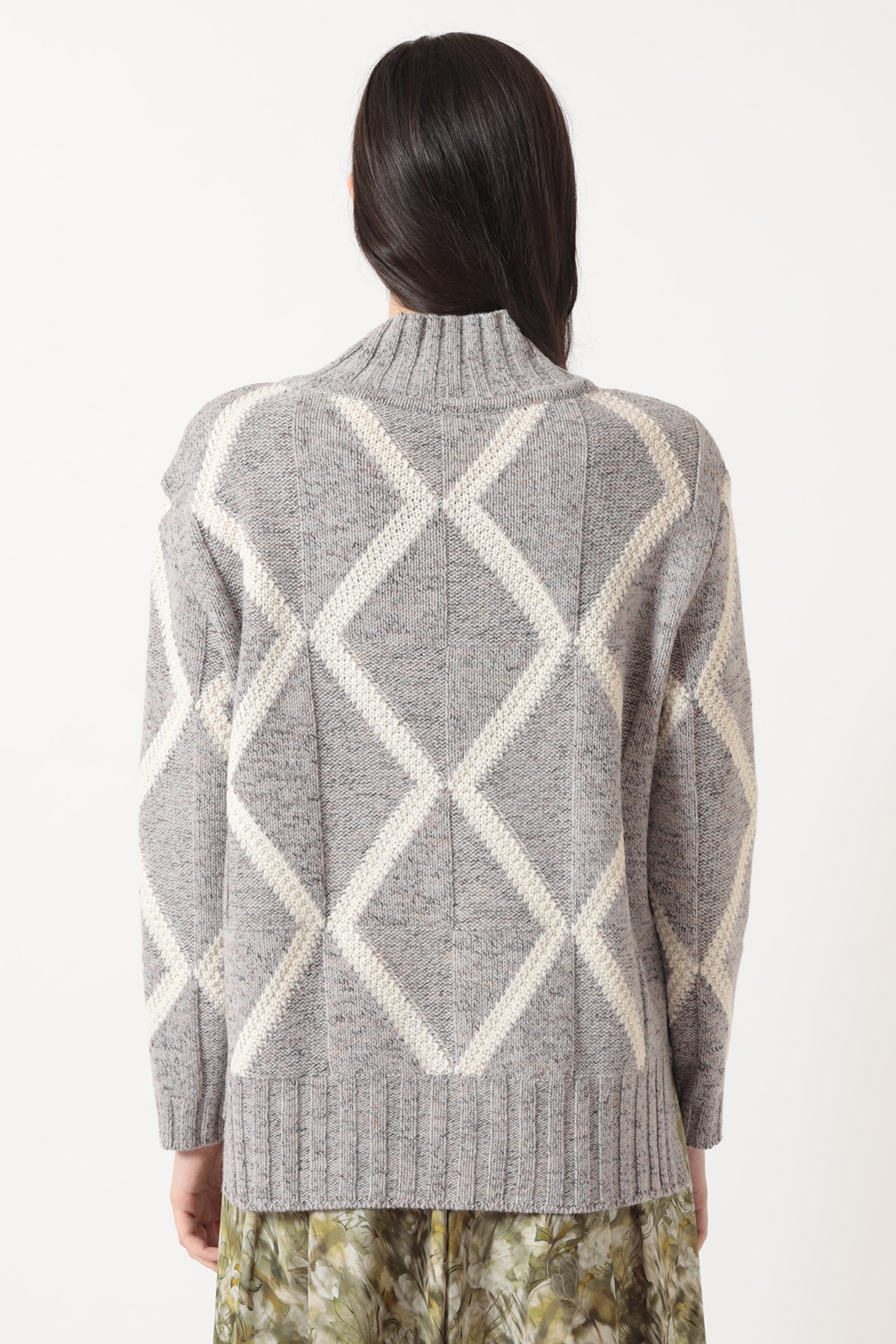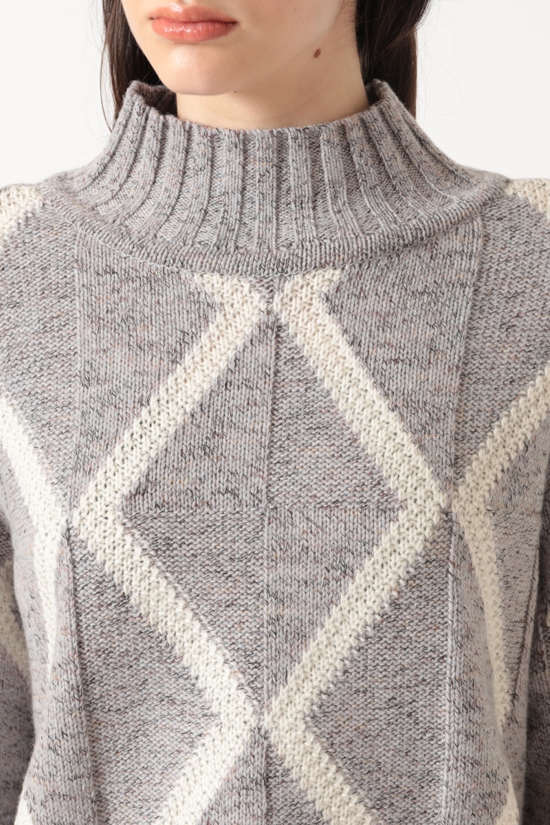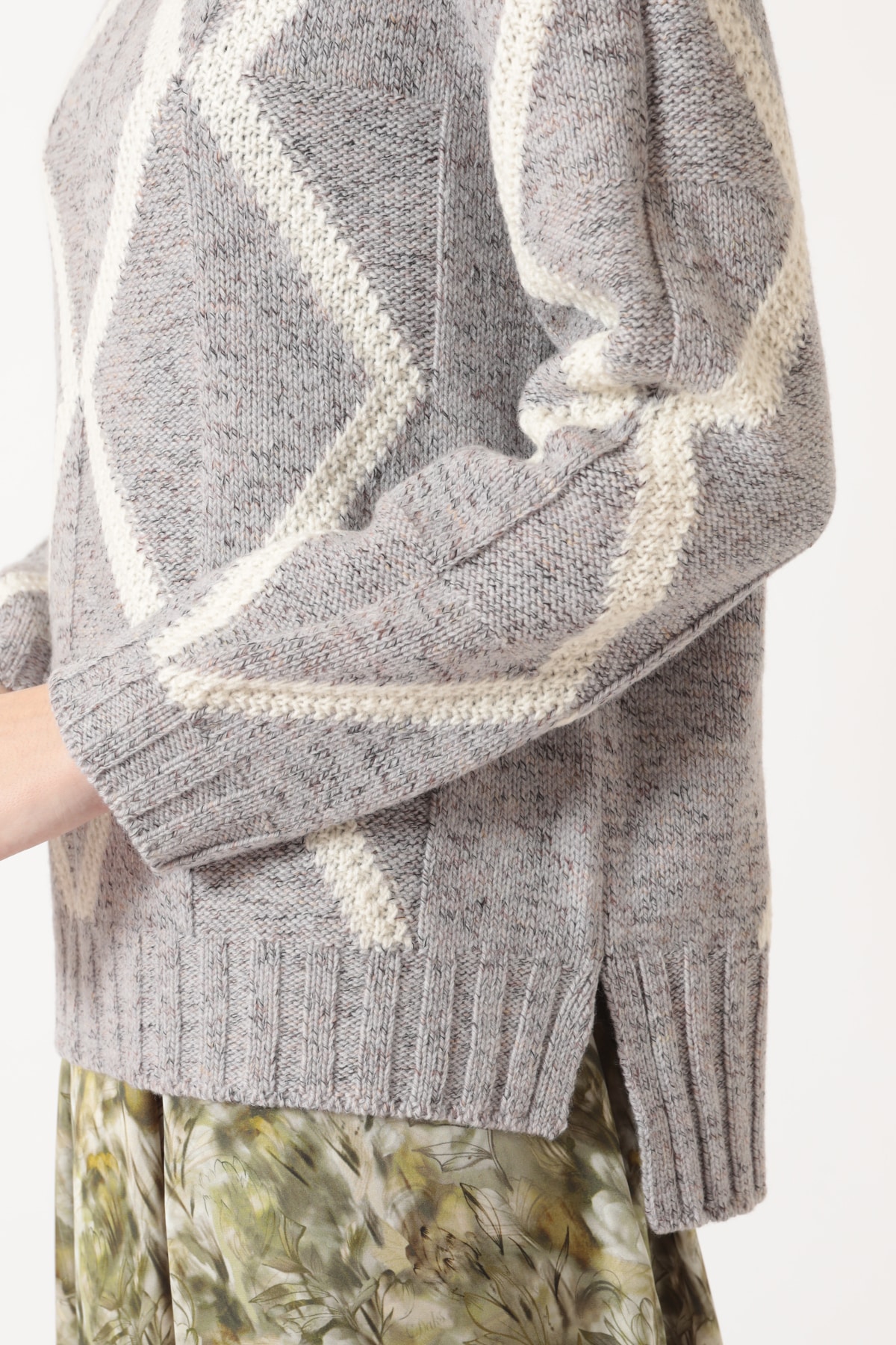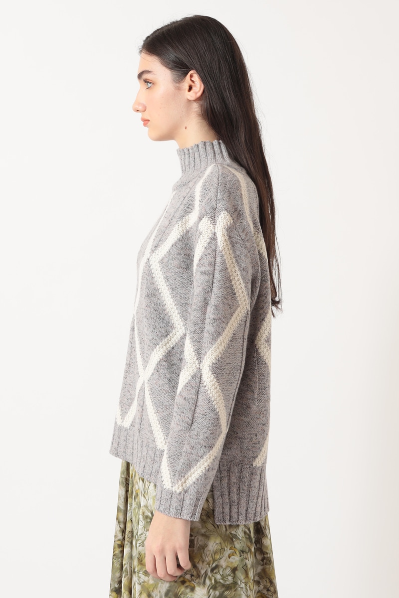 イタリア糸 ダイヤ柄ニットプルオーバー