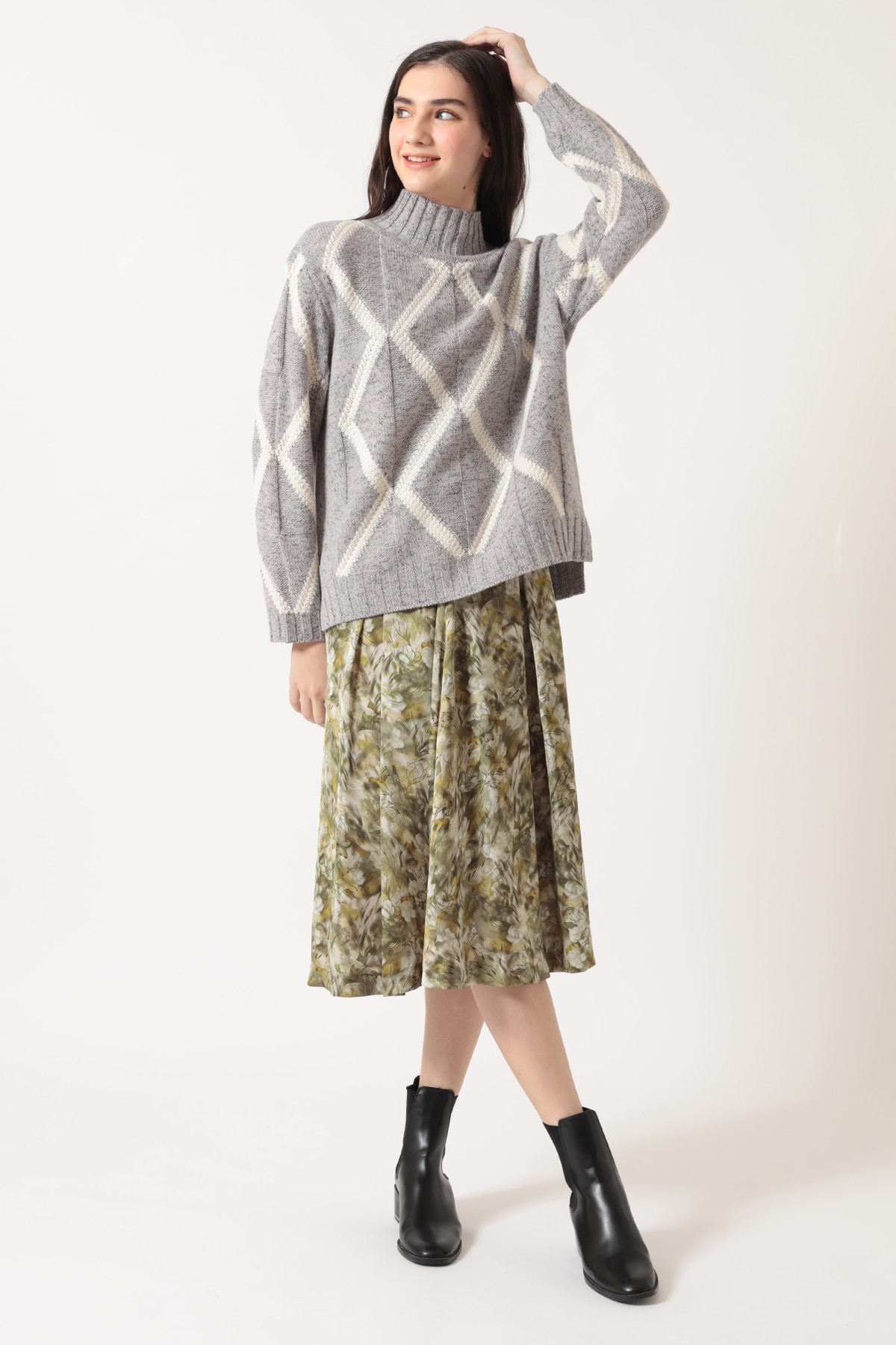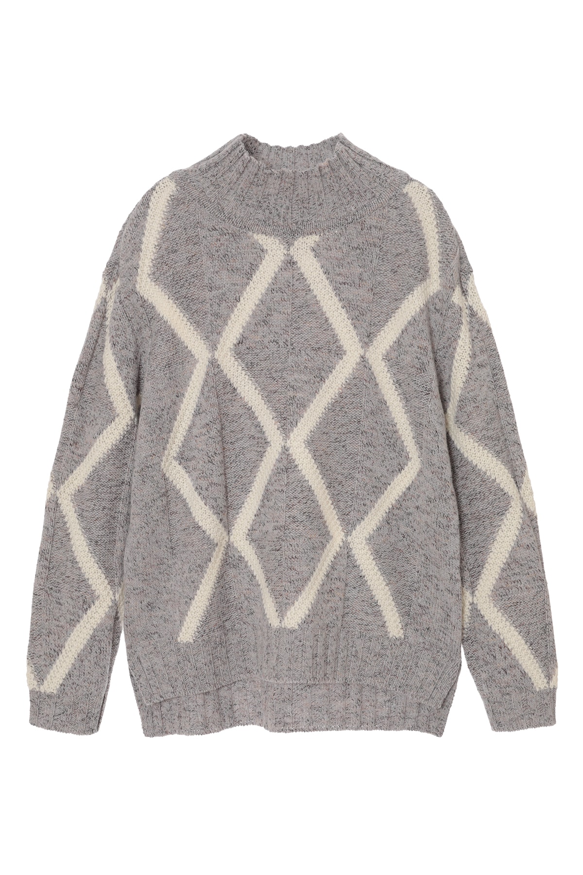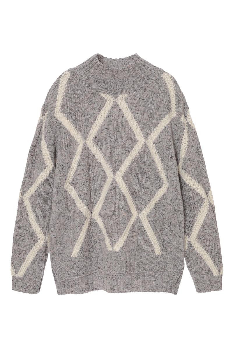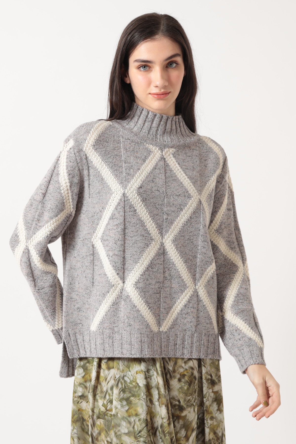 イタリア糸 ダイヤ柄ニットプルオーバー