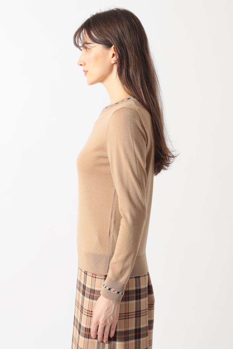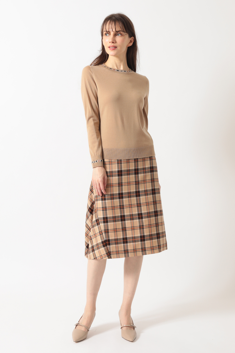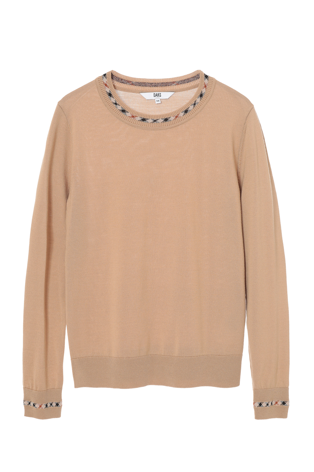 今季のベーシックプルオーバーは、DAKSの象徴であるハウスチェックジャカードを部分的に編み込んでお作りしました。カラーは、ハウスチェックに合わせやすいベーシックカラーと、シーズンチェックに合わせたポイントカラーの2パターンをご用意。さりげないDAKSチェックが上品な印象を与え、どんなスタイルにも合わせやすい洗練された一枚です。