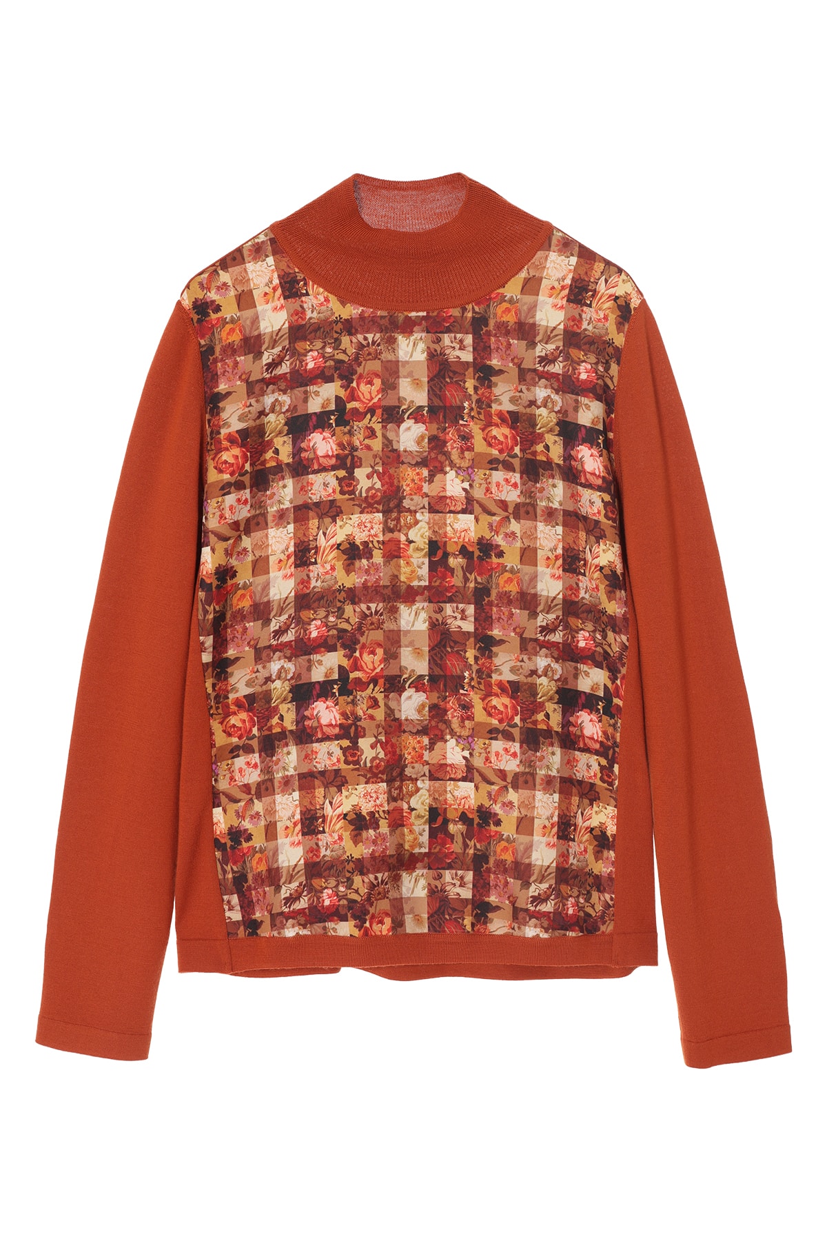 リバティ社のアーカイブ資料から厳選されたプリント生地と、上質なニットを組み合わせたハイネックプルオーバーです。顔まわりを華やかに彩るプリントが特徴で、同プリントのスカートとコーディネートすれば、さらに華やかで女性らしい印象を演出できます。DAKSならではの洗練されたデザインと、快適な着心地を兼ね備えたニットです。