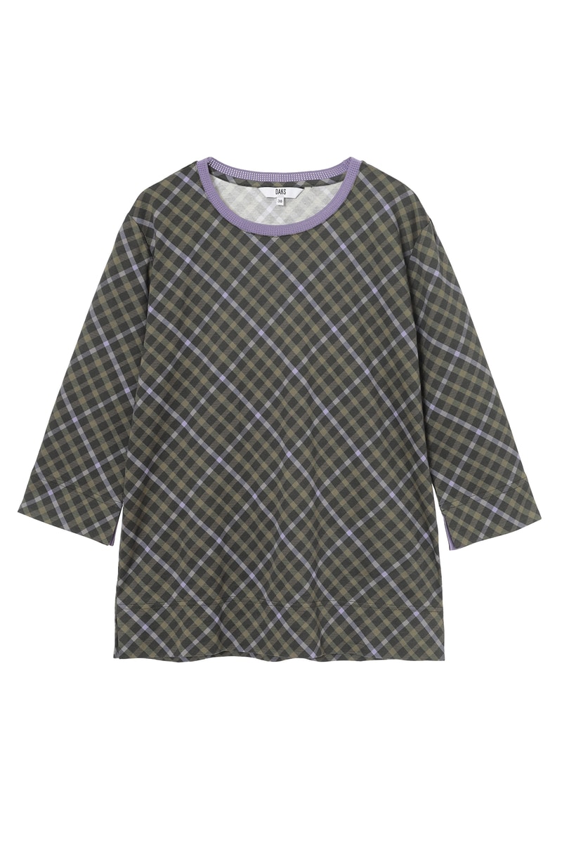 DAKSの定番七分袖Tシャツが登場。ネックラインにあしらわれた透かし柄リブがデザインのアクセントになっています。