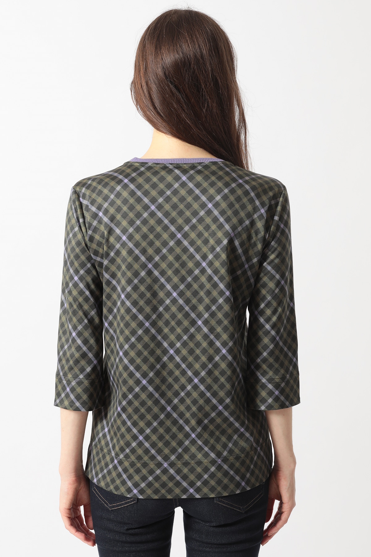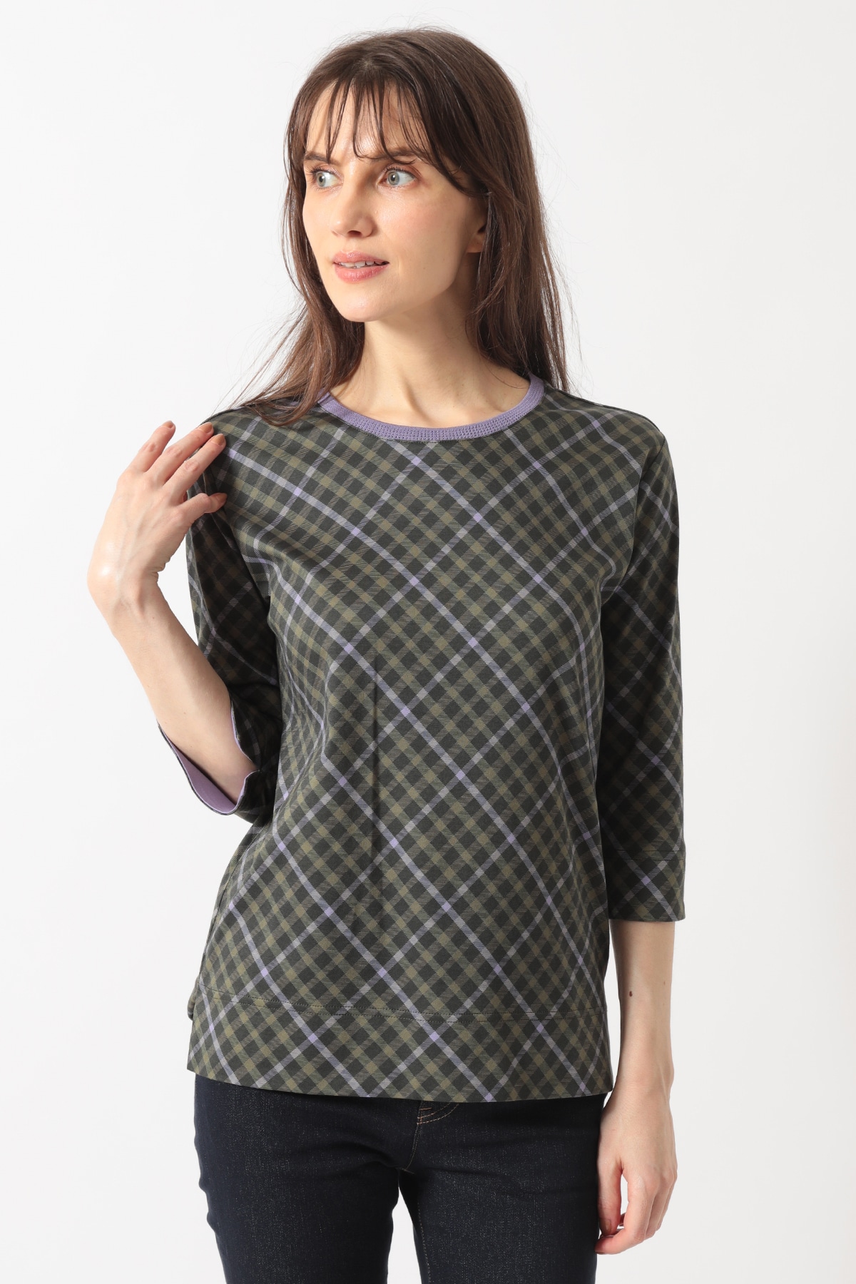 上質な60/1コットンスムースを使用しており、なめらかな表面と柔らかな肌触りが特徴です。チェック柄をバイアス(斜め)にプリントすることで、より洗練された印象に仕上げています。