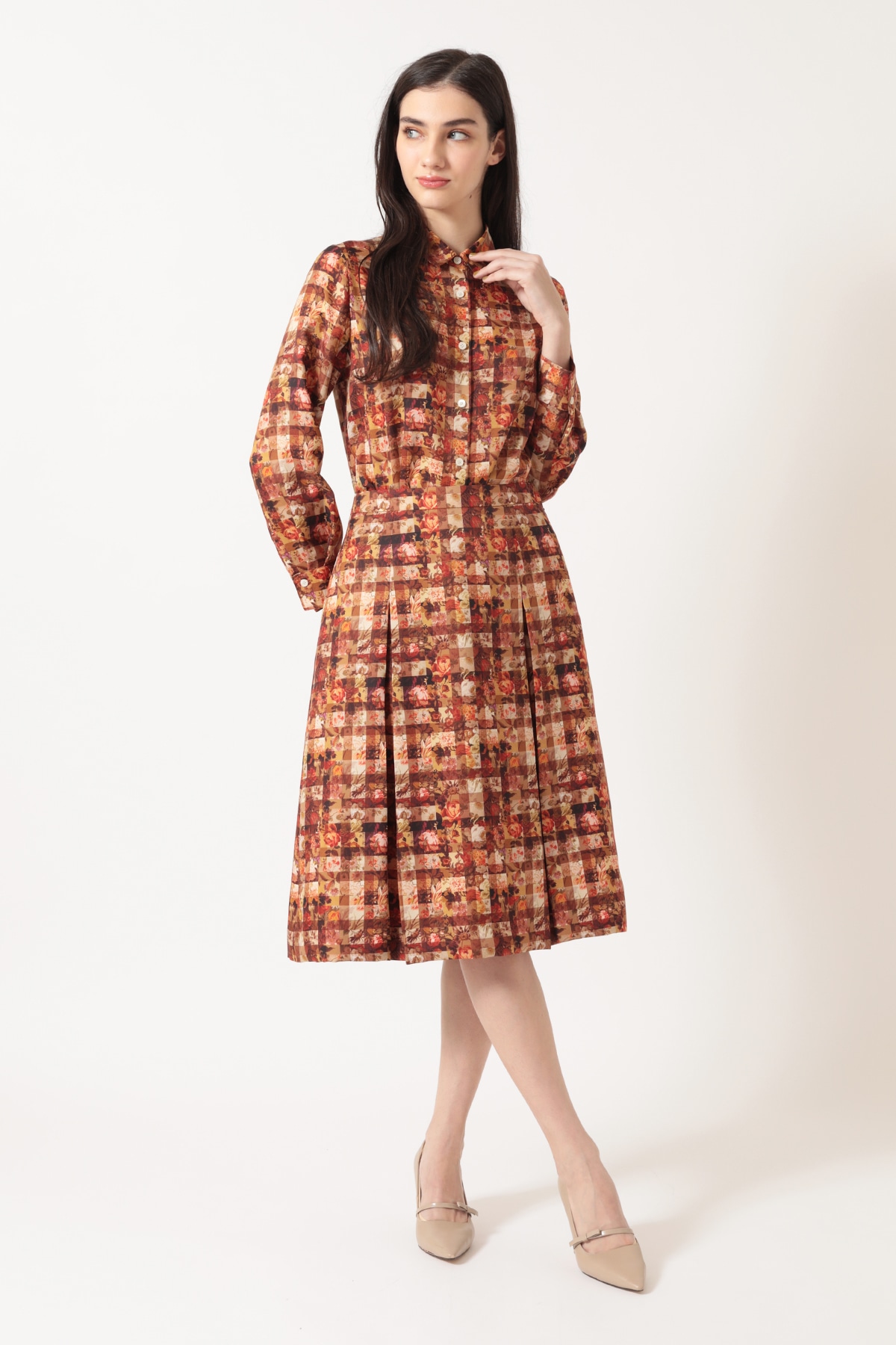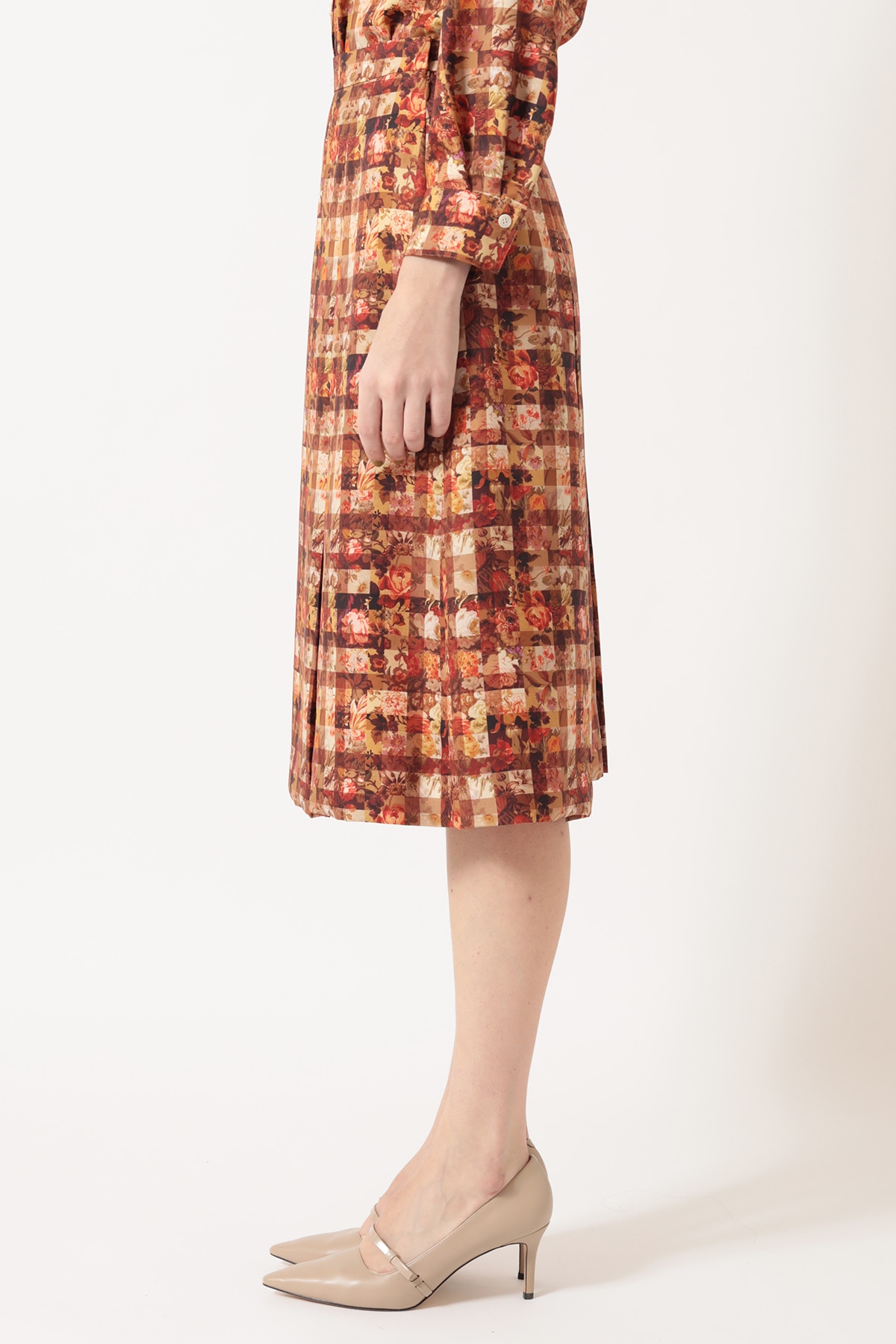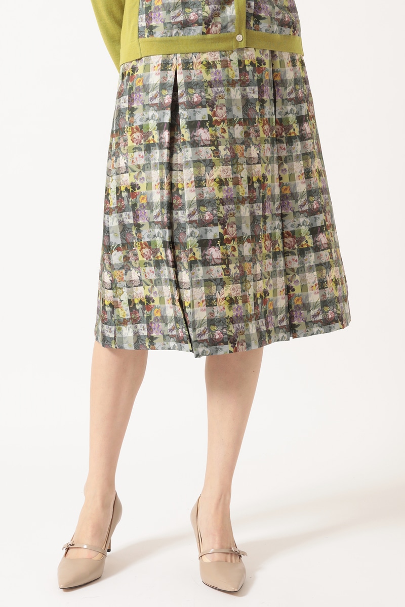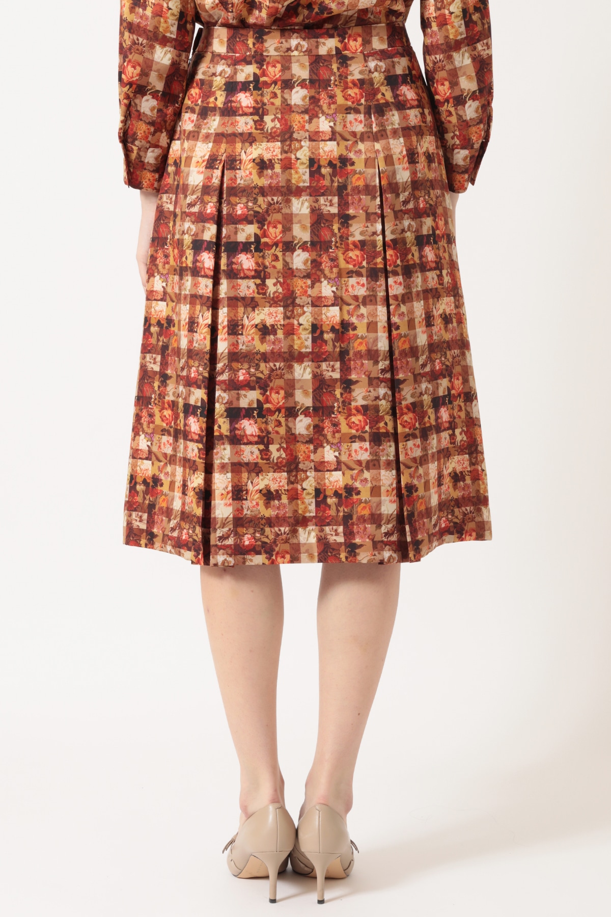 前後に2本ずつボックスタックを施した、クラシカルな雰囲気のあるスカートです。シンプルなデザインでありながら、華やかなリバティプリントとの相性が良く、フェミニンな印象を際立たせます。どんなトップスと合わせても上品にまとまる、DAKSらしい洗練された一枚です。