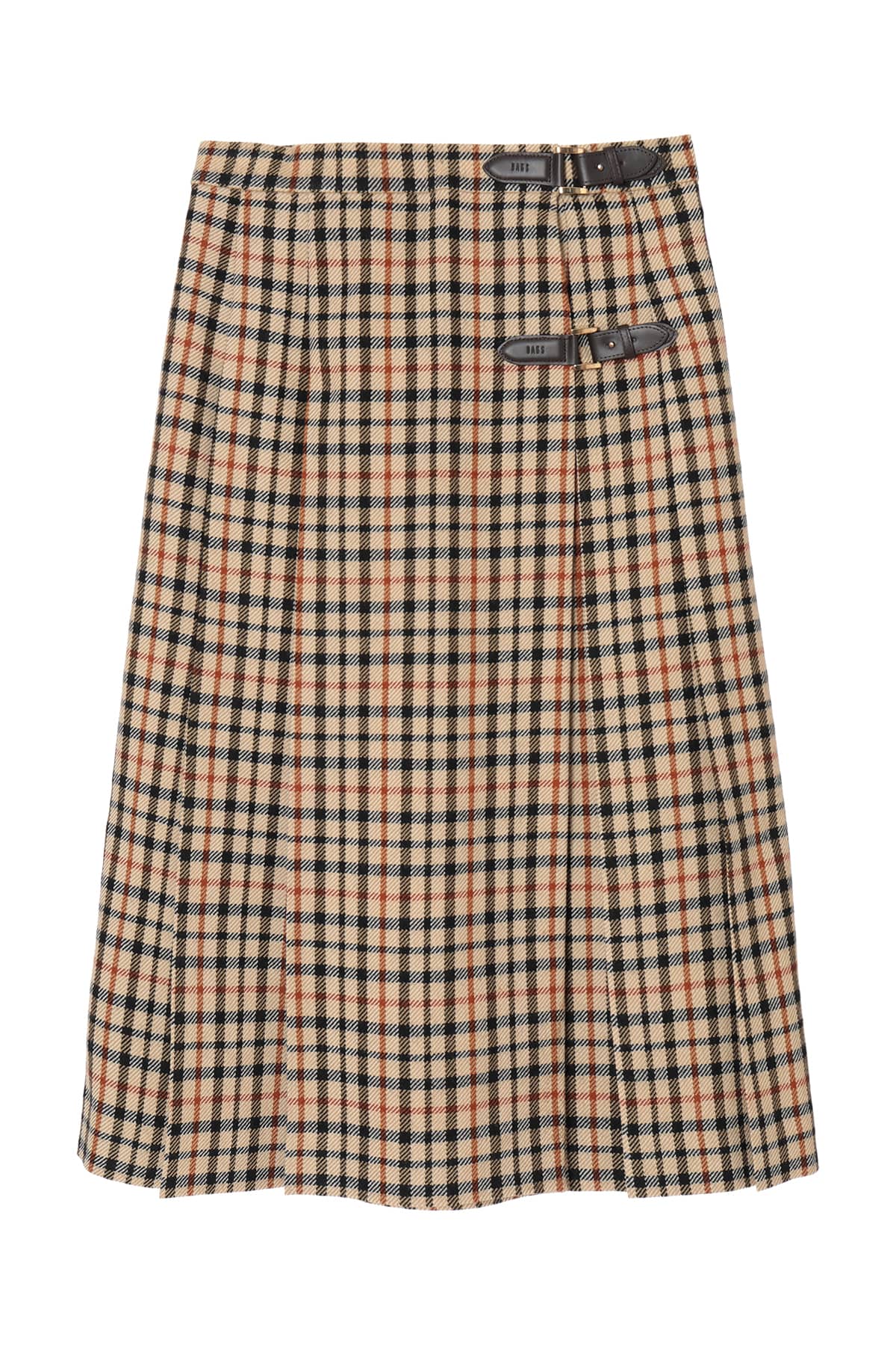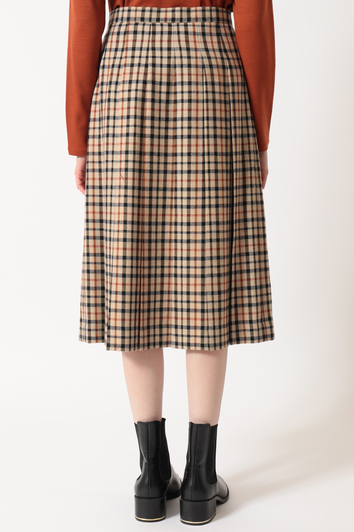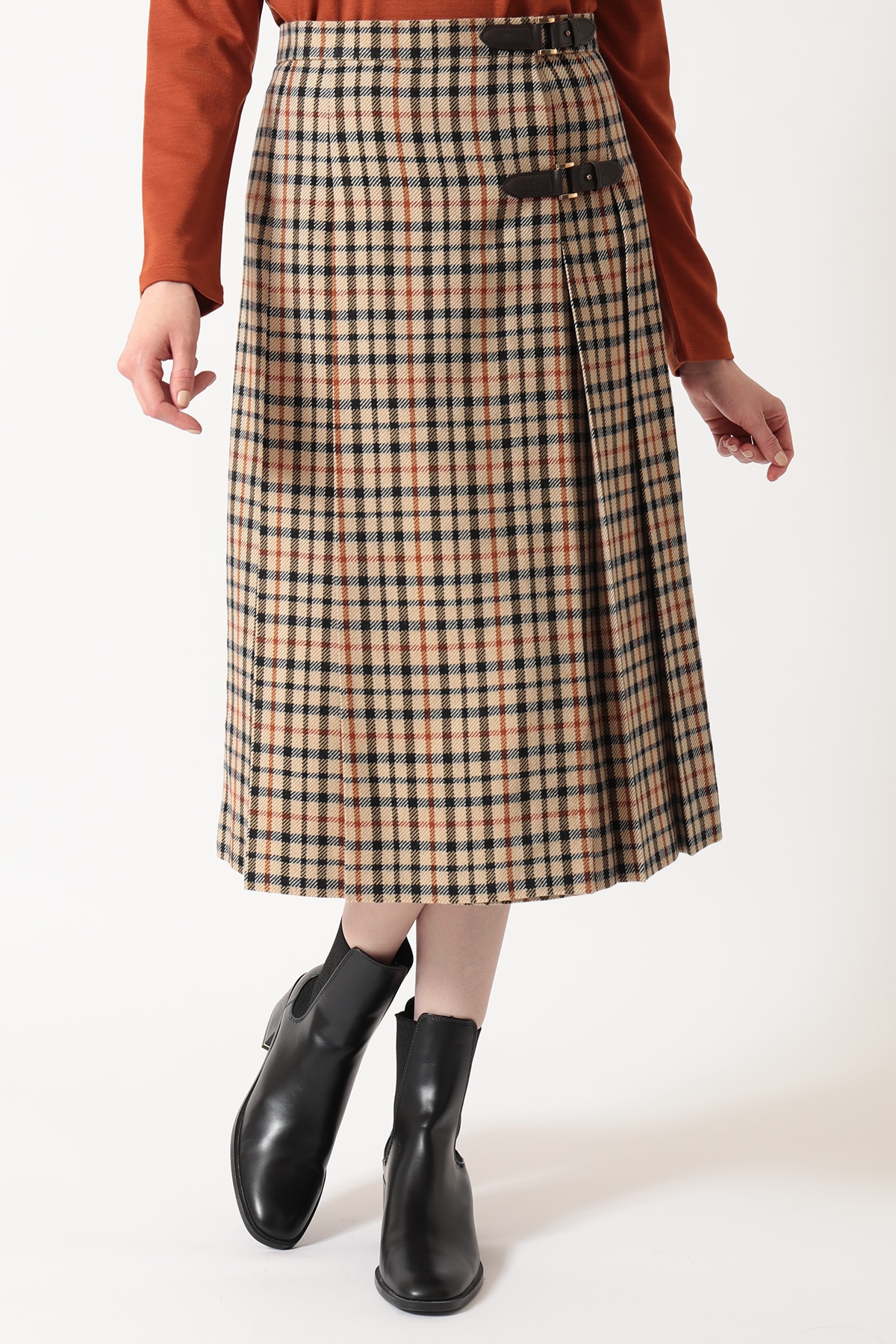 DAKS定番のタミースカートが、今季らしい表情で登場です。少し太めのプリーツ幅と長めの丈が特徴で、モダンな印象を演出します。上品でありながらも、トレンド感のある着こなしが叶う一枚。カジュアルにもきれいめにも合わせやすく、幅広いシーンで活躍するDAKSこだわりのスカートです。