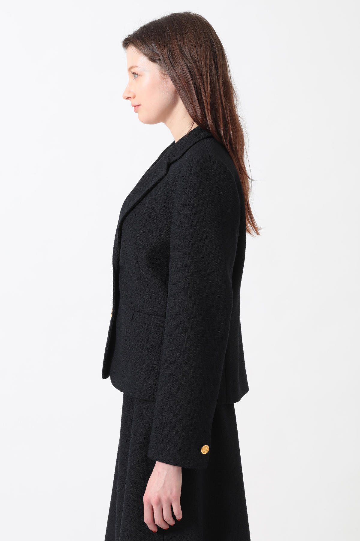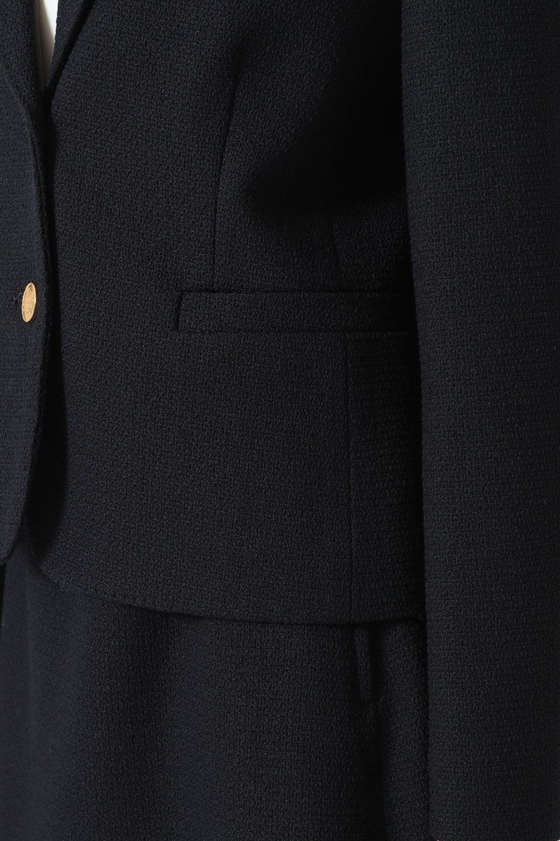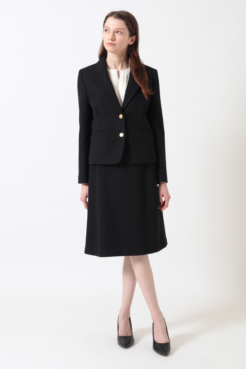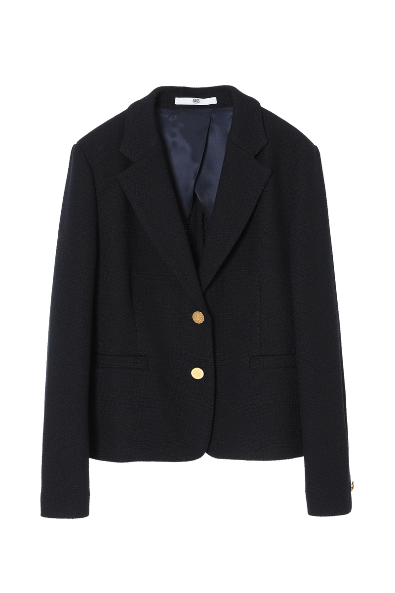 ほどよいパッド感と女性らしいシルエットが魅力のベーシックブレザー。ファンシーツイードの表情で硬くなりがちなジャケットにフェミニンさをプラス。スカートやパンツと合わせて多彩なスタイルが楽しめます。