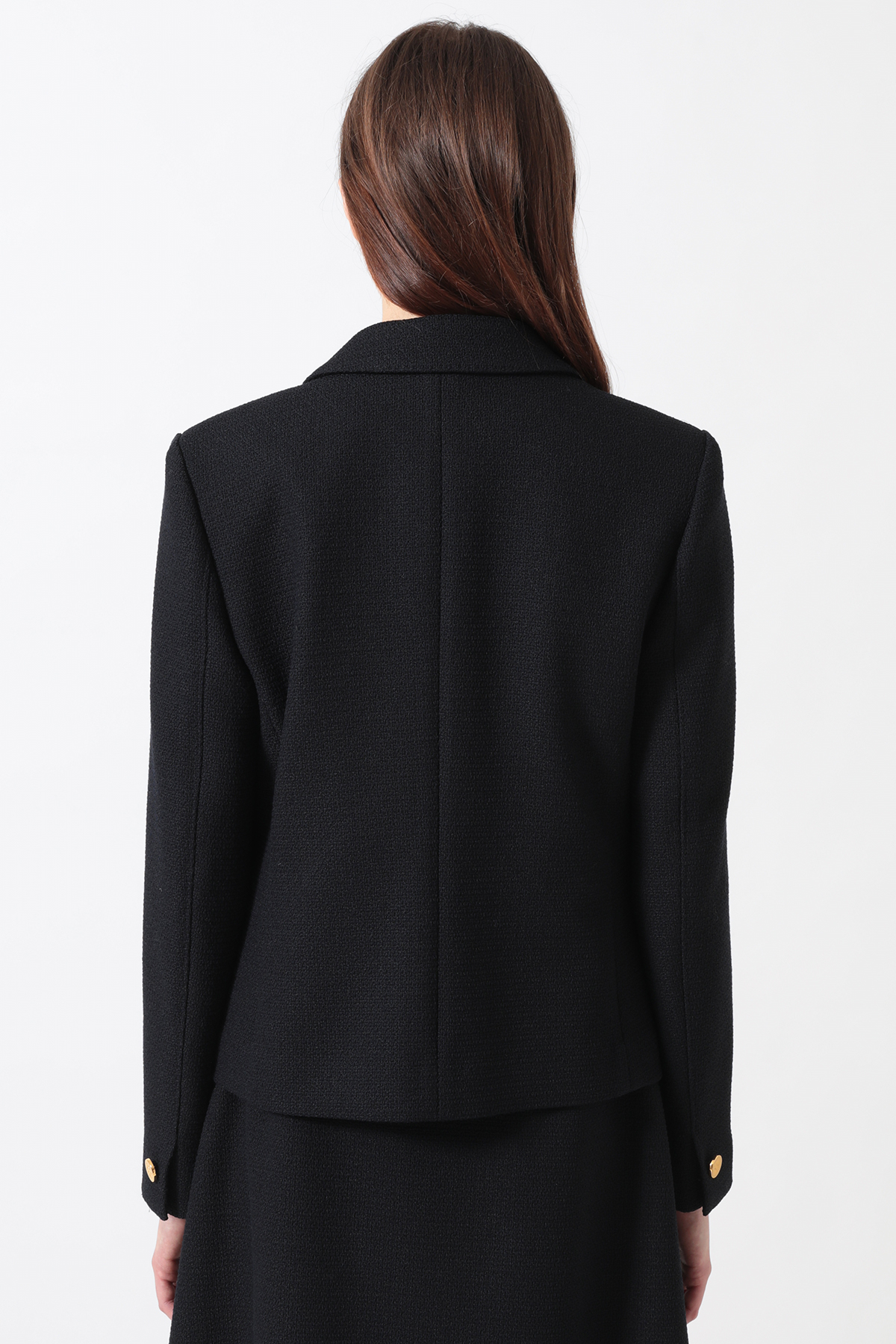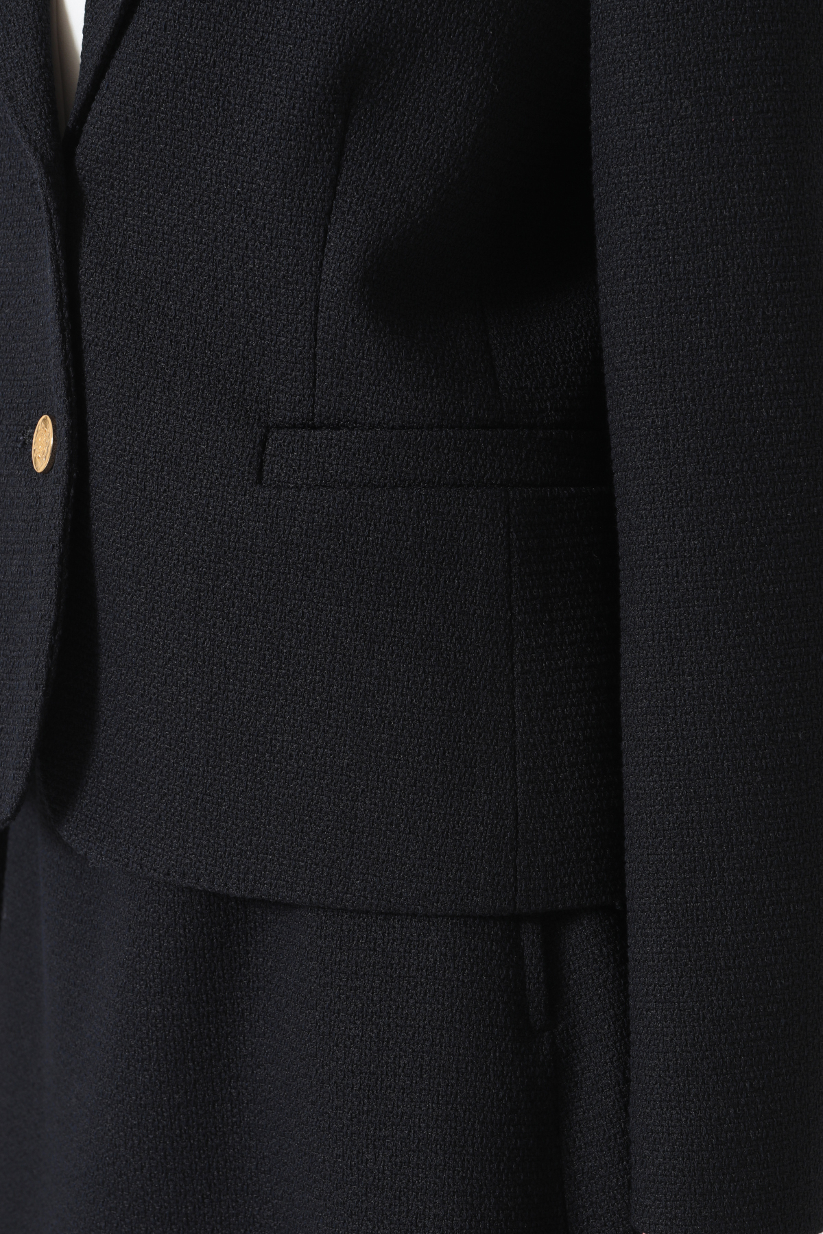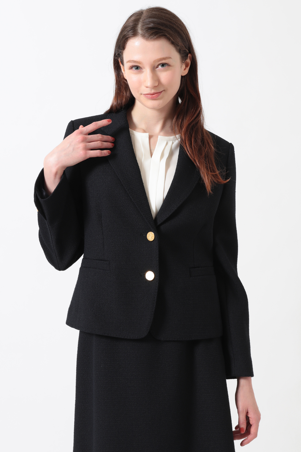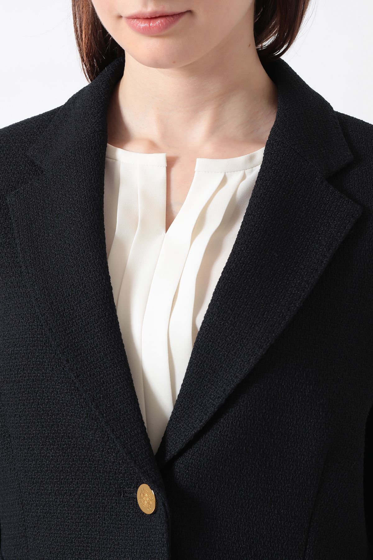 ほどよいパッド感と女性らしいシルエットが魅力のベーシックブレザー。ファンシーツイードの表情で硬くなりがちなジャケットにフェミニンさをプラス。スカートやパンツと合わせて多彩なスタイルが楽しめます。