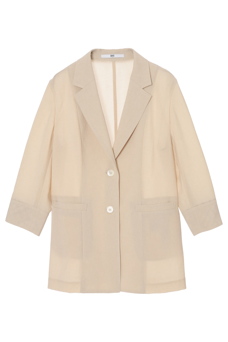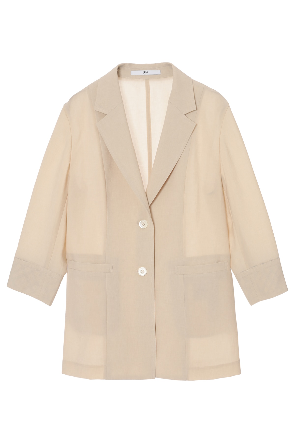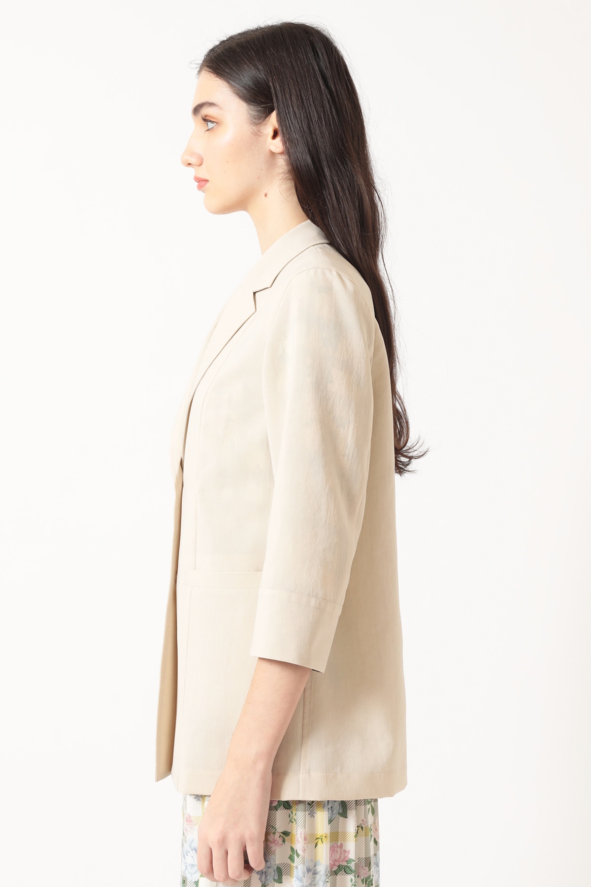 ドライタッチで圧倒的な清涼感を誇る素材を使用した、モダンなオーバーサイズジャケットです。リラックス感のあるゆったりとしたシルエットながら、フロントラペル(襟)を端正に作り込むことで、ラフになりすぎないスマートな印象に仕上げました。程よく身体から離れる設計は、通気性を確保するだけでなく、纏うだけで今の気分を感じさせる洗練されたニュアンスを演出します。夏のビジネスシーンから休日の軽やかな羽織りまで、品格を保ちつつ心地よくお召しいただける一着です。