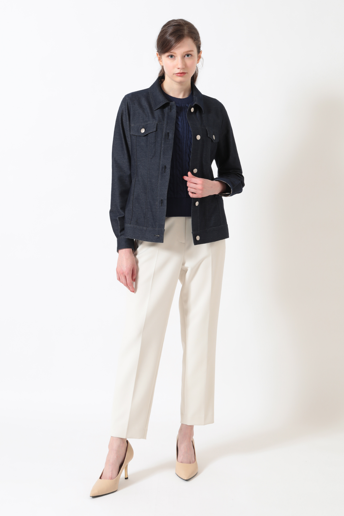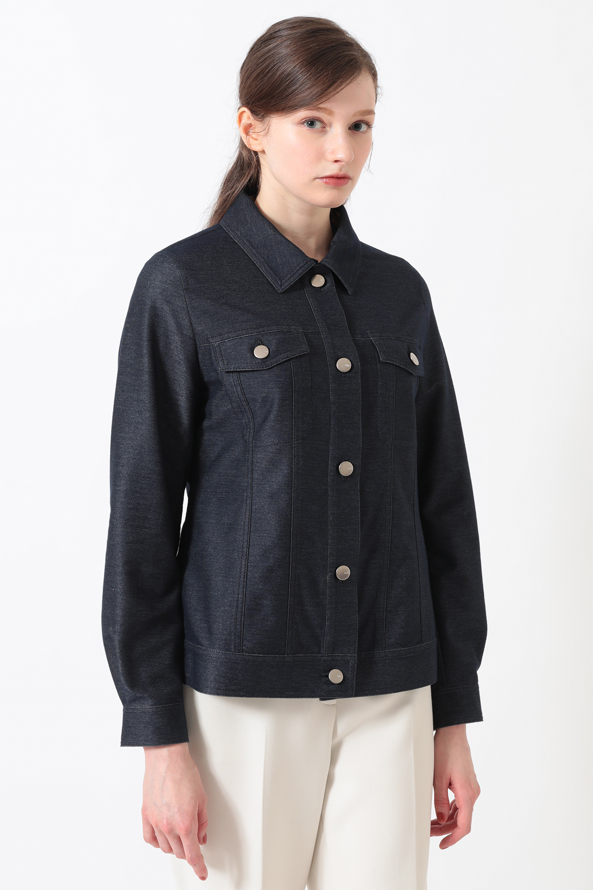 デニム調インレイカルゼ ストレッチブルゾンA62F321912