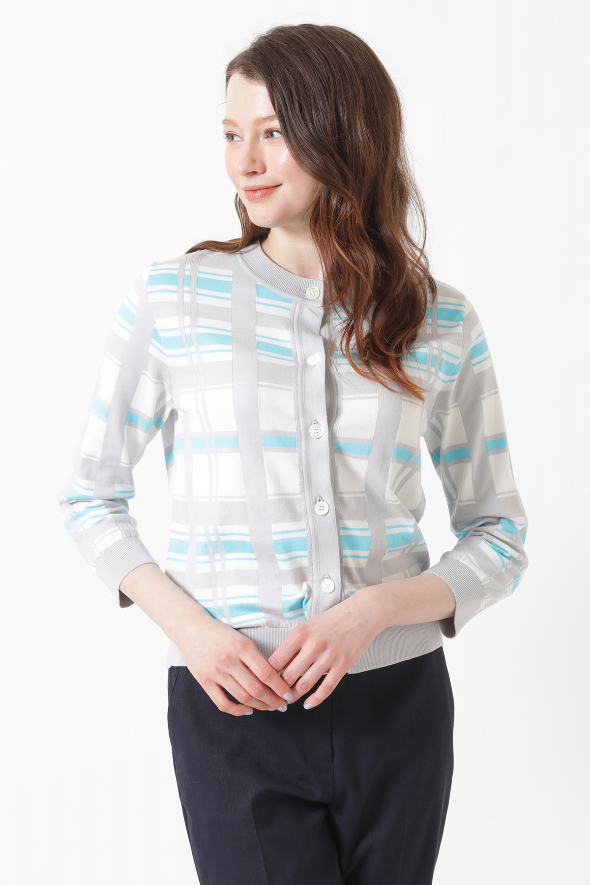 50周年を記念したアニバーサリーチェックをインターシャで表現したカーディガン。コンパクトなサイジングで可愛らしい印象に仕上げています。ボタンを留めてプルオーバー風にも着られ、同素材のインナーと合わせたアンサンブルがおすすめです。
