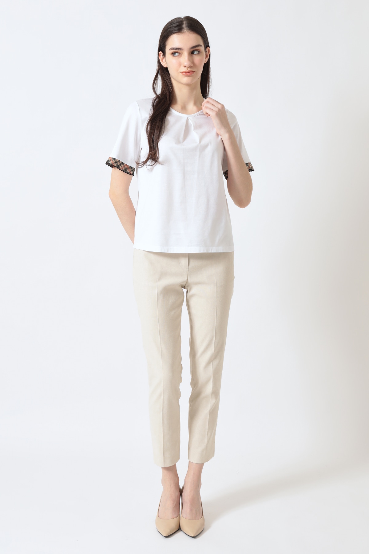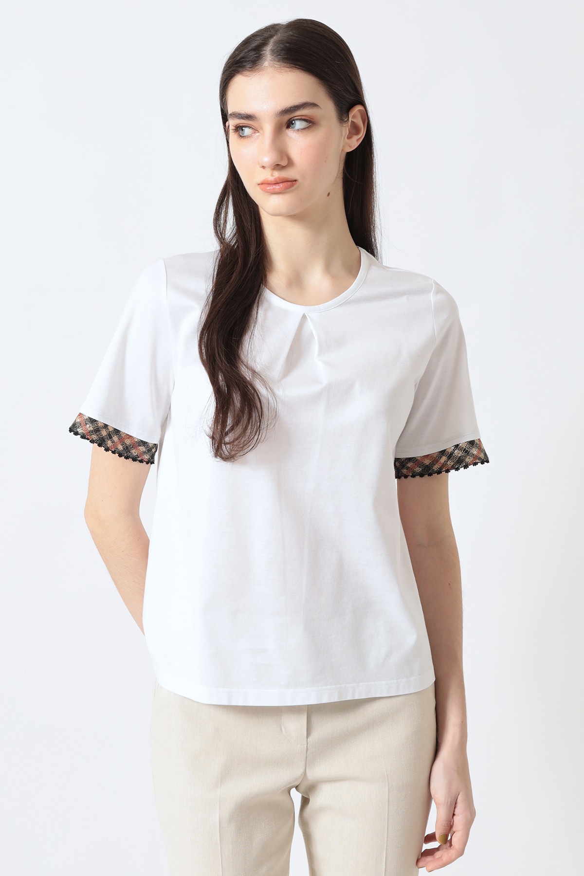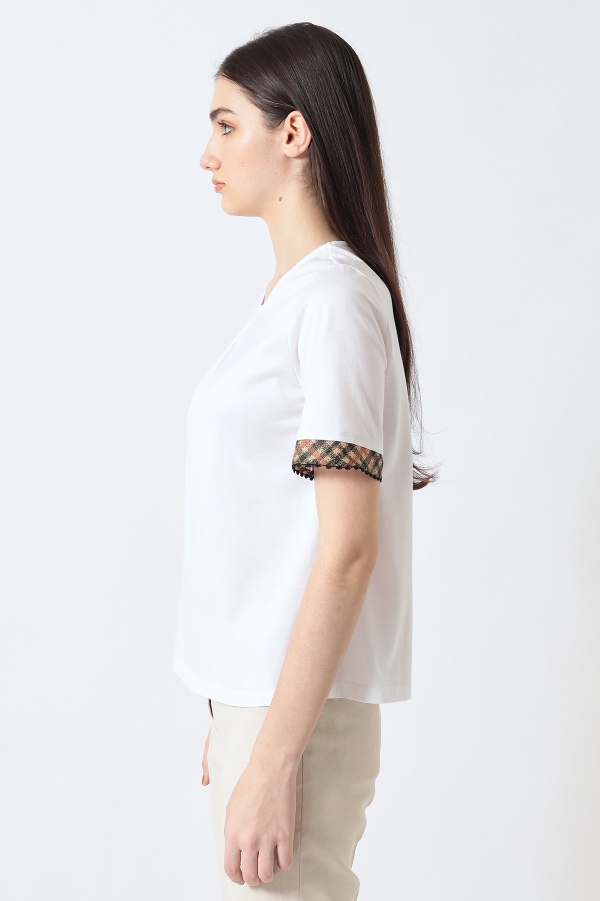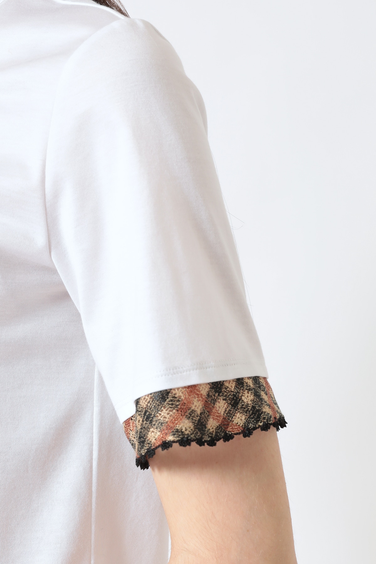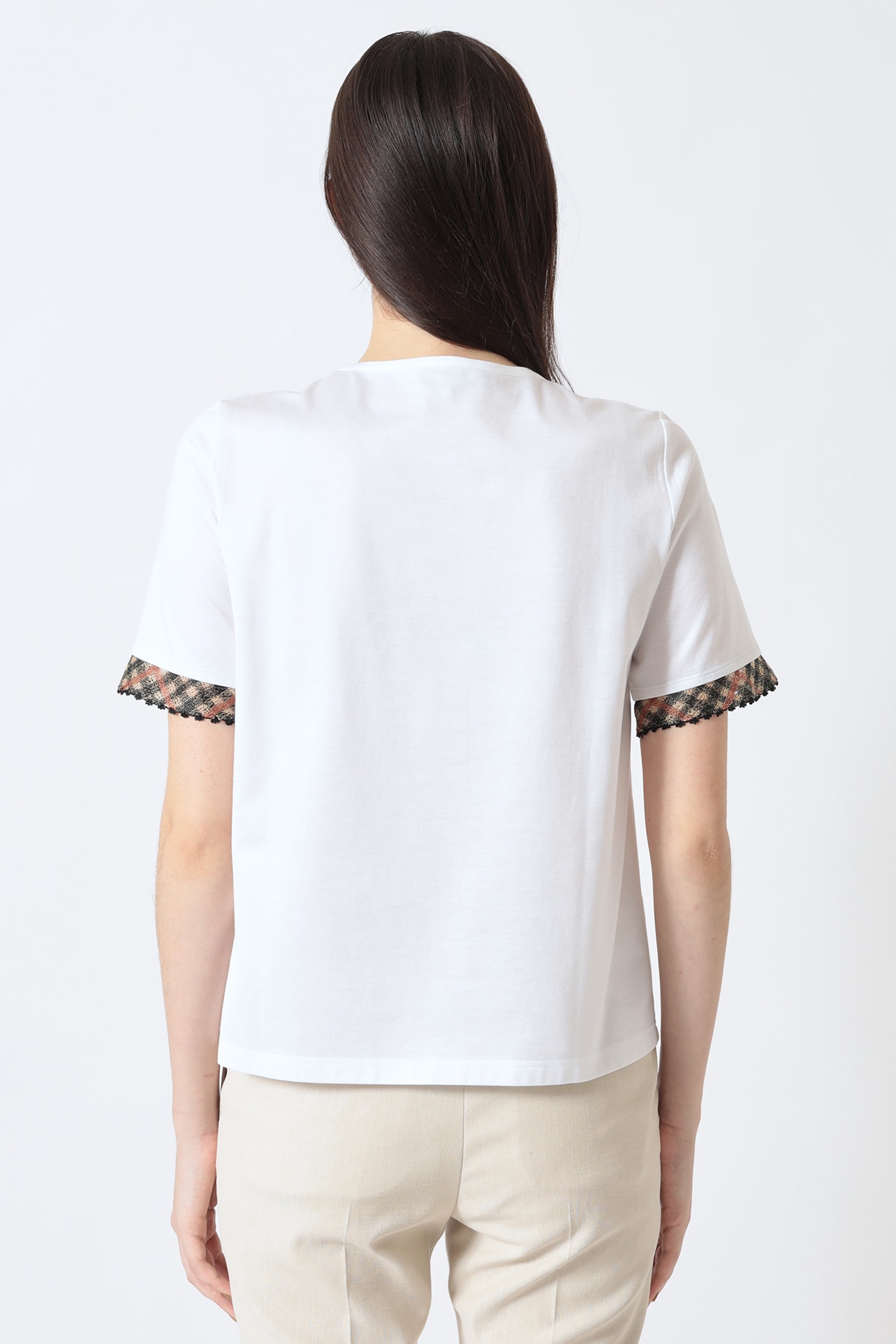 ギザコットン 袖口ハウスチェック刺繍カットソーA62F378702