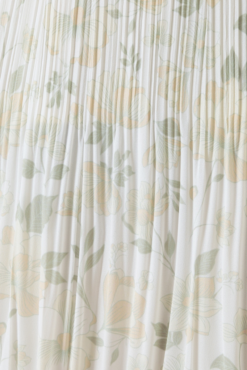 梨地ジョーゼットが描く、優雅に揺れるAラインのフローラルプリーツ
