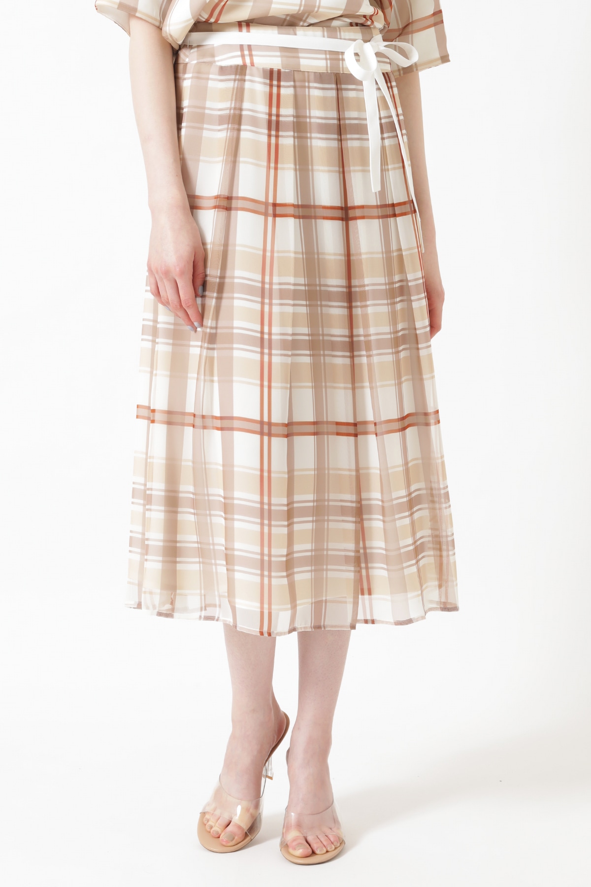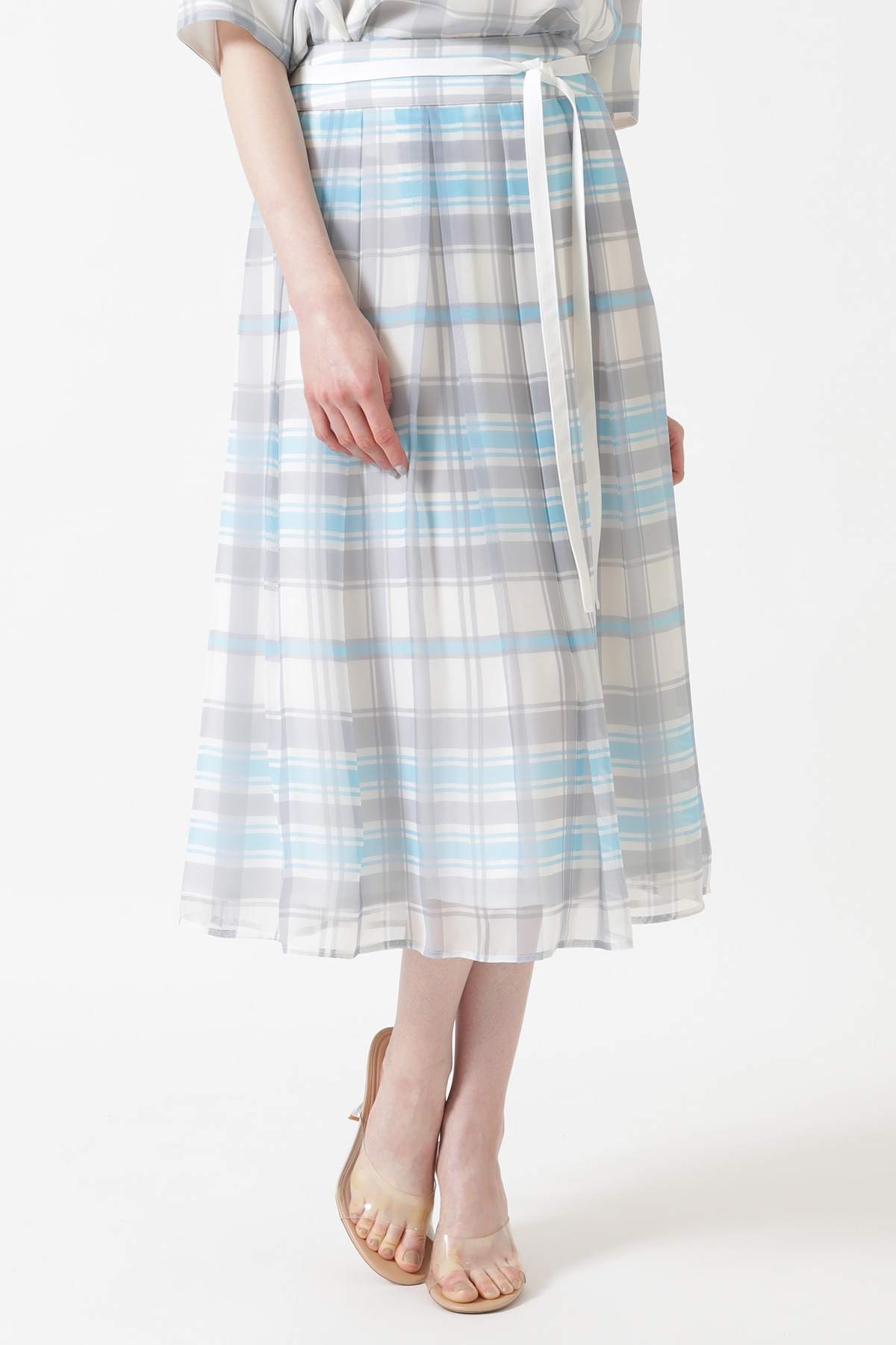 50th アニバーサリーチェック シフォン レイヤードスカートA62F381352