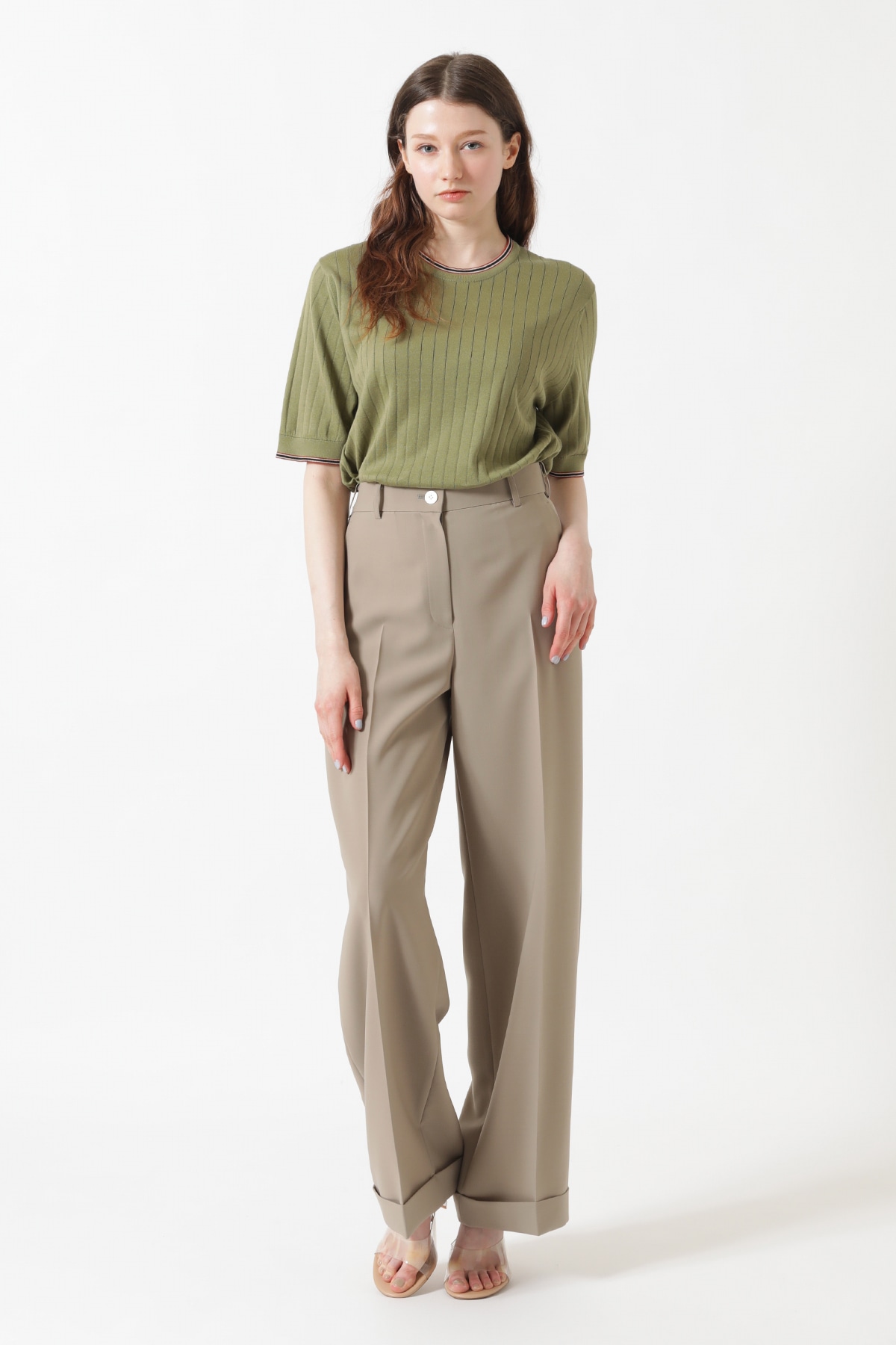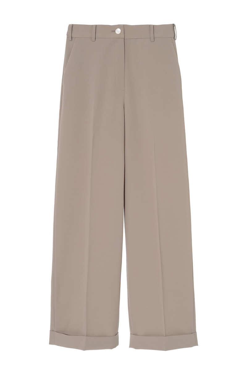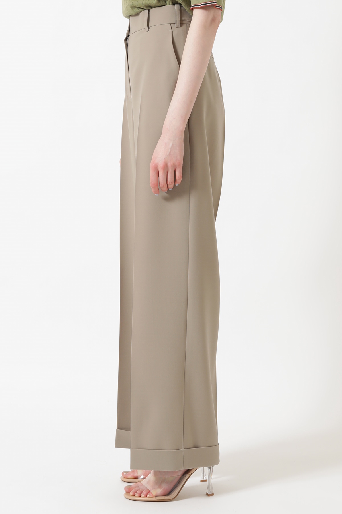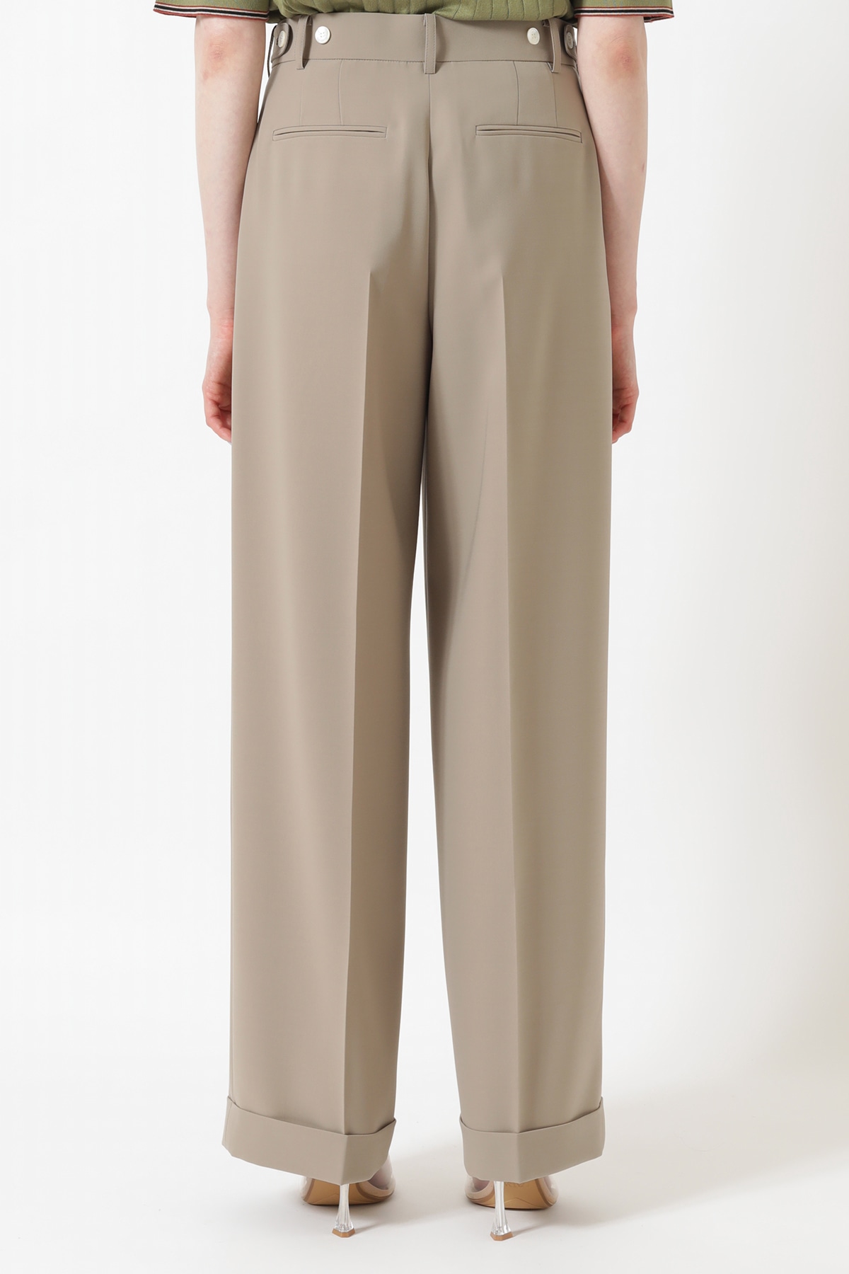 ロンドンラインより、ウエスト部分にDAKSのアイコン的なデザインを施した、洗練されたワイドストレートパンツです。すっきりとした縦のラインを強調するシルエットで、ソフトなマニッシュスタイルを表現。仕上げに追い込み加工を施すことで密度を高めた素材は、適度なハリ感と快適な2WAYストレッチ性を両立させています。穿き心地の良さとシャープな見た目を兼ね備えており、日常のコーディネートをモダンかつエレガントに引き締めてくれる、大人のための定番パンツです。