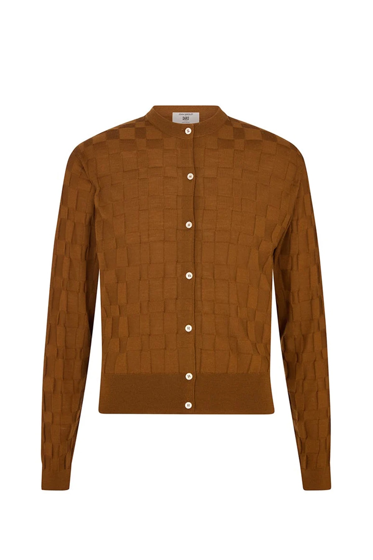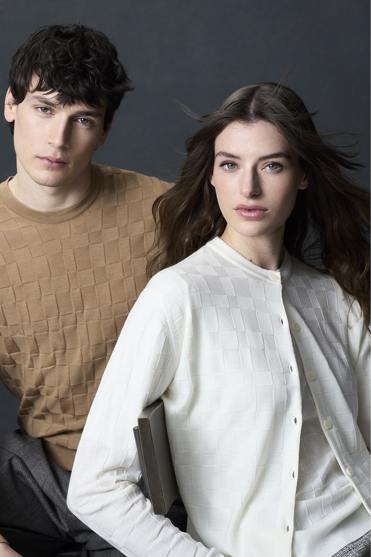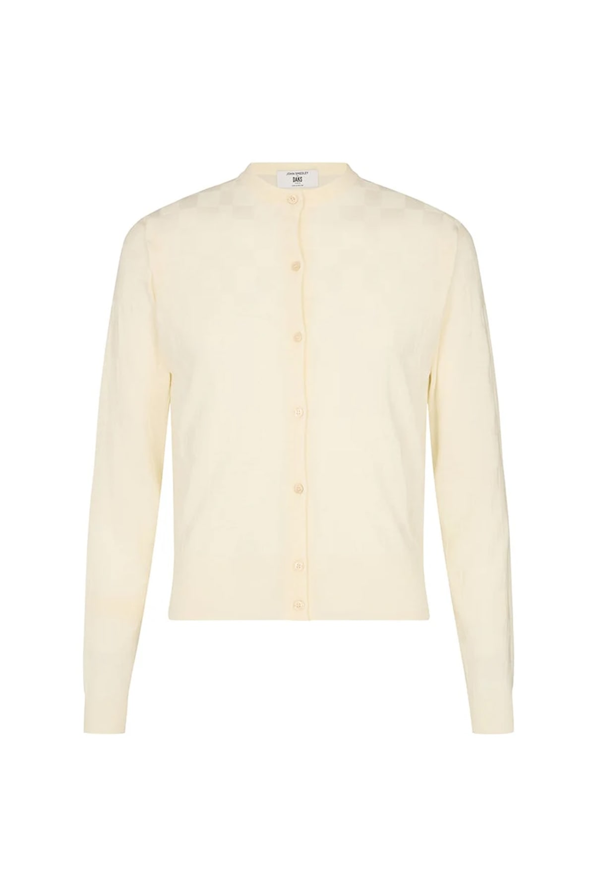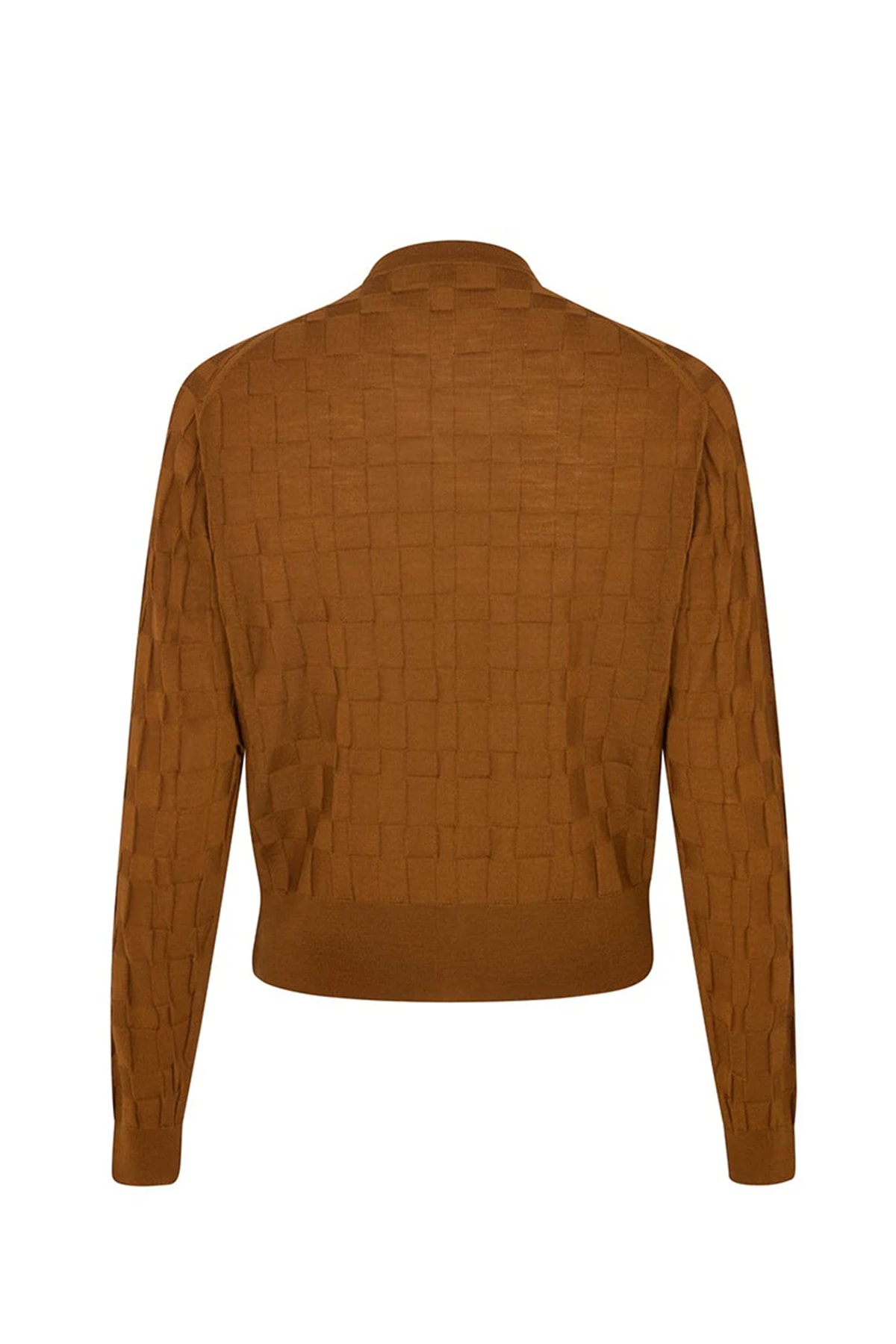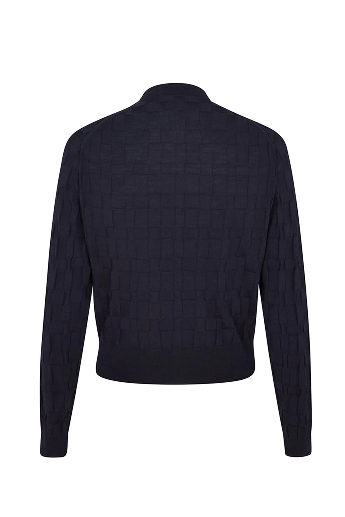 ジョン・スメドレーがDAKSのために限定開発した“シャドーハウスチェック”を編み込んだ30ゲージクルーネックカーディガン。薄手で滑らかな肌触りと上品なチェック柄が、ジャケットやコートのインとしても映える一着です。
