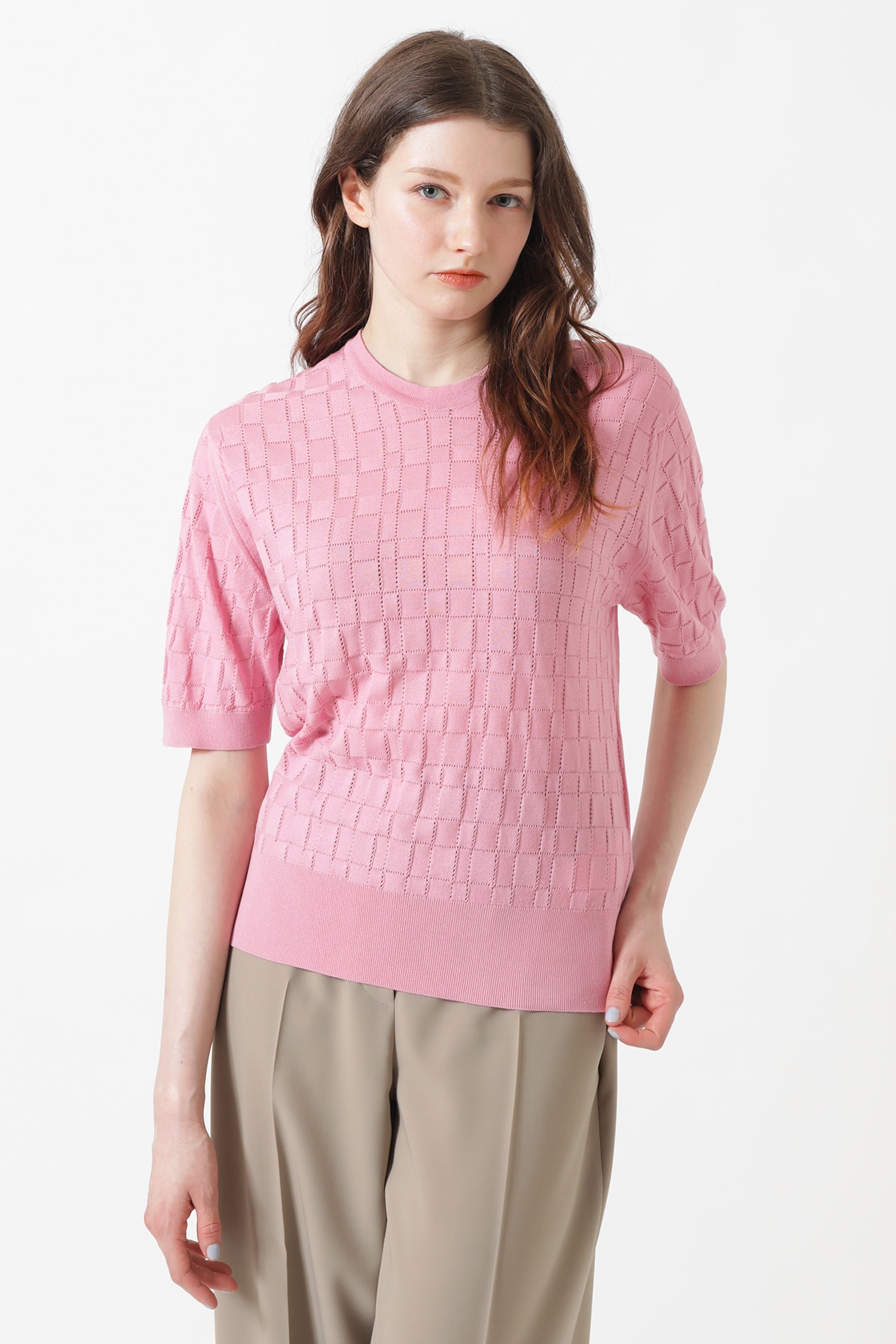 JOHN SMEDLEY FOR DAKSコットン アイレットチェック 半袖ニットB62F360001