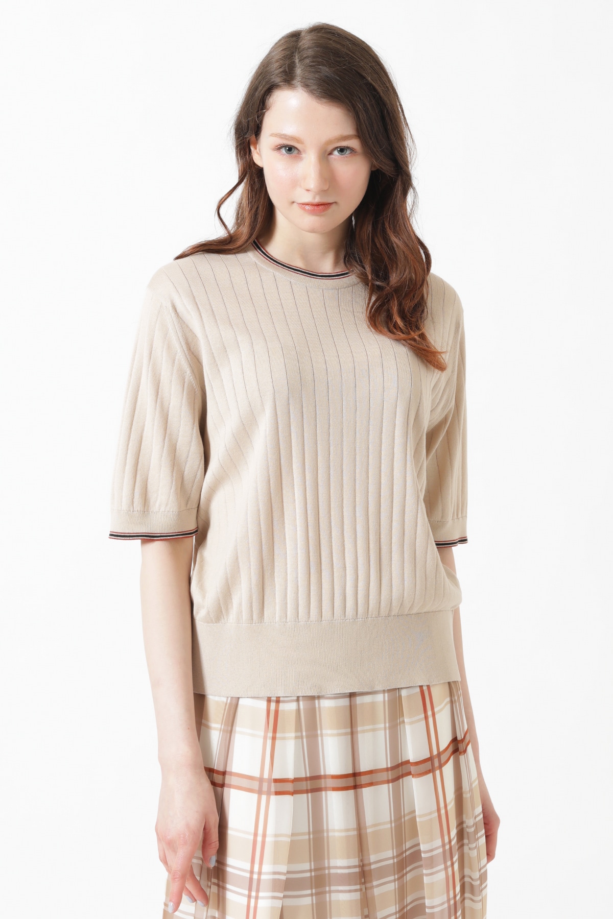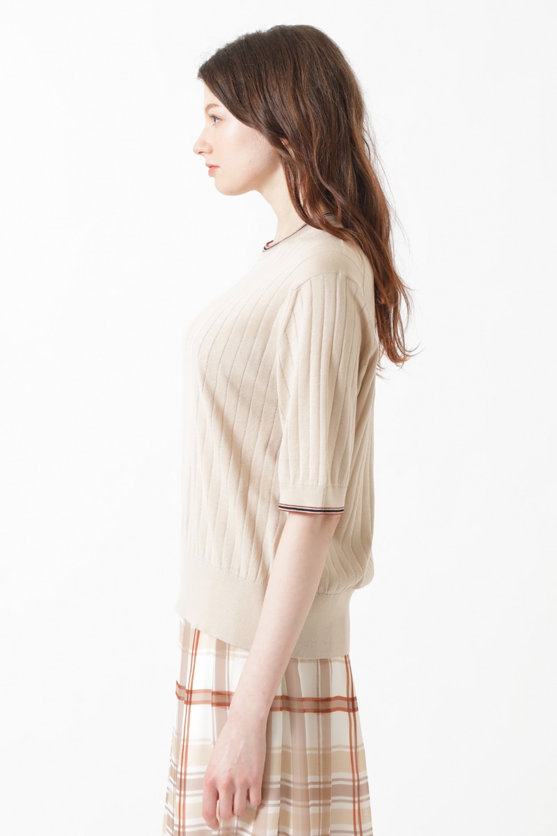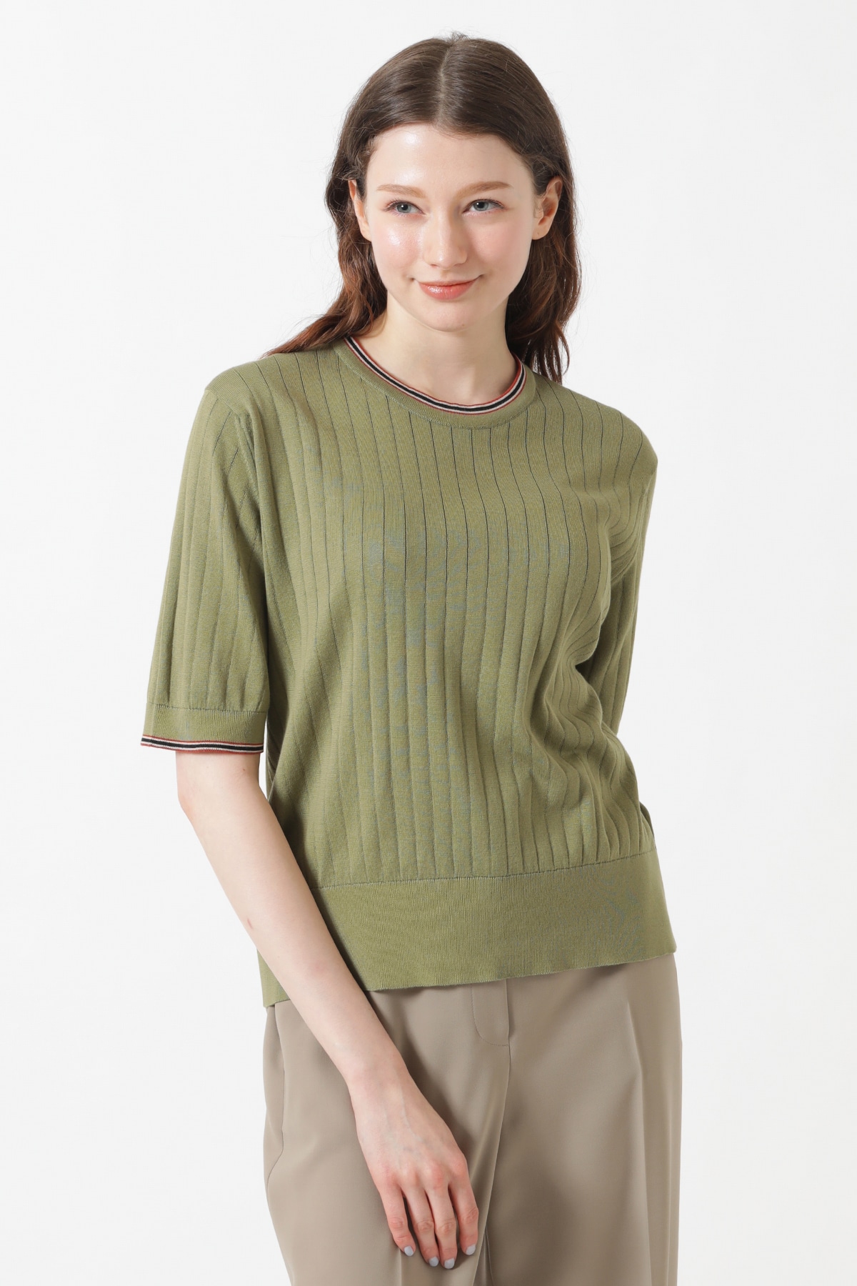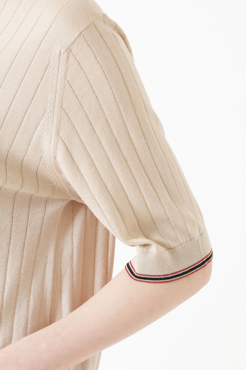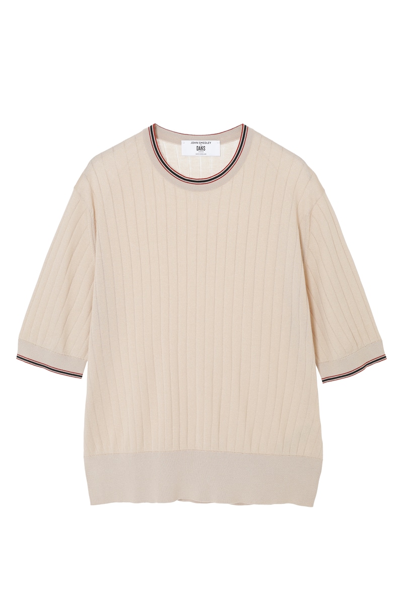 JOHN SMEDLEY FOR DAKSコットン 配色ライン 半袖リブニットB62F360004