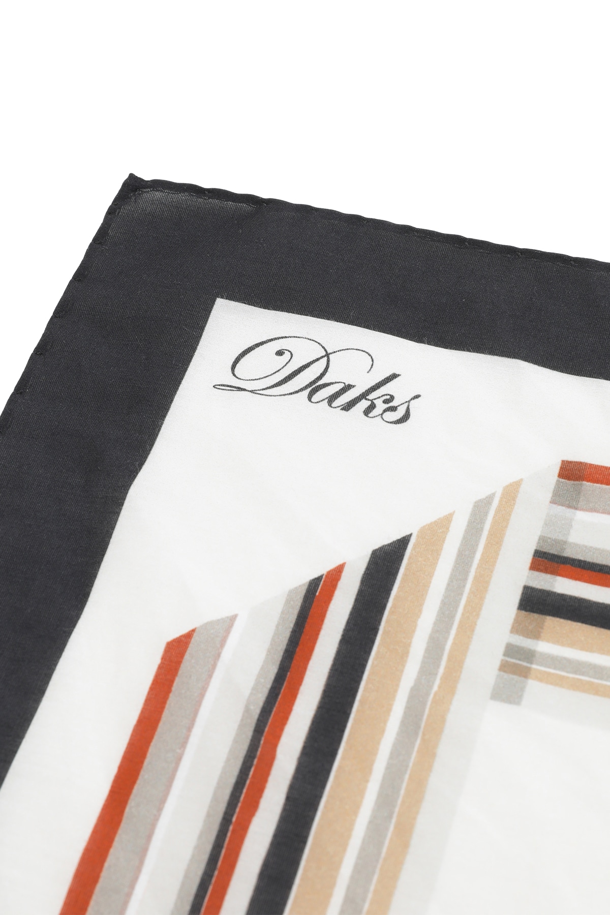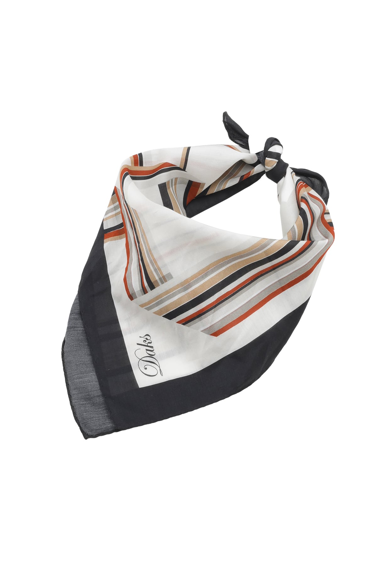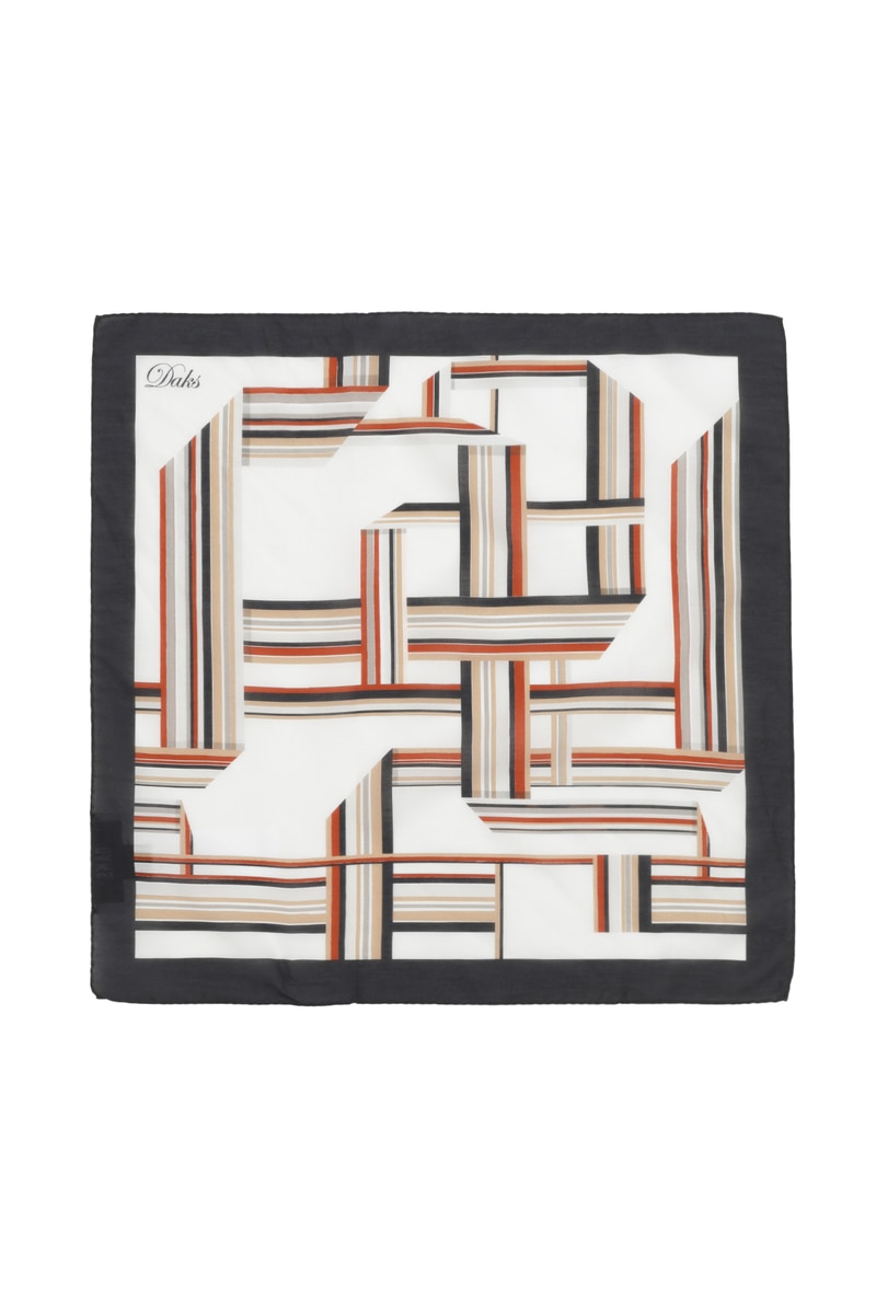 イタリア製の上質なコットンシルク素材を使用したスクエアスカーフです。立体的で幾何学的なパターンをオフホワイトのベース上に描いています。シルクの滑らかさとコットンの肌触りの良さを兼ね備え、首元にコンパクトに巻くだけで、都会的で洗練された装いへと導きます。DAKSの伝統とモダンが融合したこの一枚は、ギフトとしても喜ばれる逸品です。角に配されたロゴが品格を添えます。