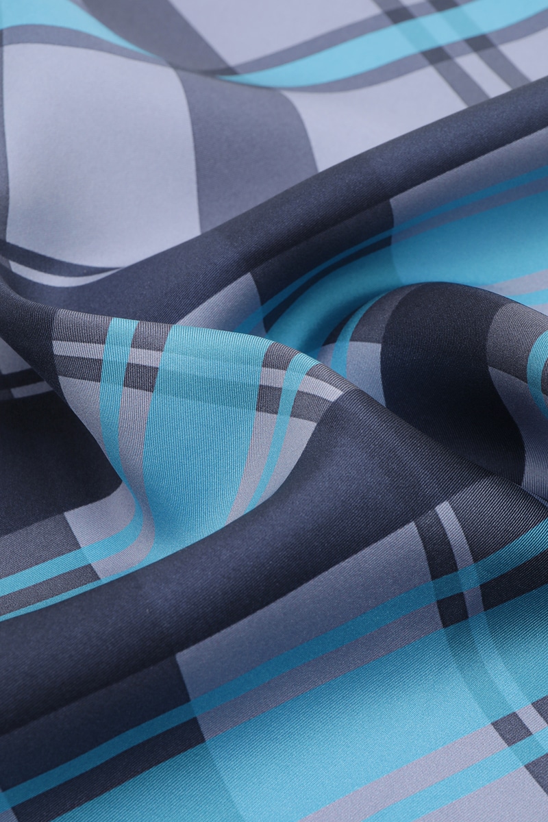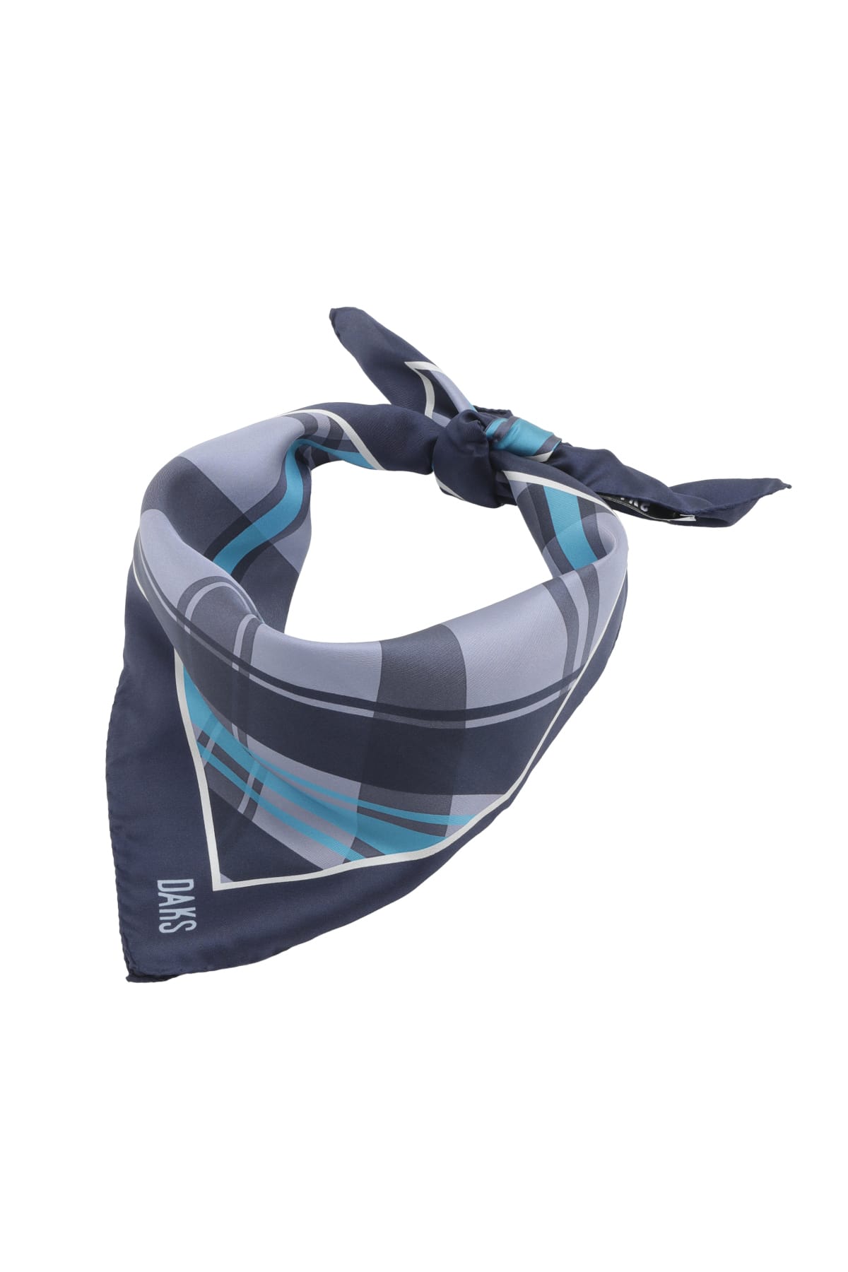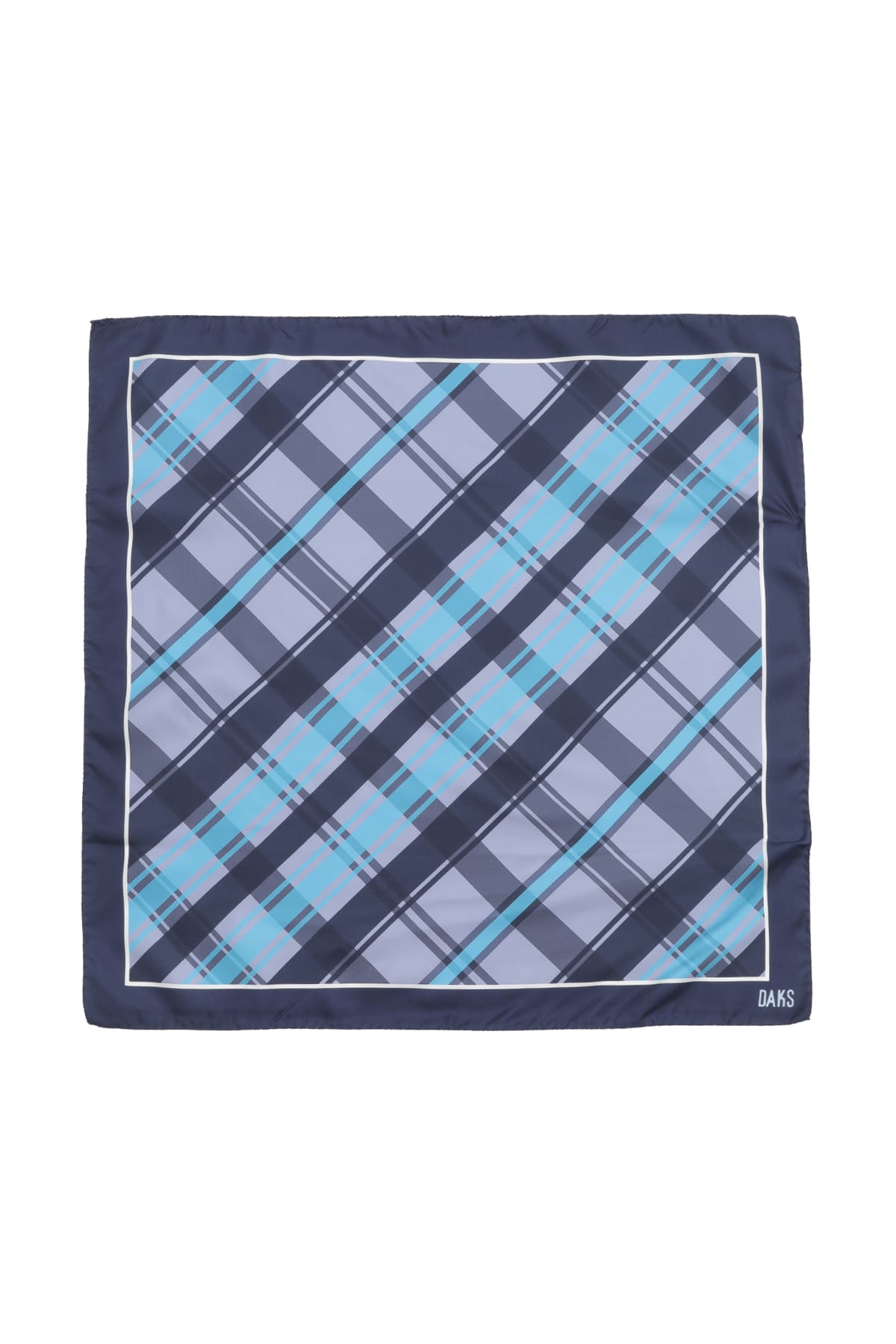 シルク 50thブルーチェックプリント スカーフB62F721030