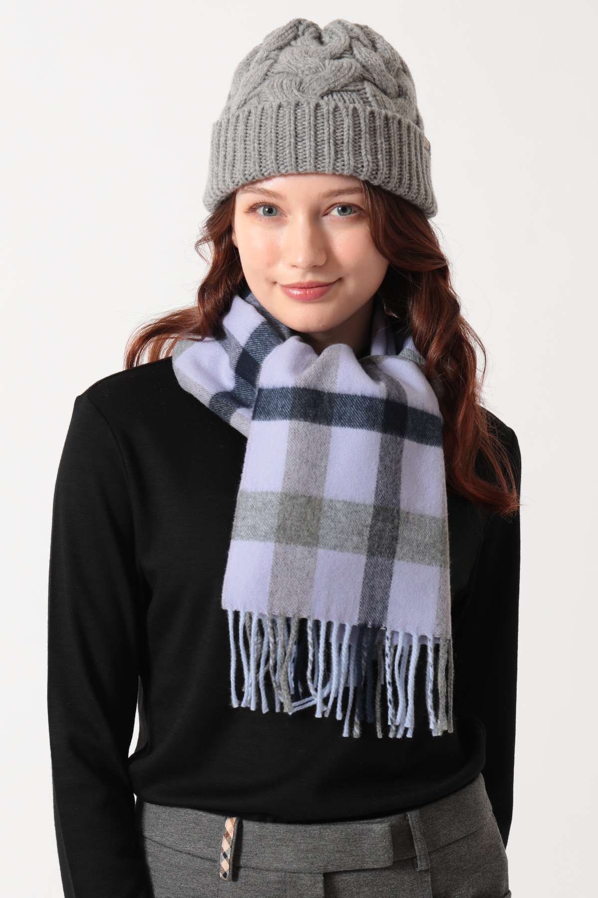 上質なウール100%の糸で丁寧に編み上げた、暖かなニットワッチです。頭部はざっくりとしたケーブル編みで立体感と温かみを演出し、被り口は伸縮性に優れたリブ編みで締め付けすぎない快適なフィット感を実現しました。左サイドの裾には、DAKSの象徴であるハウスチェック柄のピスネームをさりげなくあしらい、カジュアルな中にもブランドらしい上品さをプラスしています。防寒対策としてはもちろん、秋冬のコーディネートのアクセントとして活躍するアイテムです。