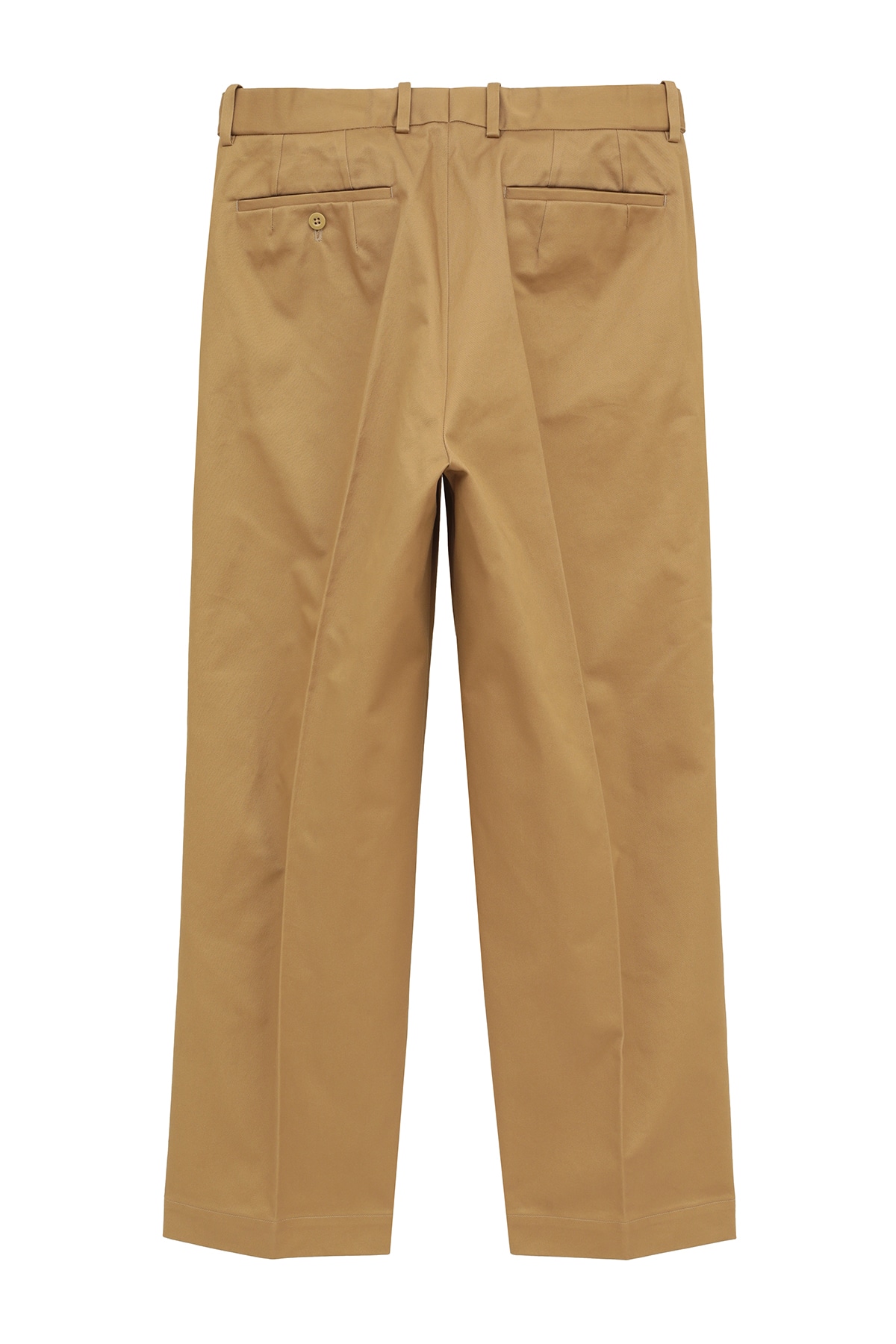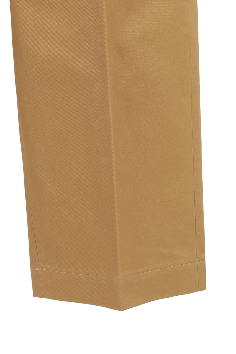 使用しているサンホアキンコットンは、しなやかさと程よいコシが特徴。裾へ向かって美しく落ちる立体的なラインが、快適な履き心地と端正な姿を両立させます。クラシックな意匠を現代的に楽しむ、長く愛用できる名品です。