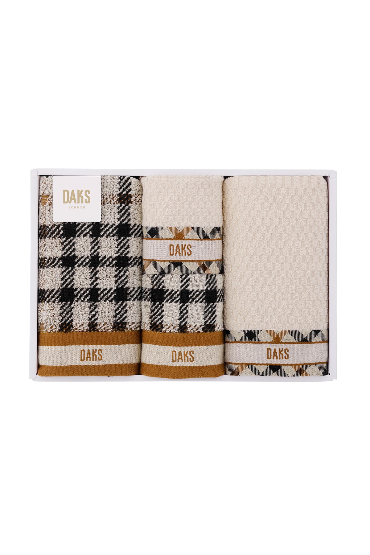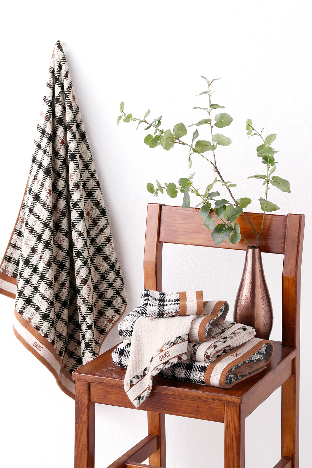 DAKSオリジナルのハウスチェック柄と無地のタオルの組み合わせは上品かつ高級感があり、