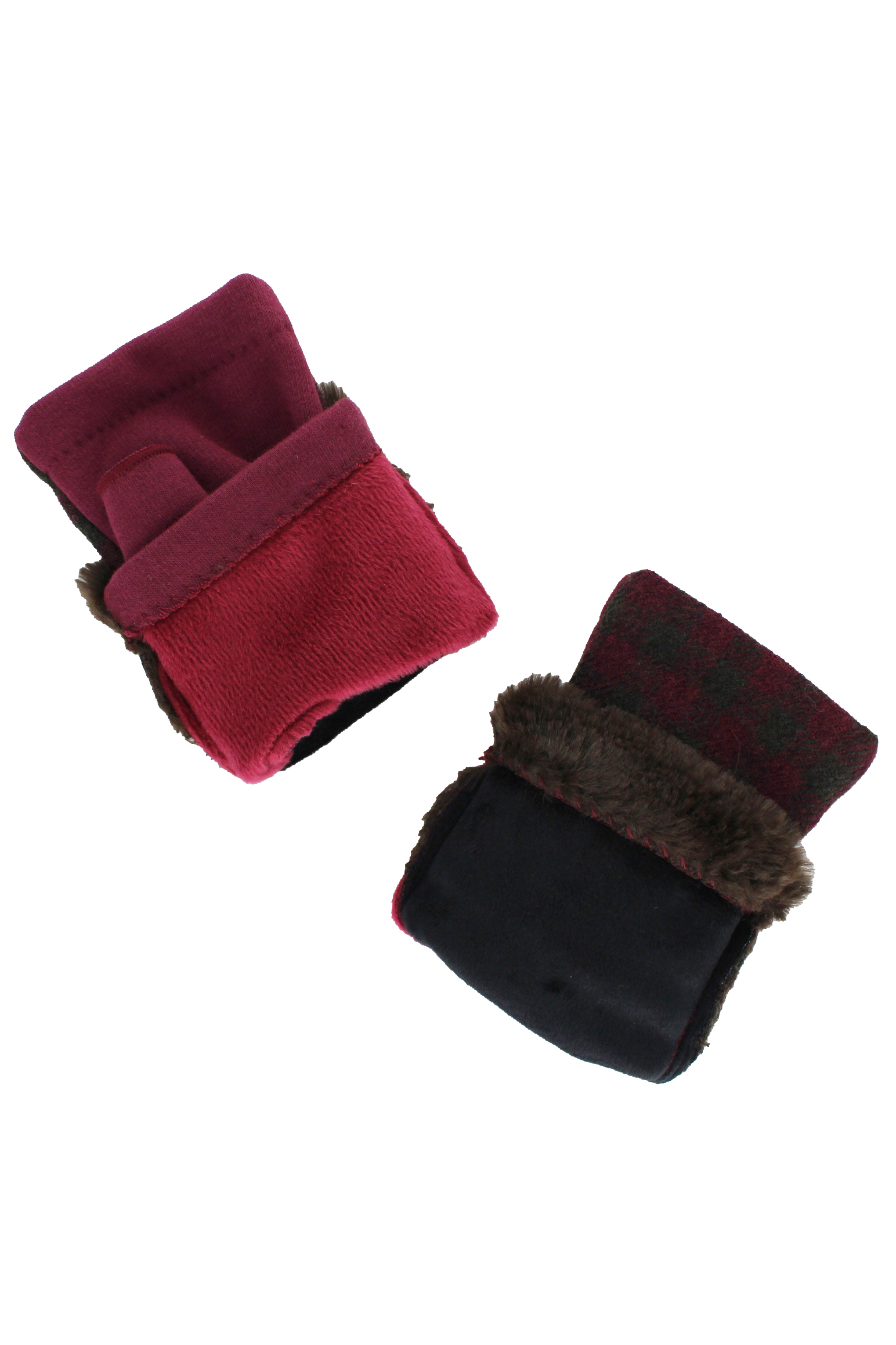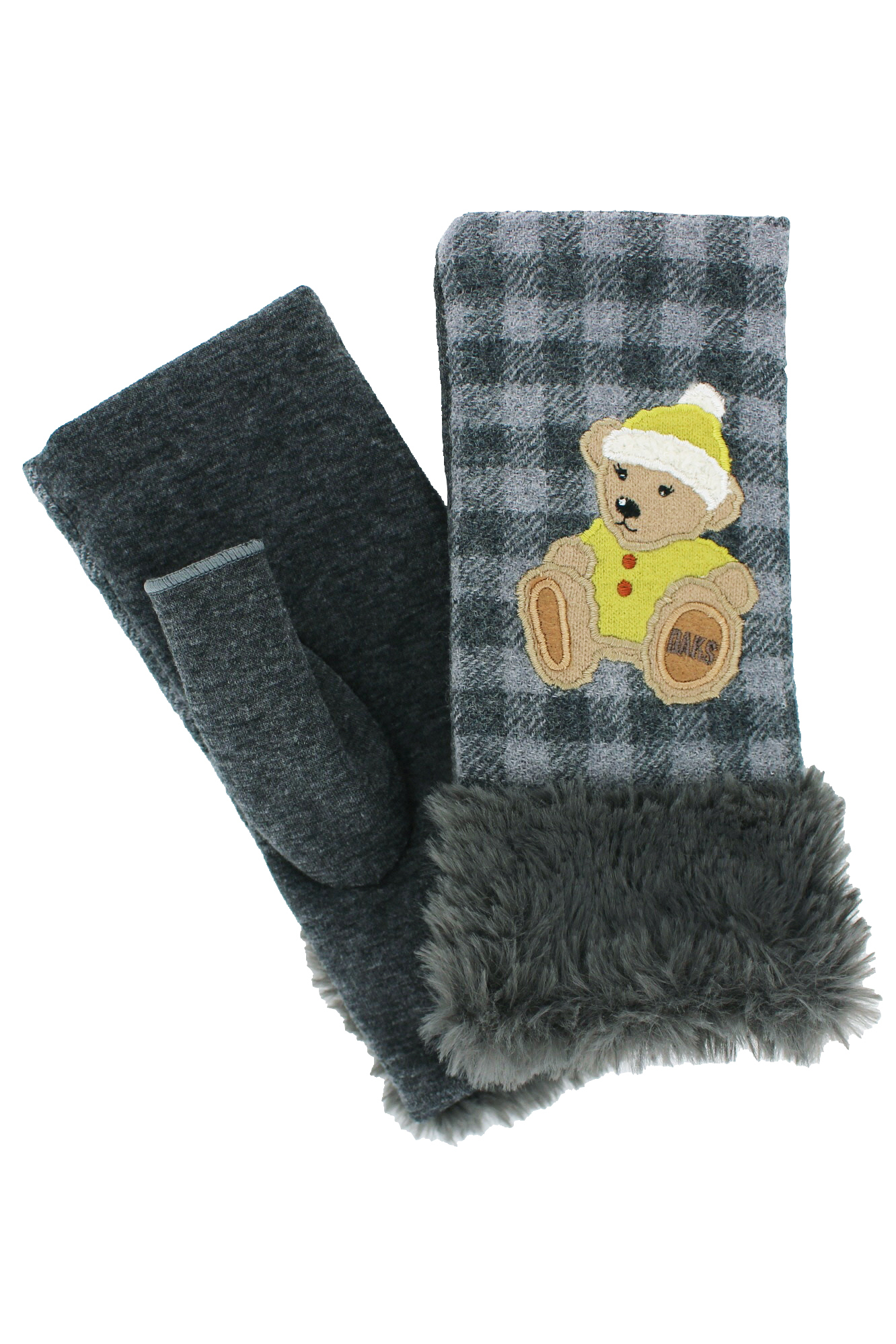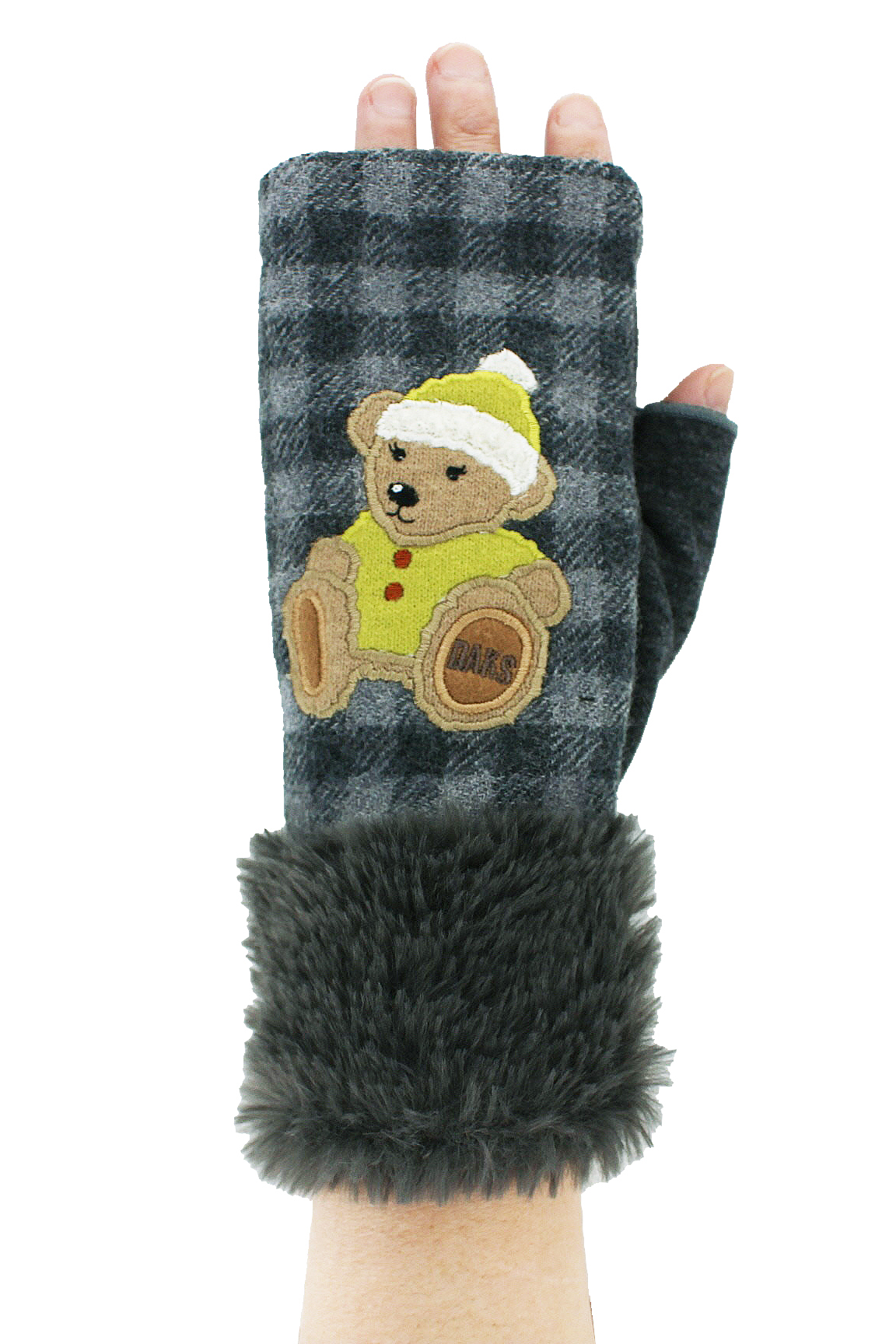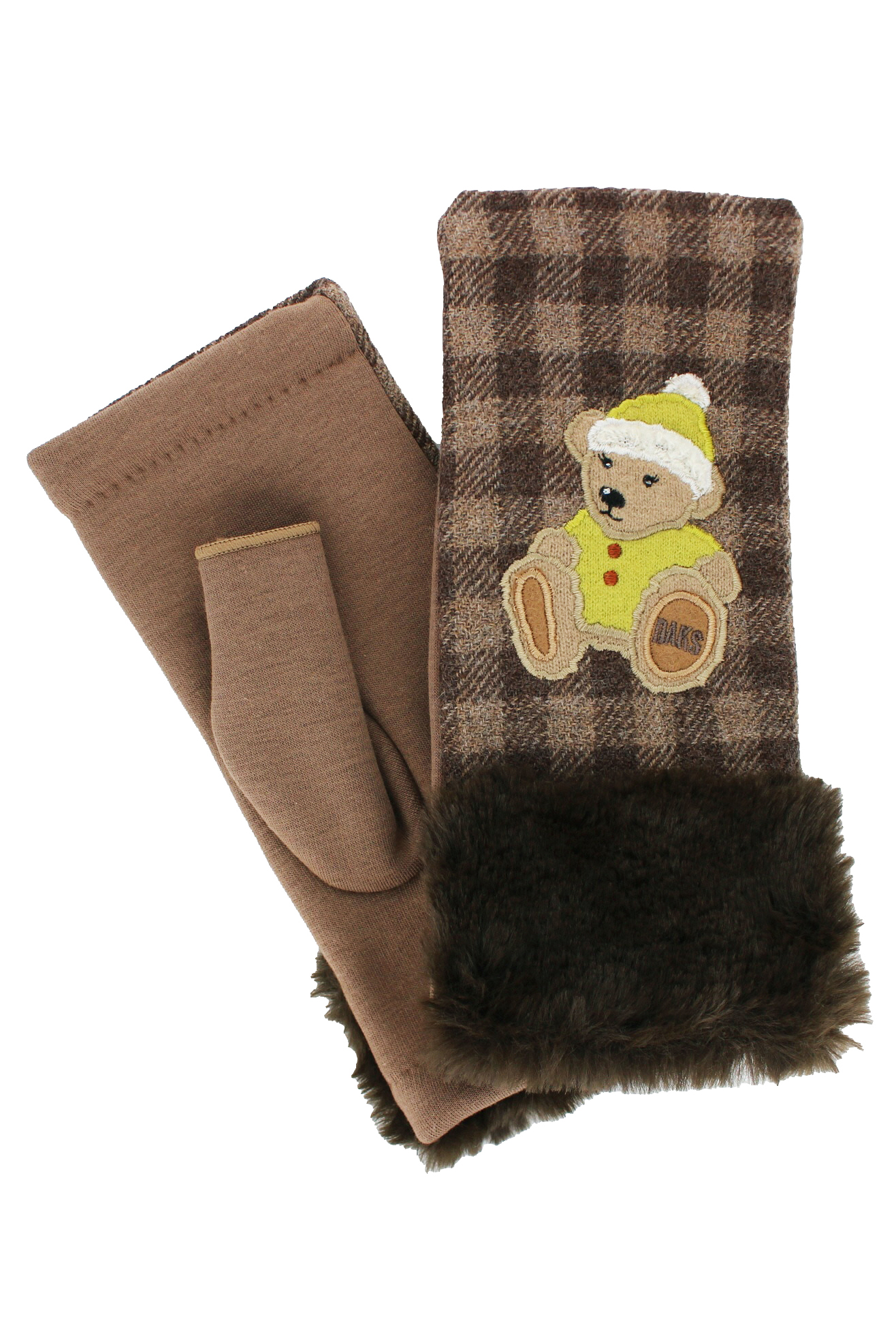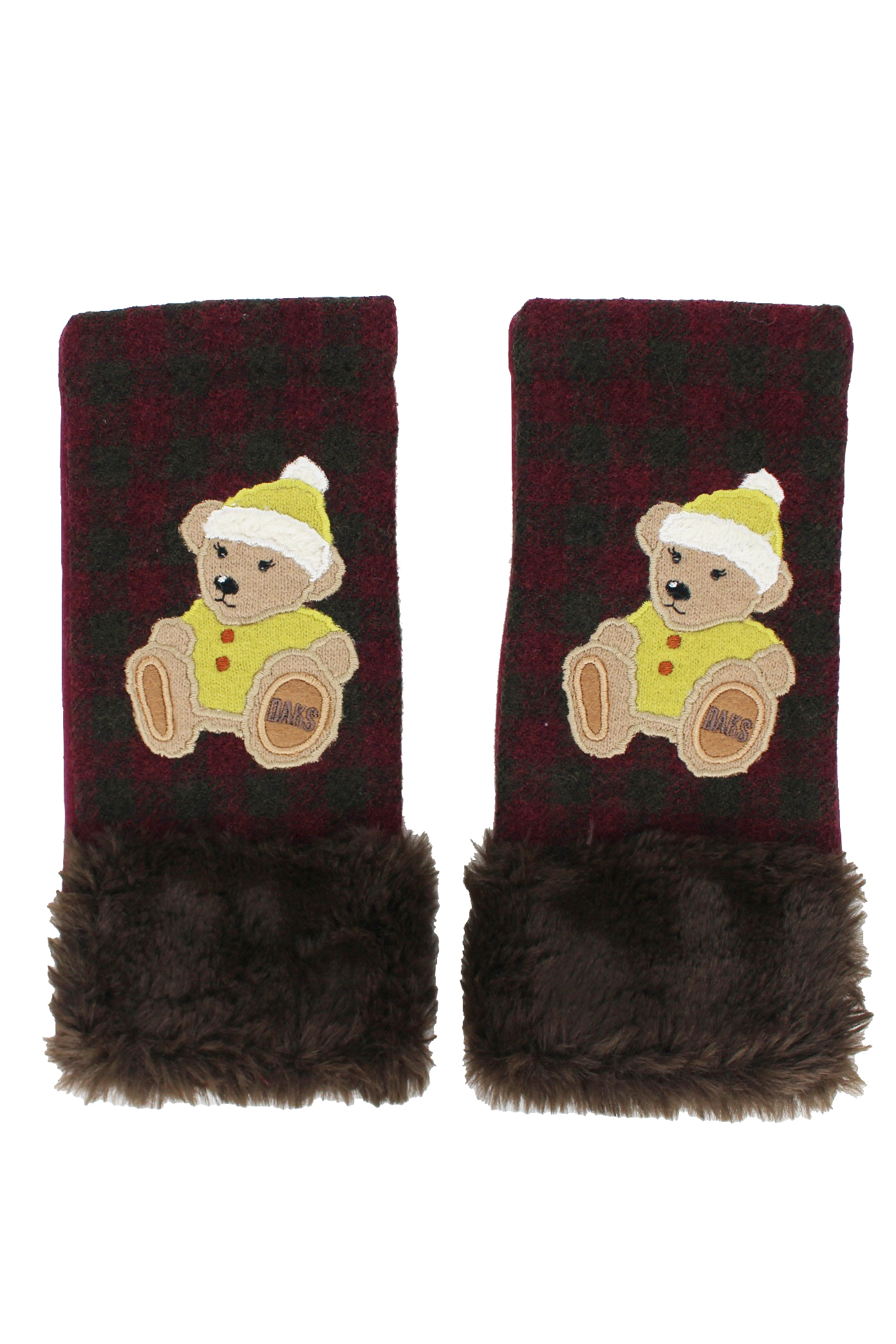 アップリケのダックスベアが愛らしい、スマホ対応手袋です。指先フリータイプなので、直接スマートフォンやタッチパネルに触れられるため、スワイプやクリック、指紋認証も機能性抜群です。甲側部分は二重構造でふんわりと、ふわふわのファーカフスは手首まで、しっかりと心地よく手を温めてくれます。チェックとベアがクリスマスムードを盛り上げるデザインです。