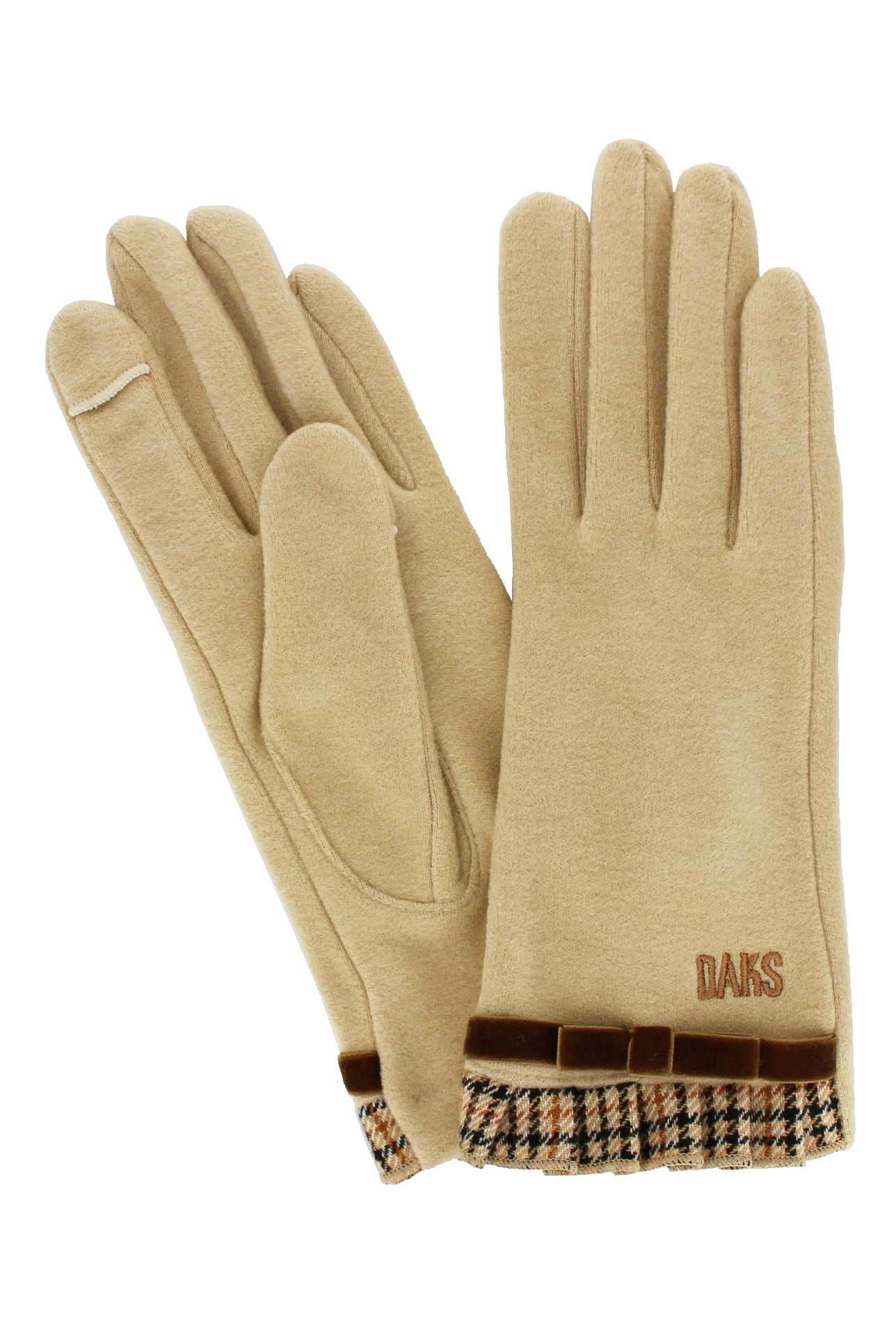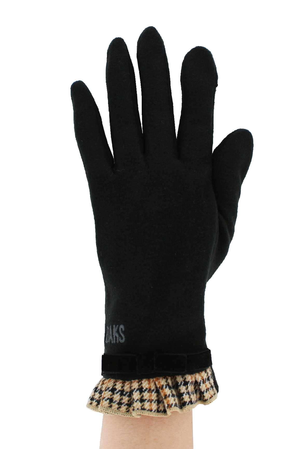 裾にチェックのさりげないフリルとベルベットのリボンをあしらったスマホ対応手袋です。エレガントで上品な印象でシーンを問わずお使い頂けます。必要に応じて、指先だけを簡単に出すことが出来るスタイルのスマホ対応手袋で、直接スマホに触れられるため、スワイプやクリック、指紋認証も機能性抜群です。寒い日でも手袋を外さずにすみ、暖かいまま過ごすことが出来ます。