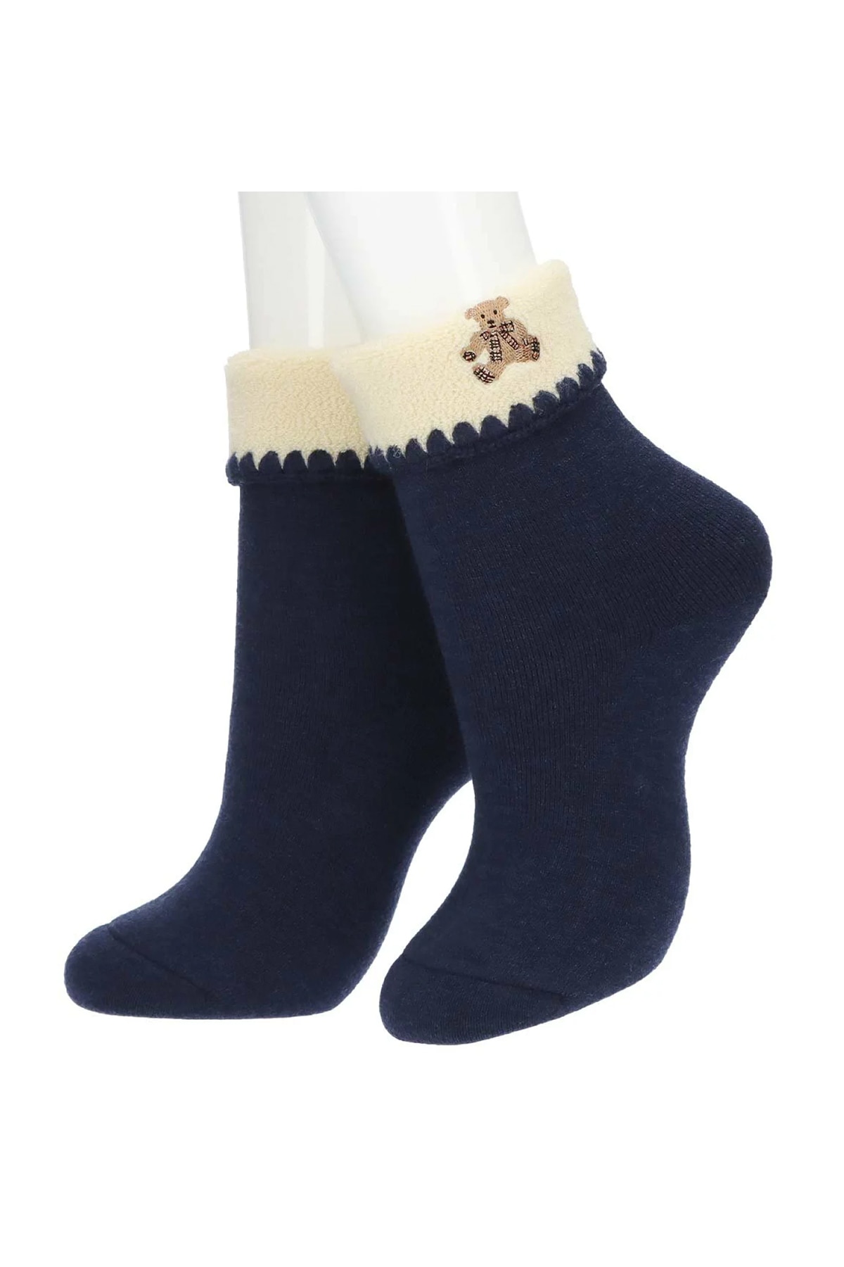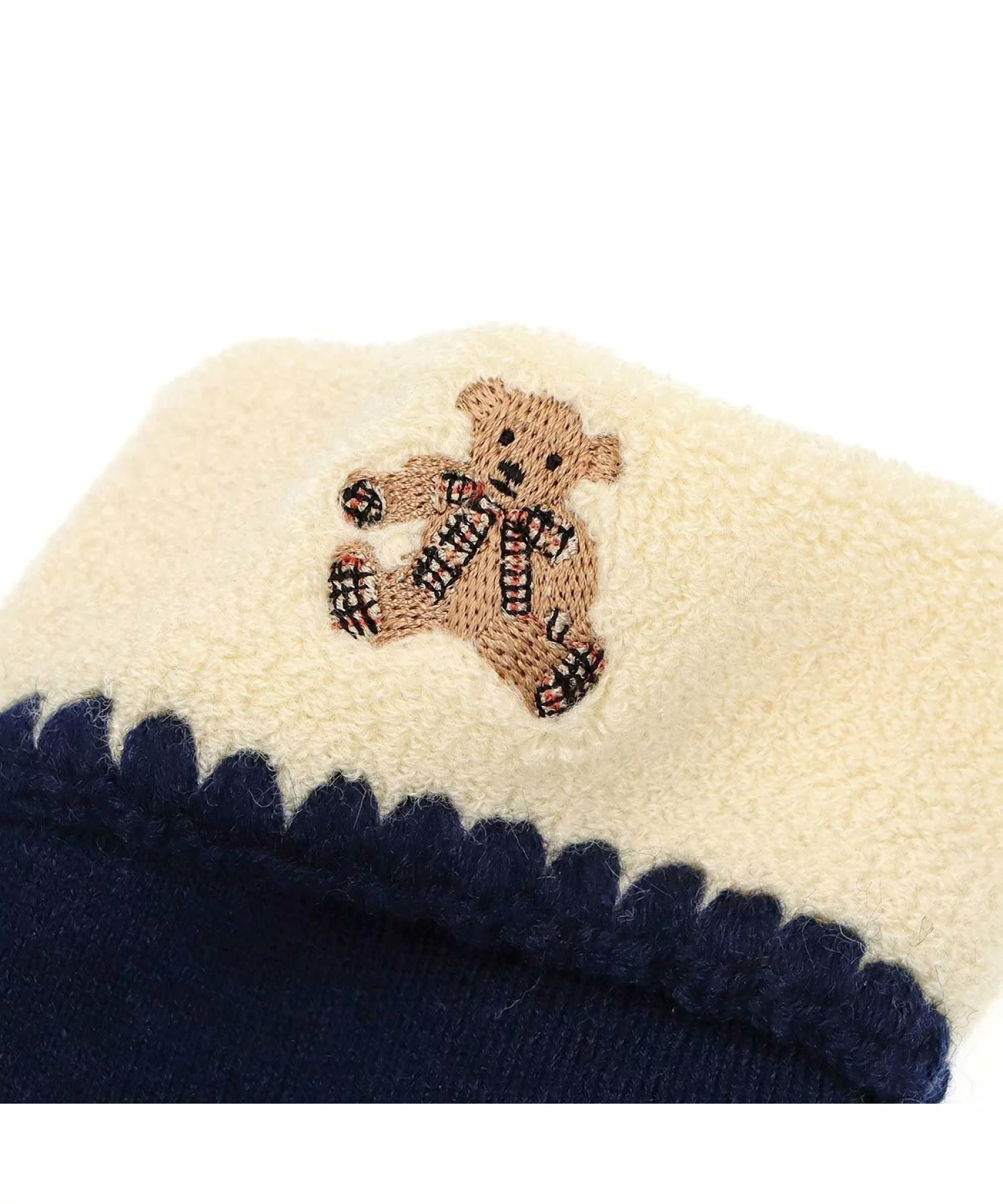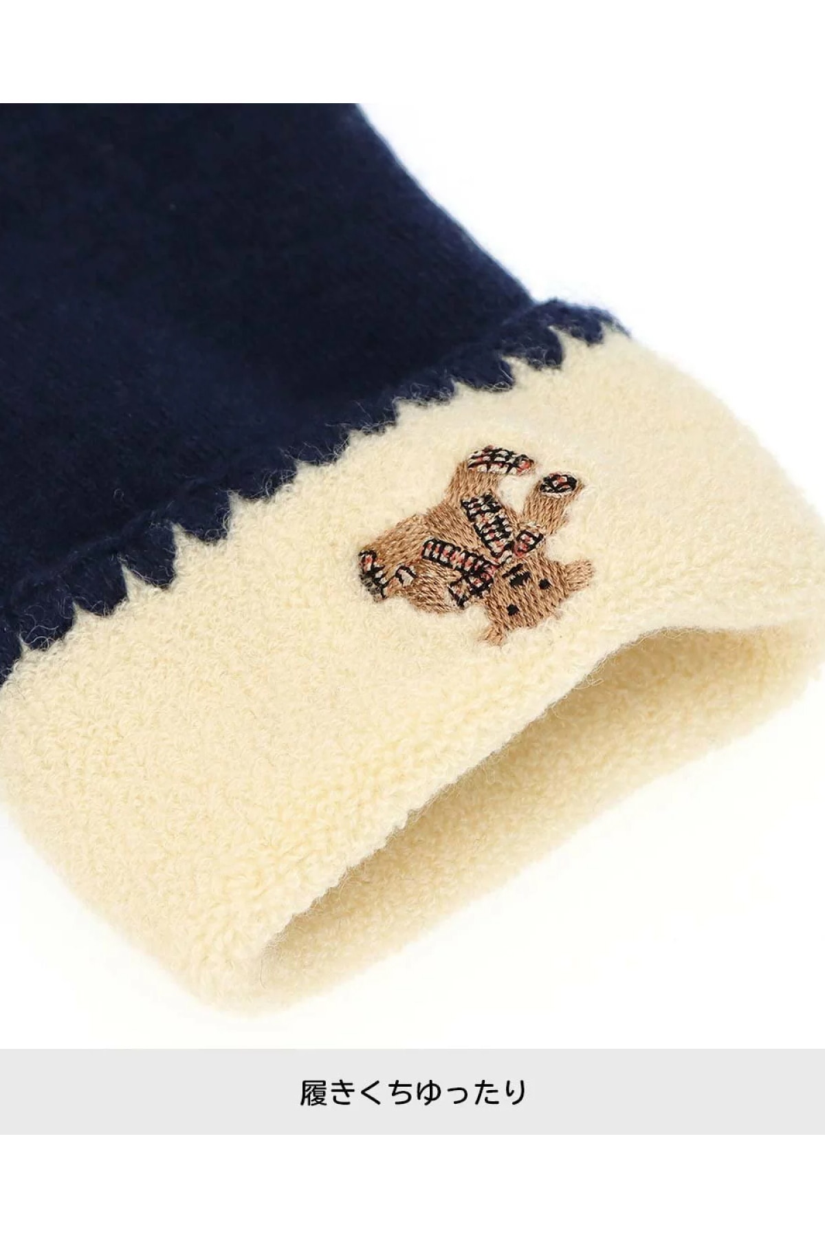 総パイル 折り返し ルームソックス(ベア刺繍・あったか素材)
