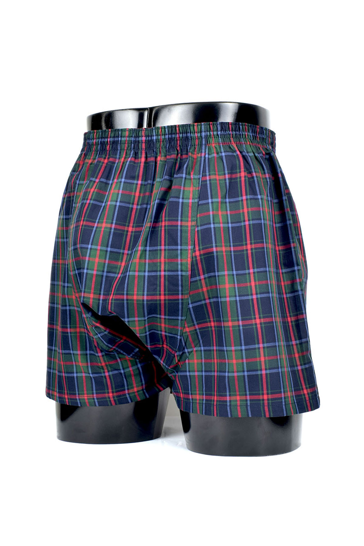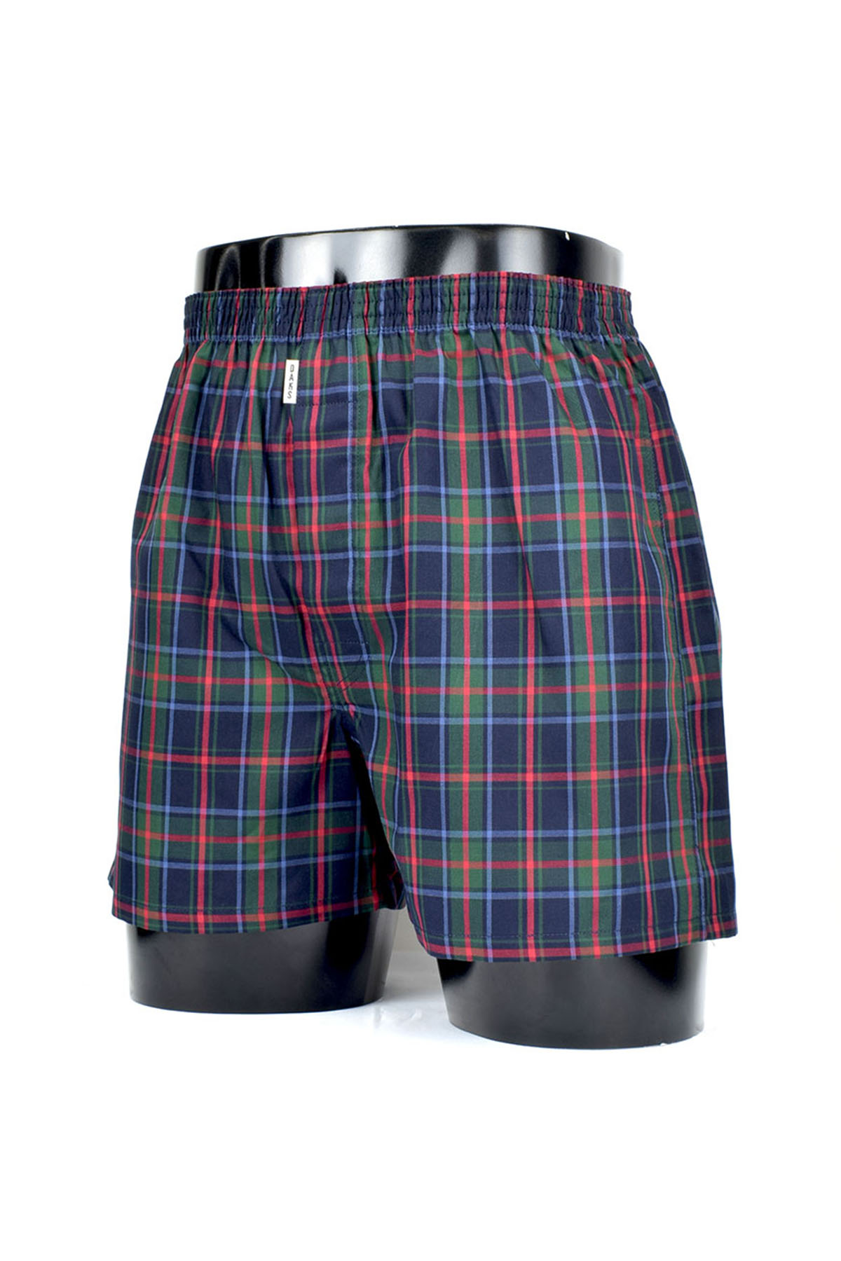後ろ身が3枚ハギで立体的でゆったりしたパターンの前開きトランクスです。力が加わる部位の縫い合わせは巻き縫い仕様で丈夫な縫製にしています。ウエスト部分は裏側貼り付けゴム仕様で、見た目もすっきりしています。