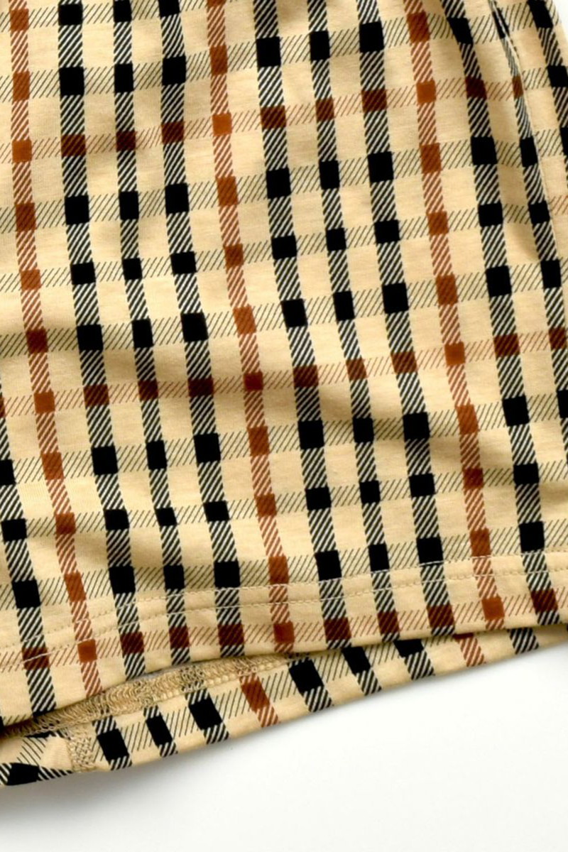 伝統的なDAKSチェック柄のニットトランクスです。ニット素材で伸縮性があり、肌触りもソフトで快適な着用感です。ウエスト部分はゴム取り替え口が付いており、長さの調節やゴムの取り替えが可能です。