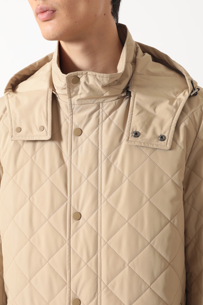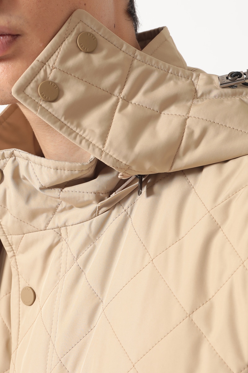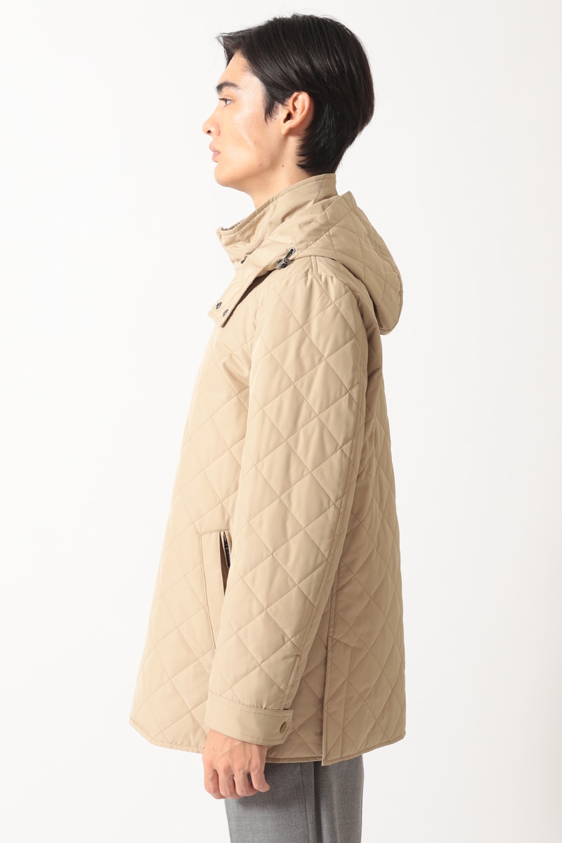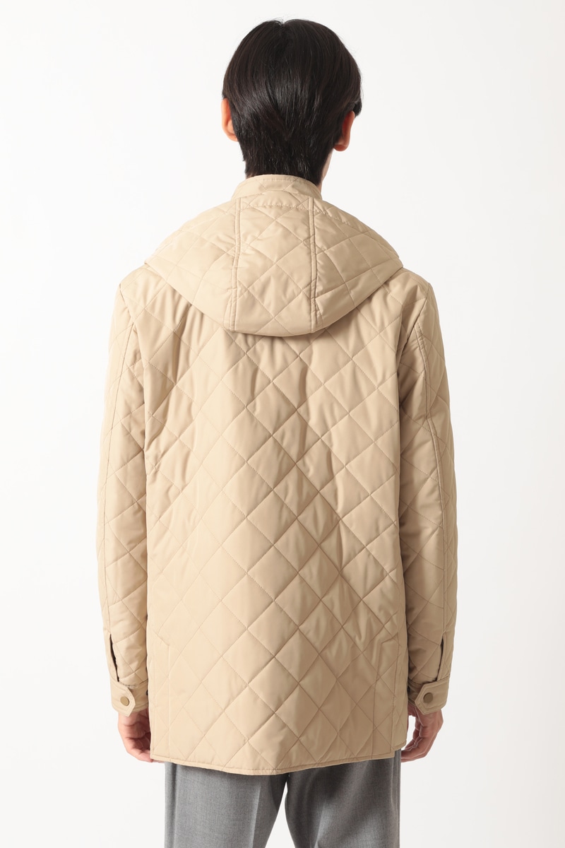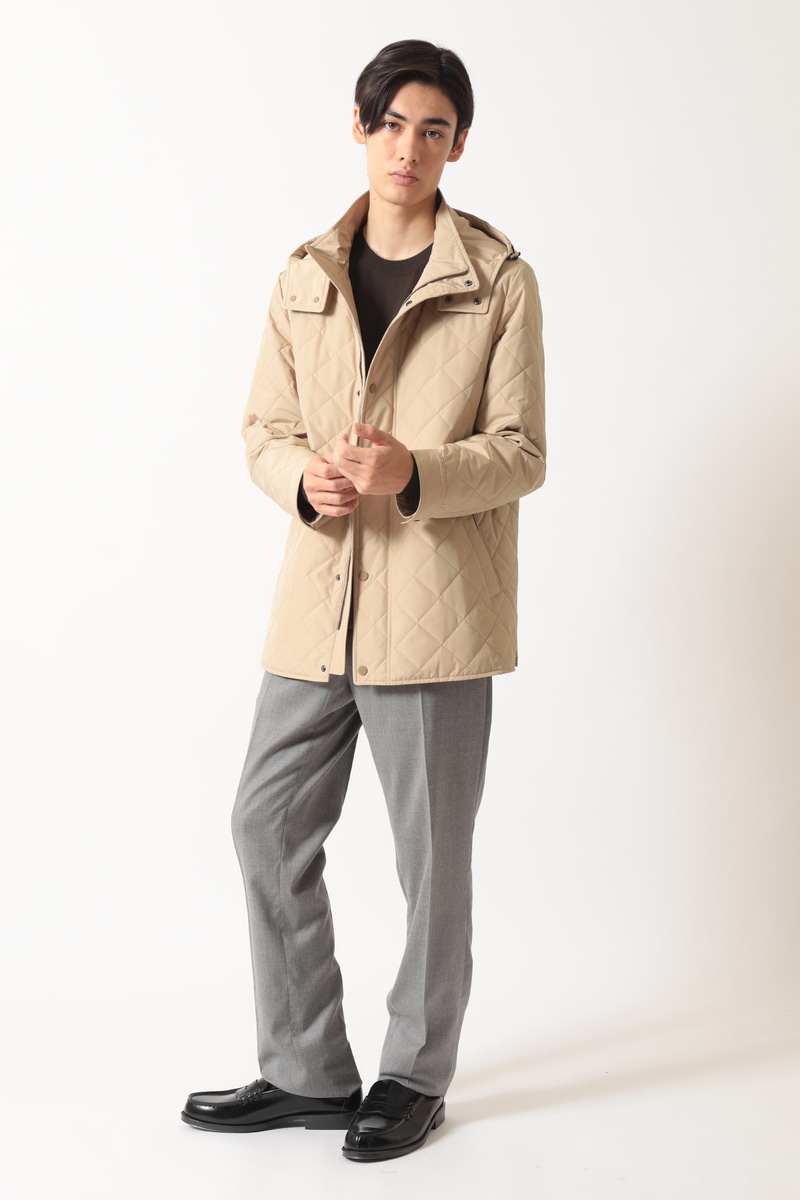 ミドル丈の定番キルティングブルゾンです。フードは取り外し可能なので、スタンドカラーのアウターとしても着用できます。キルティングに使用した中綿には、ドイツのフローデンベルグ社が開発した環境に配慮した資材を使用。DAKSの定番機能素材が、ナチュラルな風合いと高密度でクリアな表面感を実現し、外部からの水漏れを防ぎながら衣服内の湿気を透過させるため、快適な着心地が続きます。DAKSらしい上品なデザインと機能性を兼ね備えた一着です。
