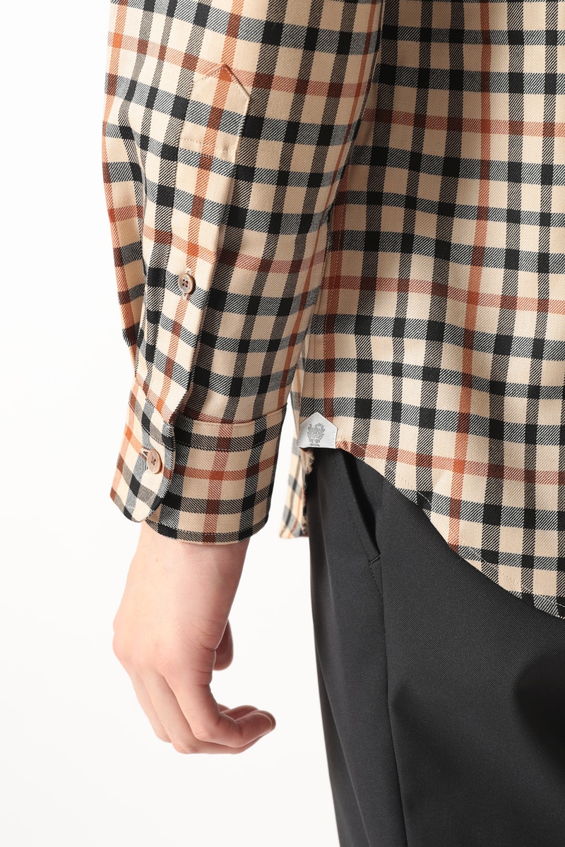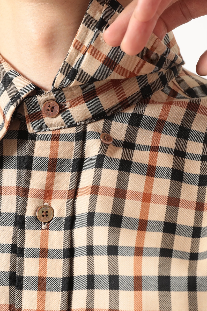 DAKSの定番スタイルに、隠しボタンダウンカラーを採用したシャツです。カジュアルさを抑えつつ、上品なきちんと感を演出します。2025年秋冬シーズンからは、BLACK WATCH CHECKとTONAL GRAY CHECKが新柄として加わり、より幅広いスタイリングをお楽しみいただけます。しなやかな落ち感とソフトな風合いが特徴の上質ウール素材で、快適な着心地とDAKSらしい洗練されたデザインを両立した一枚です。