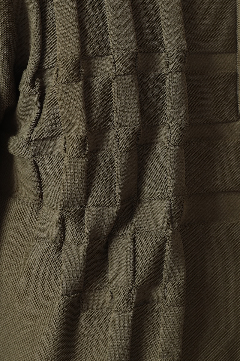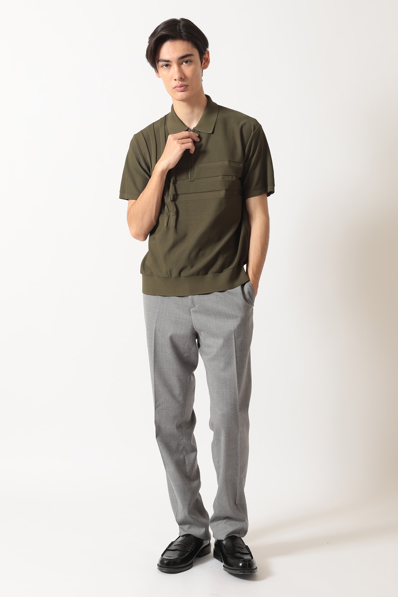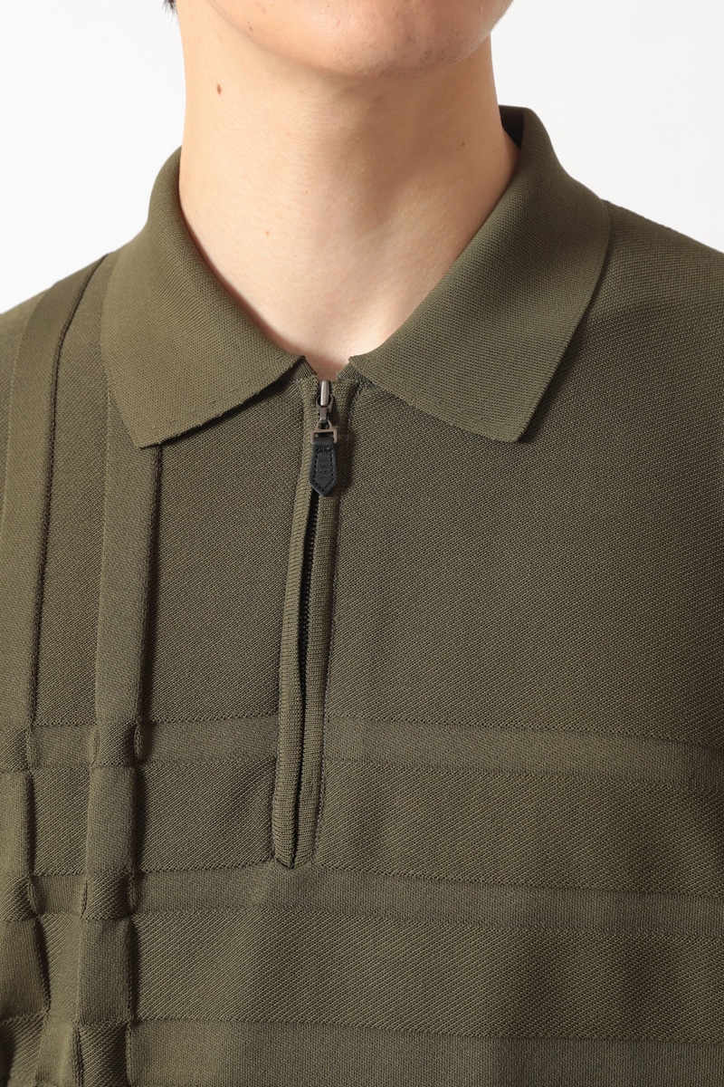 胸元には立体的な織り柄と水平のラインが施されており、シンプルながらも個性的なデザインです。ハーフジップ仕様で、着こなしの幅が広がります。上質な素材が、快適な着心地と上品な印象を両立。普段使いから、ゴルフなどのアクティブなシーンまで幅広く活躍する一枚です。