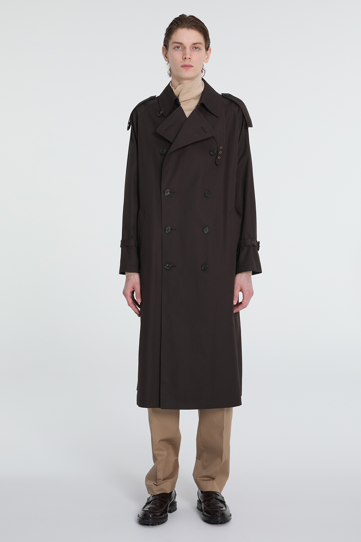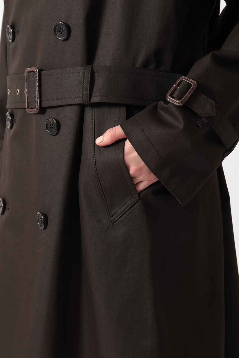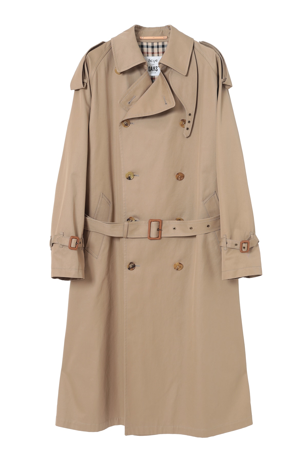 「ハウスチェック」を裏地にあしらった、伝統的なダブルブレストトレンチコートです。クラシックなディテールを継承しつつ、Scyeの革新的な設計により、リラックスフィットのオーバーシルエットに昇華させました。特に一面構成のラグランスリーブは、肩から流れる美しいドレープとストレスフリーな着心地を実現し、柔らかな印象を与えます。着脱可能なエポーレットとチンフラップを備え、機能性も確保。英国的な気品とモダンなシルエットが調和したこの一着は、幅広いシーンで活躍する万能なアウターです。