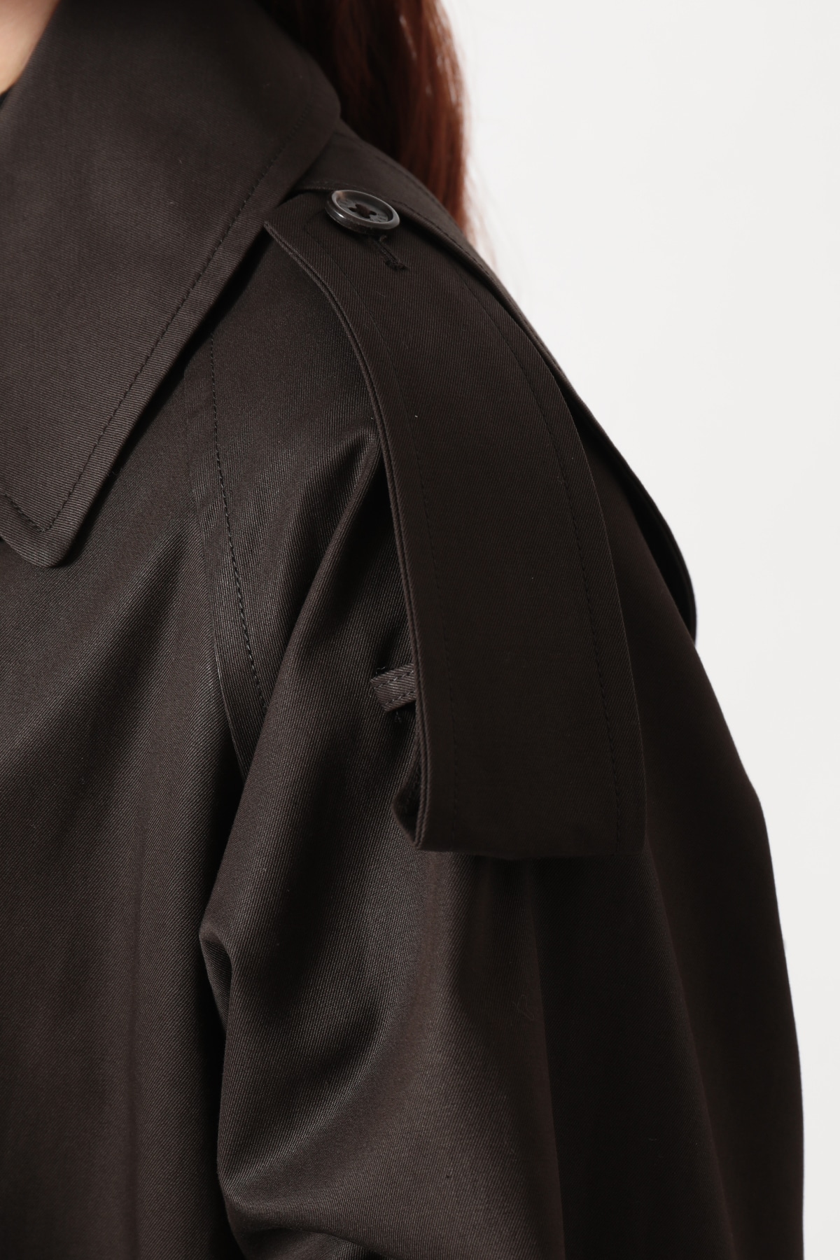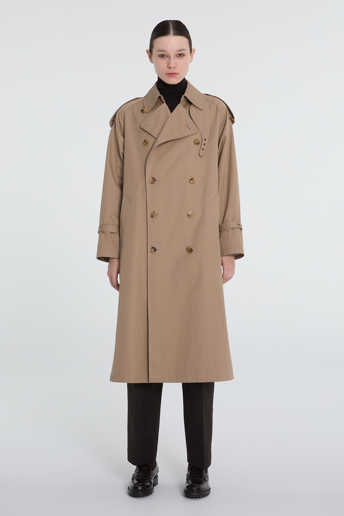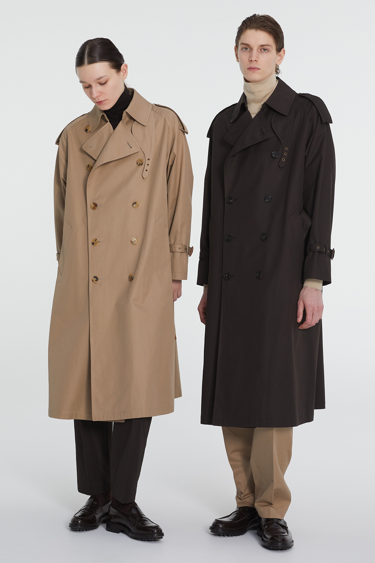 「ハウスチェック」を裏地にあしらった、伝統的なダブルブレストトレンチコートです。クラシックなディテールを継承しつつ、Scyeの革新的な設計により、リラックスフィットのオーバーシルエットに昇華させました。特に一面構成のラグランスリーブは、肩から流れる美しいドレープとストレスフリーな着心地を実現し、柔らかな印象を与えます。着脱可能なエポーレットとチンフラップを備え、機能性も確保。英国的な気品とモダンなシルエットが調和したこの一着は、幅広いシーンで活躍する万能なアウターです。