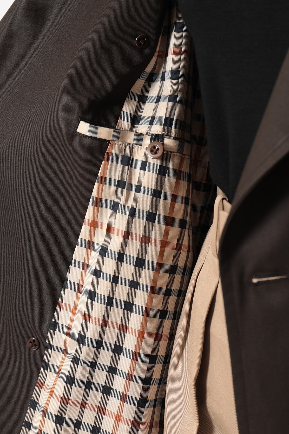 ハウスチェック裏地付きダブルブレストトレンチコート